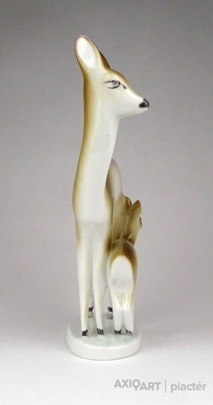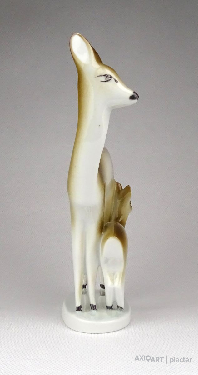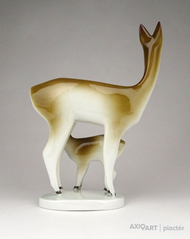 [1D754/VTR-5] Régi, hibátlan állapotú Zsolnay porcelán őz, őzike páros, szobor talapzaton. Anya és gidája. Alján zöld színű Zsolnay öttornyú márkajelzés: ZSOLNAY PÉCS MADE IN HUNGARY Talapzaton formatervező neve: SINKÓ Magasság: 18 cm Szélesség: 13 cm Súly: 0.25 kg