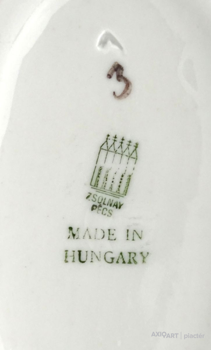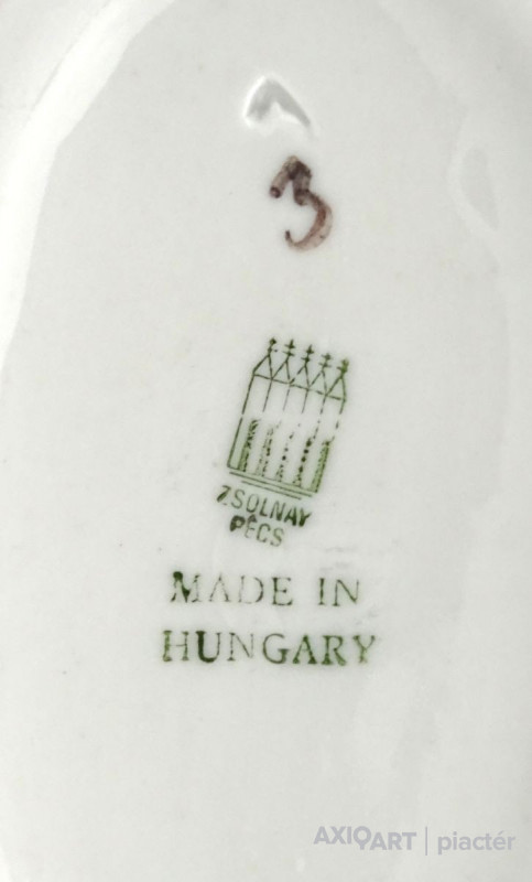 Alján zöld színű Zsolnay öttornyú márkajelzés: