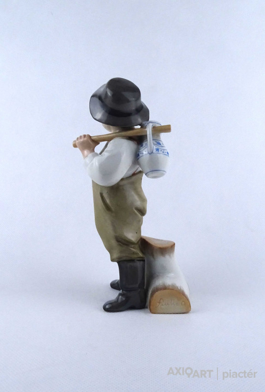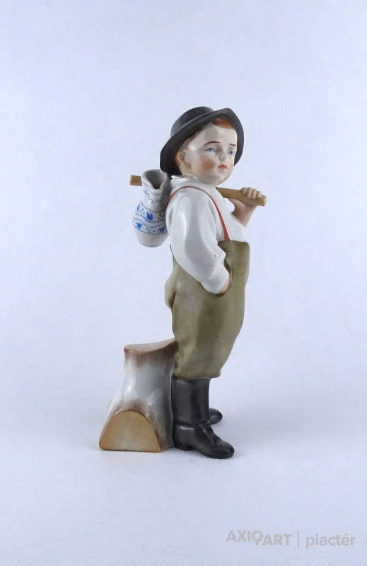 Régi Zsolnay - Sinkó porcelán vízhordó kisfiú figura 18 cm