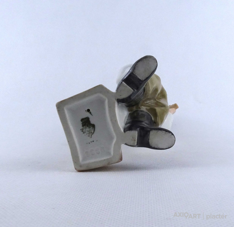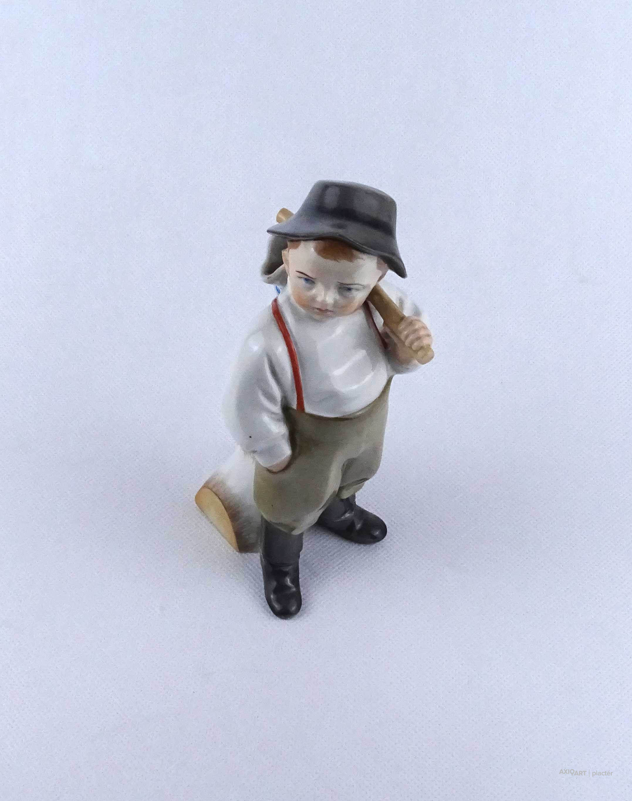 [1Z741/X199] Régi, hibátlan állapotú, jelzett Zsolnay porcelán kalapos kisfiú figura. Alján zöld Zsolnay pajzs alakú márkajelzés: ZSOLNAY PÉCS Oldalán formatervező neve: SINKÓ Magasság: 18.3 cm Szélesség: 8 cm Hosszúság: 9.5 cm Súly: 0.285 kg