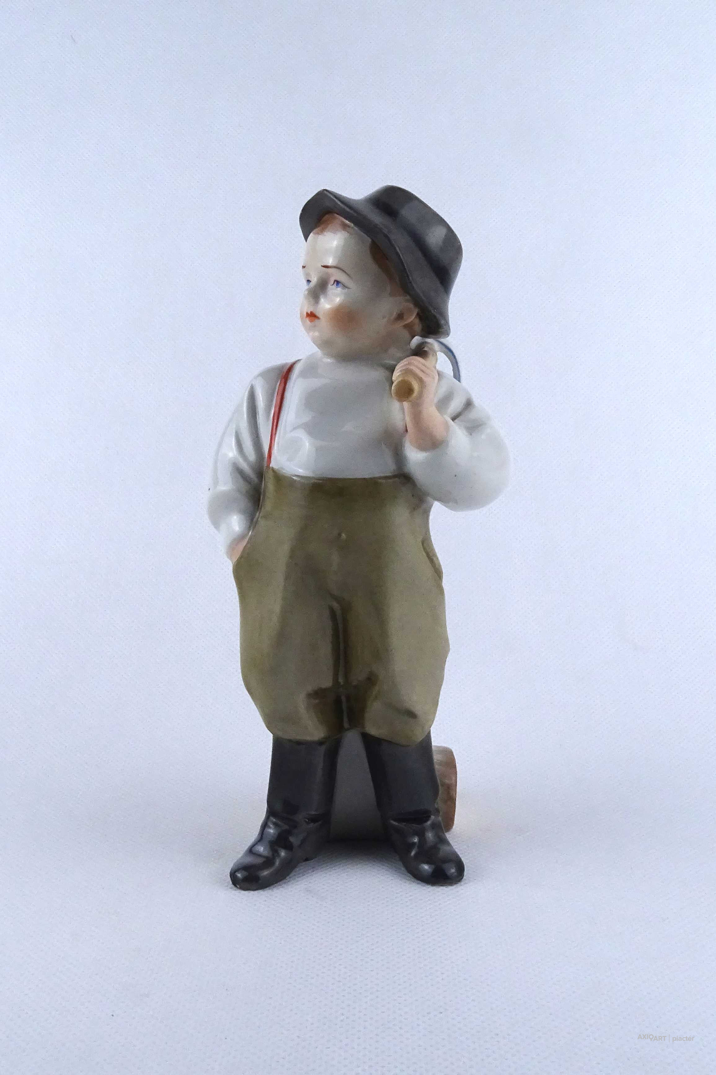 Régi, hibátlan állapotú, jelzett Zsolnay porcelán kalapos kisfiú figura.