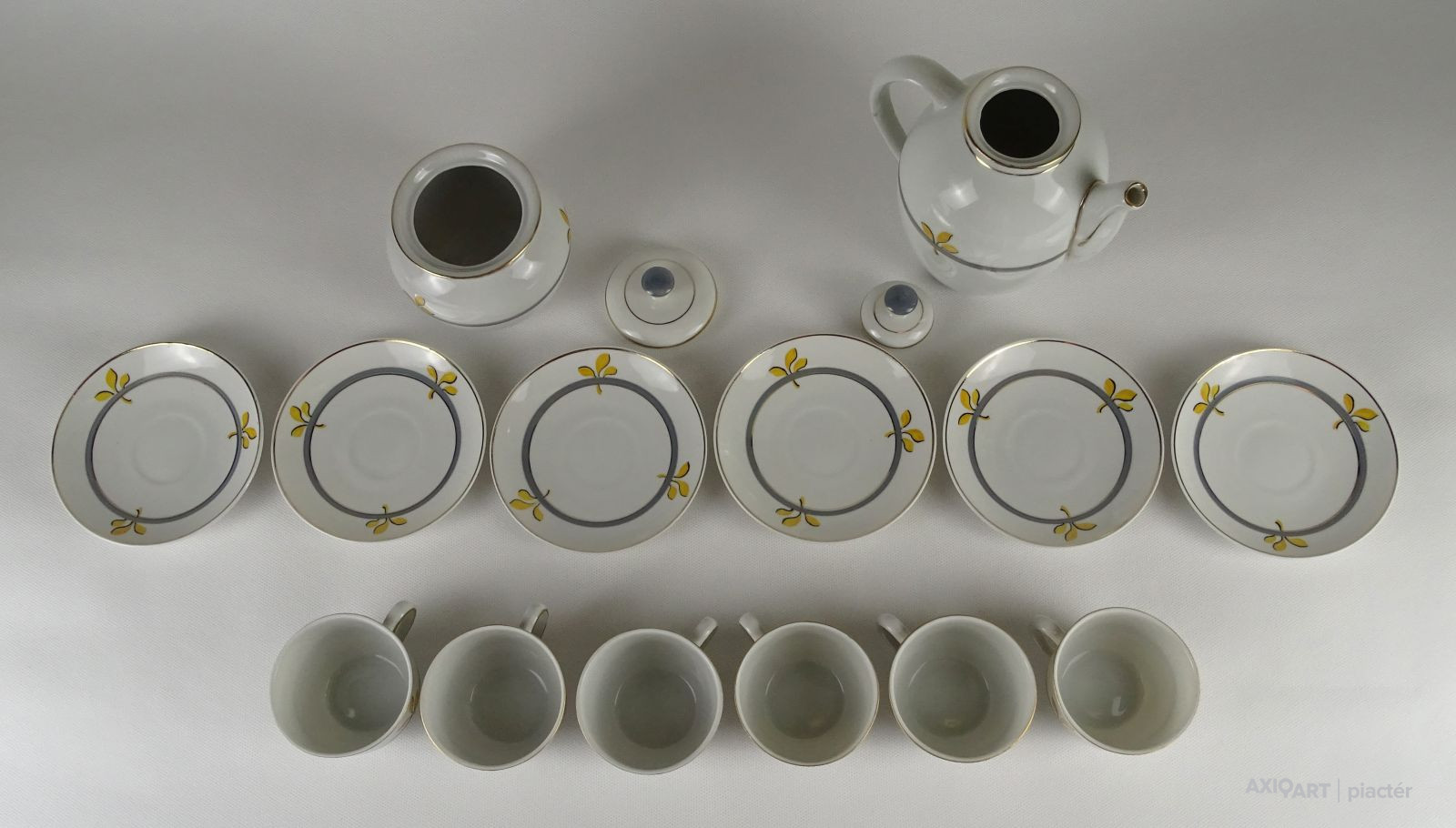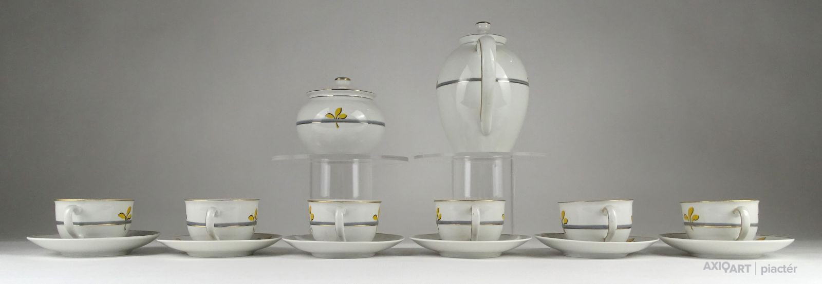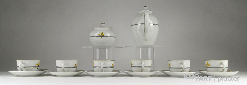Hibátlan állapotú, jelzett porcelán kávéskészlet, sárga virágokkal díszítve.