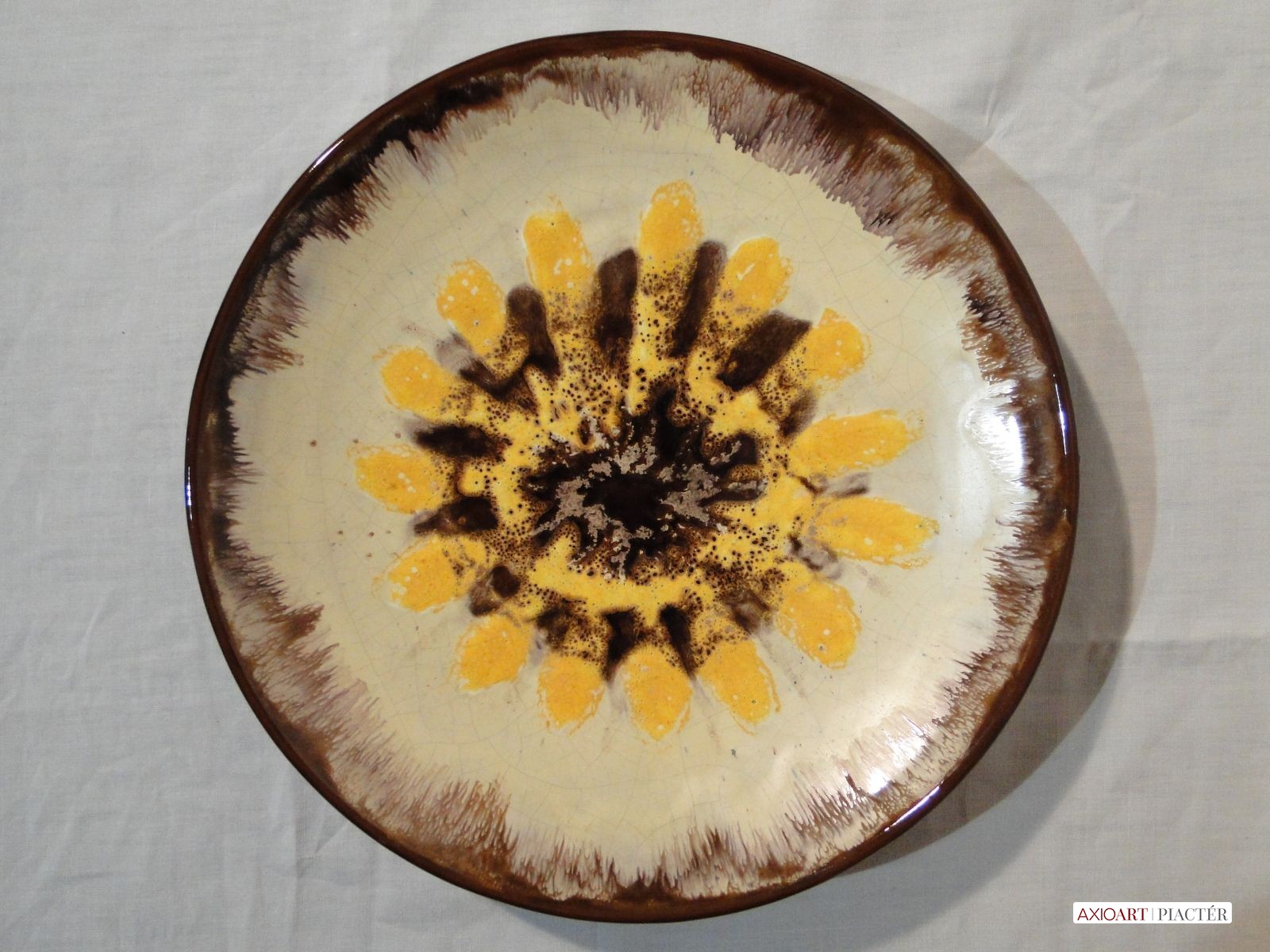 Régi retro hibátlan állapotú jelzett, csorgatott mázas nagyméretű kerámia fali dísztányér.