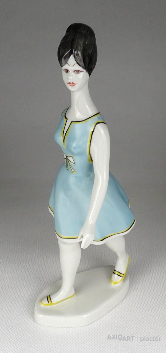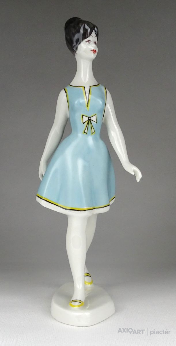 Hibátlan állapotú, jelzett nagy méretű Hollóházi porcelán figura talapzaton. Hölgy, retro ruhában.