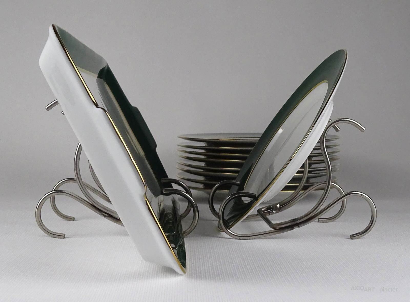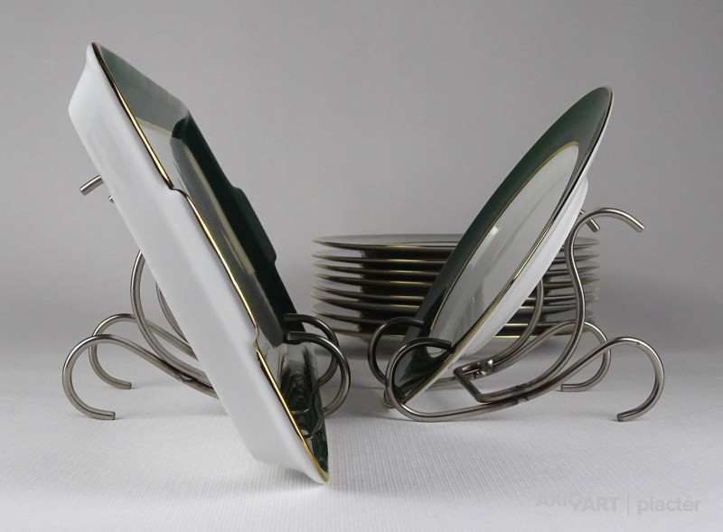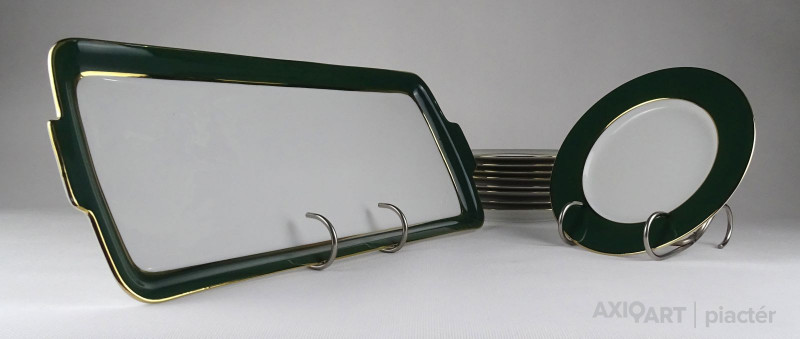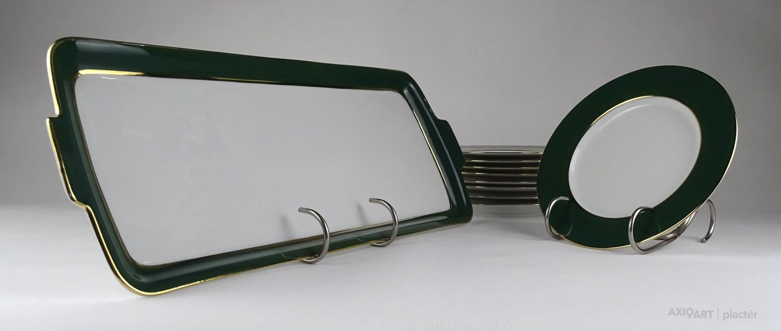 Ritka elegáns zöld szegélyes Zsolnay porcelán süteményes készlet