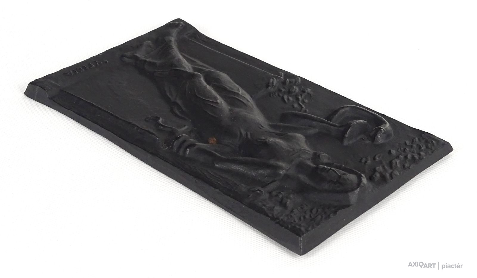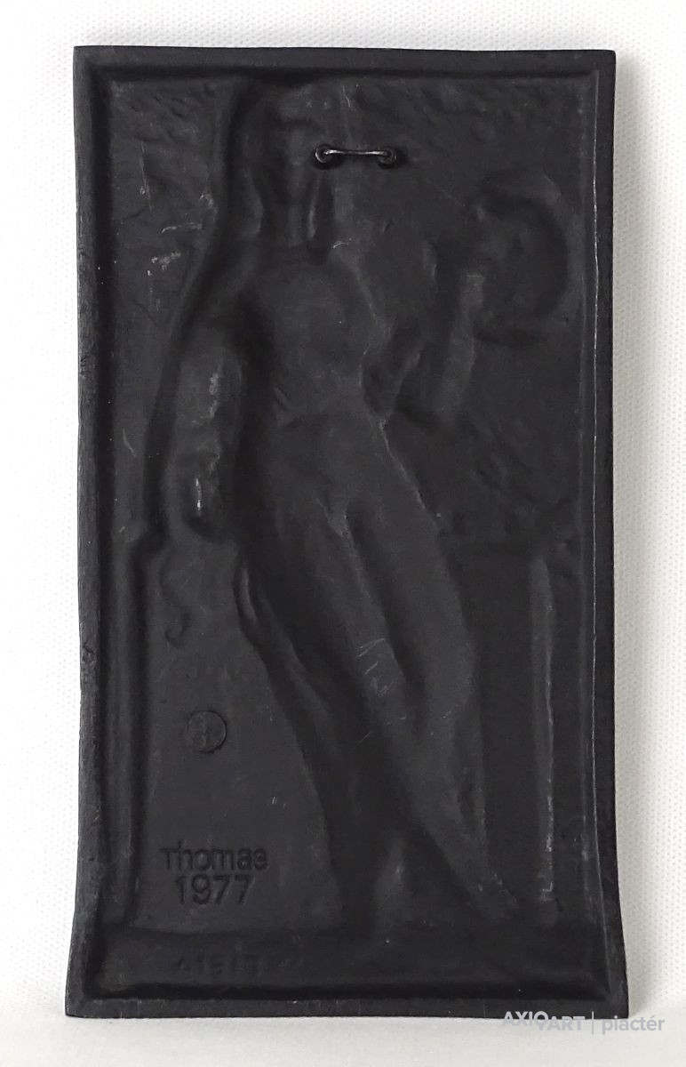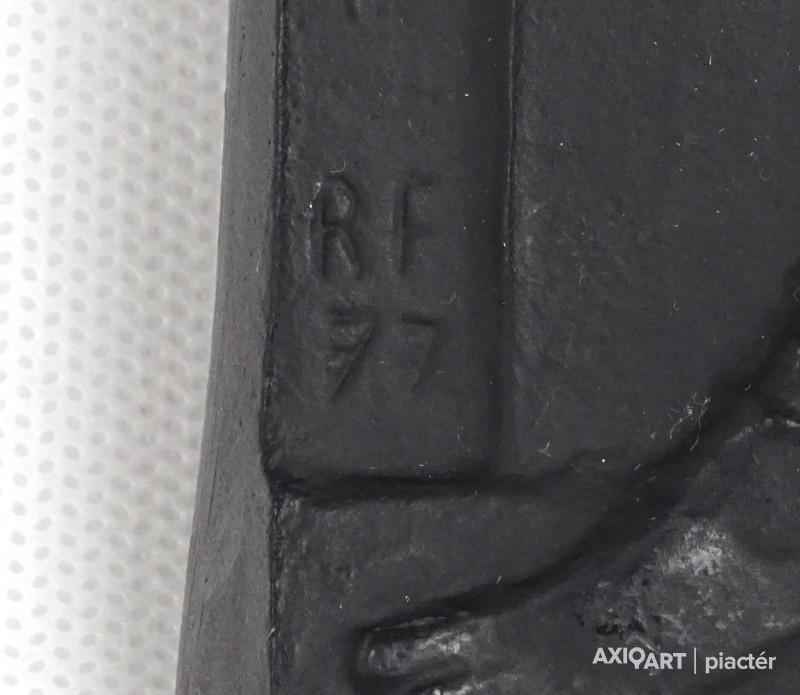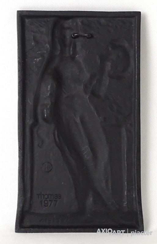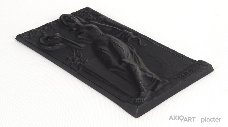[1P479/X154] Régi jelzett öntöttvas relief. Akasztási lehetőséggel rendelkezik. Balra lent datált jelzés: RF 77 Mű címe jobbra lent: HYGIEIA Hátoldalán jelzés, felirat: THOMAE 1977 (Buderus Thomae 1977) Formaszám: AI 31774 Magasság: 22 cm Szélesség: 12.5 cm Súly: 0.73 kg