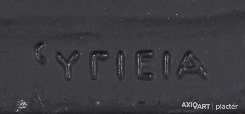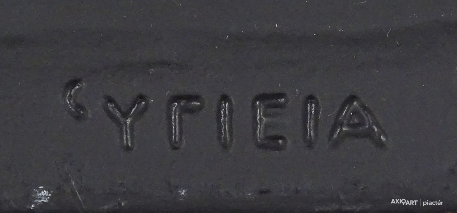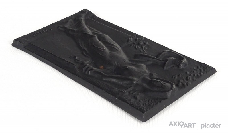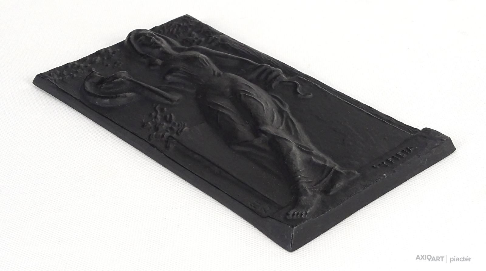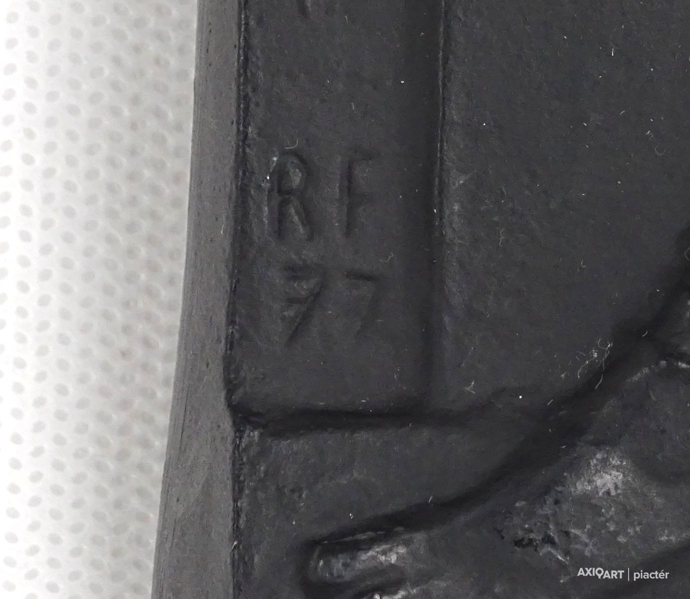 [1P479/X154] Régi jelzett öntöttvas relief. Akasztási lehetőséggel rendelkezik. Balra lent datált jelzés: RF 77 Mű címe jobbra lent: HYGIEIA Hátoldalán jelzés, felirat: THOMAE 1977 (Buderus Thomae 1977) Formaszám: AI 31774 Magasság: 22 cm Szélesség: 12.5 cm Súly: 0.73 kg