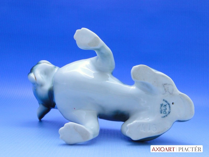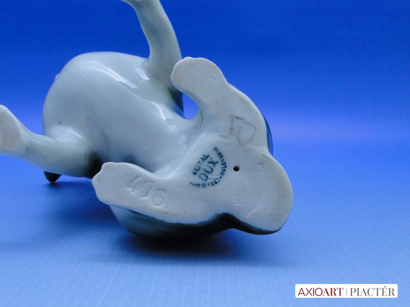 [0A605/UZ-K] Szép állapotú, alján jelzett zöld Royal Dux porcelán figura. Egyik fülénél restaurálás nyoma található. Magasság: 12 cm Szélesség: 13 cm Súly: 0.176 kg