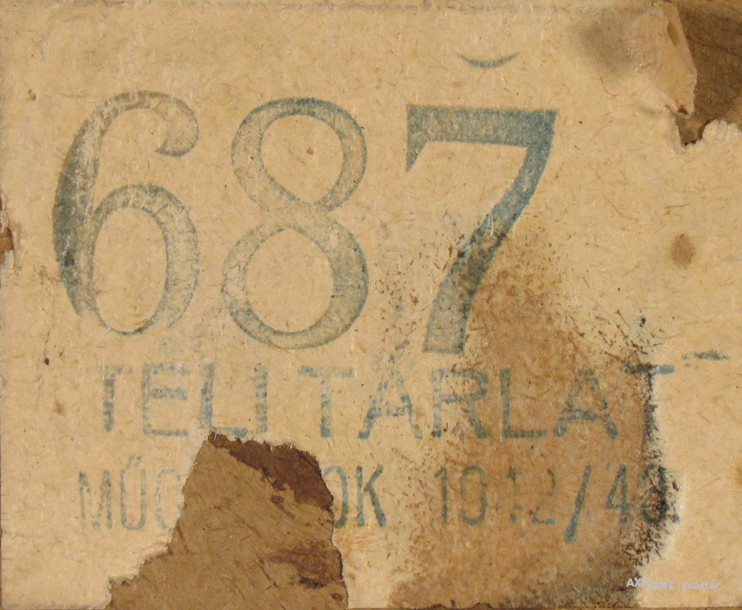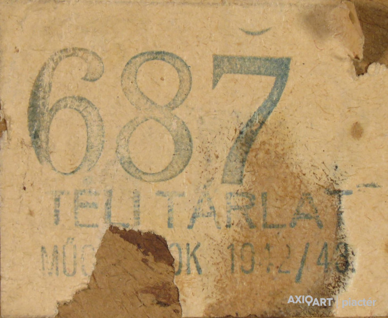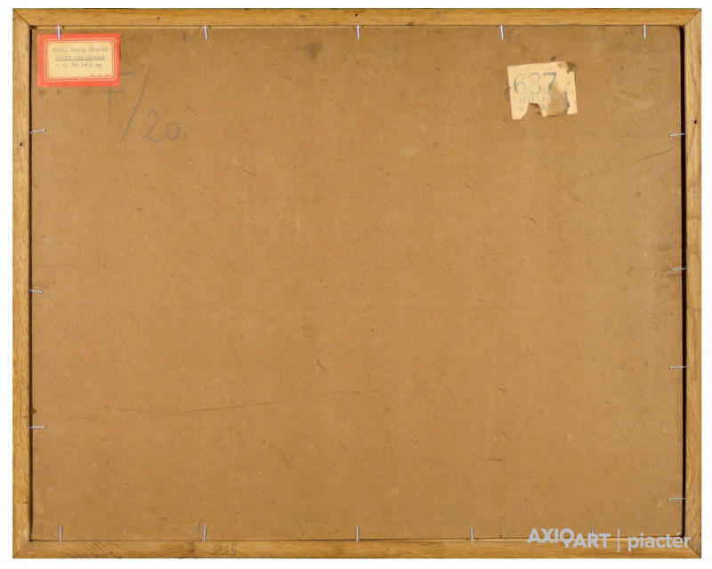 [FK0037/Z018] A kép mérete: 50 x 70 cm keret nélkül. Készült: Olaj, Vászon A kép Paizs László (Szentpéterúr, 1935) alkotása. Jelezve Jobbra lent "P. L." A festmény jó állapotban van. Keret: Ép A festmény hátoldalán a Képcsarnokvállalat címkéje található. Magyar festők és grafikusok életrajzi lexikona I-II. Festő. Tanulmányait a budapesti Iparművészeti Főiskolán végezte 1959-ben. Z. Gács György, Rákosy Zoltán és Szentiványi Lajos növendéke volt. A '60-as évek első felében hagyományosabb felfogású olajképeket festett, mozaikokat, freskókat, utóbb a pop-art körébe tartozó, a francia Arman munkáival rokon műveket alkotott. 1961 óta kiállító művész. Egyéni (Fényes Adolf Terem, Csók Galéria, Műcsarnok, Magyar Nemzeti Galéria, Halászbástya, Bástya Galéria, Vigadó Galéria, Budapest Galéria, Győr, Szombathely, Szeged, Zalaegerszeg, Duisburg, Aix-en-Provence, stb). és vegyes (Ernst Múzeum, Műcsarnok, Óbuda Galéria, Magyar Nemzeti Galéria, Csók Galéria, Vigadó Galéria, Székesfehérvár, Kaposvár, Pécs, Hódmezővásárhely, Firenze, Milano, Padova, Nápoly, Velence, Düsseldorf, Aachen, Genf, stb) tárlatokon vett részt. 1980-ban Munkácsy-díjjal jutalmazták, 1988-ban Érdemes Művész kitüntető elismerésben részesült. Munkáit őrzi a Magyar Nemzeti Galéria, a Fővárosi Képtár, a szombathelyi képtár, a pécsi Janus P. Múzeum, a székesfehérvári István Király Múzeum és a dunaszerdahelyi Kortárs Magyar Galéria. (H.B.: Műv, 1972/4, K.Gy.: Műv. 1977/2, K.G.: Műv. 1978/10, M.L.: Műv, 1983/5, R.G.: Műv, 1987/9, Sz.Gy.: Új Műv. 1995/4, MK) Magyar festők és grafikusok életrajzi lexikona I-II. Műgyűjtők és kereskedők kézikönyve Festő. Tanulmányait a bp.-i Iparművészeti Főiskolán végezte. Mozaikokat ferskókat, utóbb a pop-art körébe tartozó, a francia Arman műveivel rokon műveket alkotott. Mozaikok: a Szegedi Megyei Tanács, a Pécsi Óvoda, a Gödöllői Agrártudományi Egyetem. Freskók: Budapest - Csatárka úti Gyermekotthon. 1971-ben a Fényes Adolf Teremben volt kiállítása, 1983-ban pedig a szegedi Móra Ferenc Múzeumban nagyszabású tárlatokon mutatta be munkáit. 1988-ban érdemes művész kitüntető elismerésben részesült. (MK) Magyar festők és grafikusok adattára Az Iparművészeti Főiskolán végzett 1959-ben. Mozaikokat (Szeged, Megyei Tanács; Pécs, Óvoda; Gödöllő, Agrártudományi Egyetem), freskókat (Budapest, Csatárka úti Gyermekotthon), újabban a pop art körébe tartozó, a francia Arman műveivel rokon műveket alkotott. 1971-ben a Fényes Adolf Teremben nyílt kiállítása. 1983 februárjában a szegedi Móra Ferenc Múzeumban megrendezett nagyszabású tárlaton mutatta be alkotásait. 1988-ban érdemes művész kitüntető elismerésben részesült. - MK Művészeti lexikon I-IV. (Szentpéterur, 1935. dec. 26.- ): festő. Az Iparművészeti Főiskolán 1959-ben végzett Rákosy Zoltán, Z. Gách György és Szentiványi Lajos növendékeként. Épületdiszítő mozaikokat, (Szeged, Megyei Tanács, 1961; Pécs, Óvoda, 1964), műanyagfreskókat (Bp., Csatárka úti Gyermekotthon, 1964) és gobelinterveket készít. Kortárs magyar művészeti lexikon I-III. Festő, szobrász, grafikus. 1959: MIF, mesterei: Z. Gács György, Rákosy Zoltán, Szentiványi Lajos. 1980: Munkácsy-díj; 1988: érdemes művész. Főiskolás éveinek második felében, majd azt követően számos murális munka kivitelezésében vett részt, Fónyi Géza, Konecsni György, Z. Gács György, Rákosi Zoltán és Domanovszky Endre mellett dolgozva. A 60-as évek első felének hagyományosabb fölfogású olajképeket festett. 1964-ben a Velencei B.-n megismerkedett az amerikai pavilonban a pop art Európában akkor még újnak számító törekvésével, és részben ez inspirálta, hogy 1967-ben textil, fém, bőr anyagú "varrottas" képeket küldjön az FKS éves tárlatára; a megnyitó előtt többek között az ő munkáit is eltávolították a falról. A 70-es években pop art-os objekteket (A trónörököspár politikai gyilkosság áldozata lett, 1970, plexiüveg, újság, szarvasbogarak), majd konstruktív, átlátszó plexiüveg plasztikákat készített belső fénytörő határfelületekkel. A 80-as években készültek az anyagában színezett, konstruktív, nagyméretű poliészter szobrai, majd színes poliészter táblaképeket alkotott, mesterségesen roncsolt felületekkel, mintha régészeti leletek vagy atomtámadás utáni festmény-szurrogátumok lennének. Ekkor kezdett organikus plaszikájú bronzszobrokat is mintázni. A 90-es években, a táblaképek és szobrok mellett nagyméretű, egyedi grafikákat készített, formavilágában némileg a roncsolt táblaképekből kiindulva, de szinte kizárólag az emberi alakból elvonatkoztatott torzókat megjelenítve. Ek: 1966: Művészklub, Győr; 1971: Fényes A. T.; 1972: Bercsényi 28-30 G.; 1973: BME B-épület; 1976: Csók G.; 1977: G. Hildebrandt, Duisburg (NSZK); 1979: Bástya G., Halászbástya; Helyőrségi Műv. H., Nagyatád; József A. Műv. Közp., Szeged; Göcsej M., Zalaegerszeg; 1982: Bezzegh G., Küsnacht (CH); 1983: Móra F. M., Szeged; 1987: Műcsarnok (kat.); MNG; 1988: Pandora G., Badacsonytomaj; 1989: Parktheatter, Iserlohn (NSZK); Qualitas G.; Hevesi S. Színház, Zalaegerszeg; 1990: Vasarely Fondation (Ferdinánd Judittal, Fóth Ernővel), Aix-en-Provence (FR); 1994: Vigadó G.; 1997: Pest Center G.; 1998: Budapest G. (kat.); 1999: Pest Center G. (kat); G. Arcis, Sárvár; MMA, Bp.; 2001: SZK, Szhely; Ernst M. (kat.) Vcsk: 1961, 1964, 1966: FKS, Ernst M.; 1962: 9. Magyar Képzőműv. kiállítás, Műcsarnok; 1967: Mai magyar festészet, Új-Delhi; 1969: Vas megyei művészek, Savaria M., Szhely; V. Orsz. Grafikai B., Miskolc; 1971: Új művek, Műcsarnok; 1972: Fiatal művészek Budapestről. Likovni Salon, Újvidék (YU); 1972, 1973: Balatonboglár