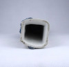 térelválasztó rács és nagyméretű virágtartók (samott-porcelán keverék, mázatlan, 1986, Budapest, Államigazgatási Számítógépes Központ aulájában)