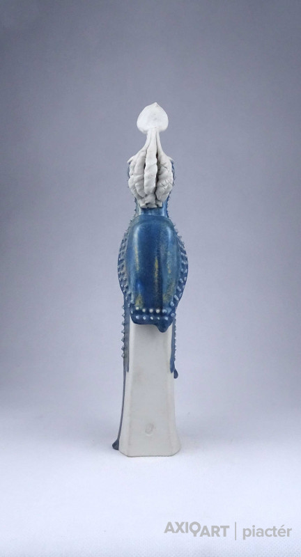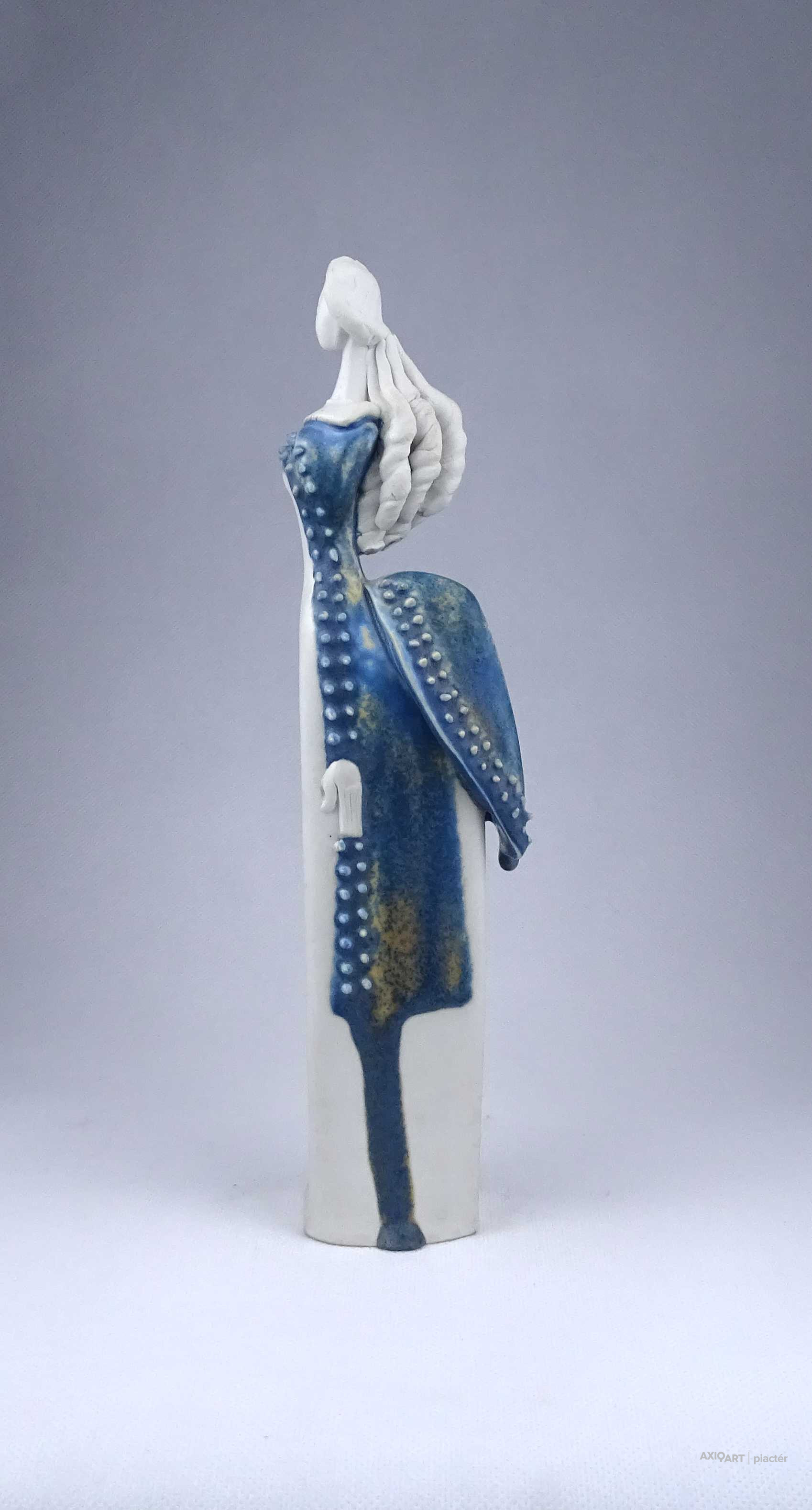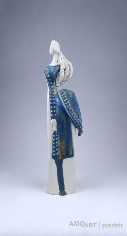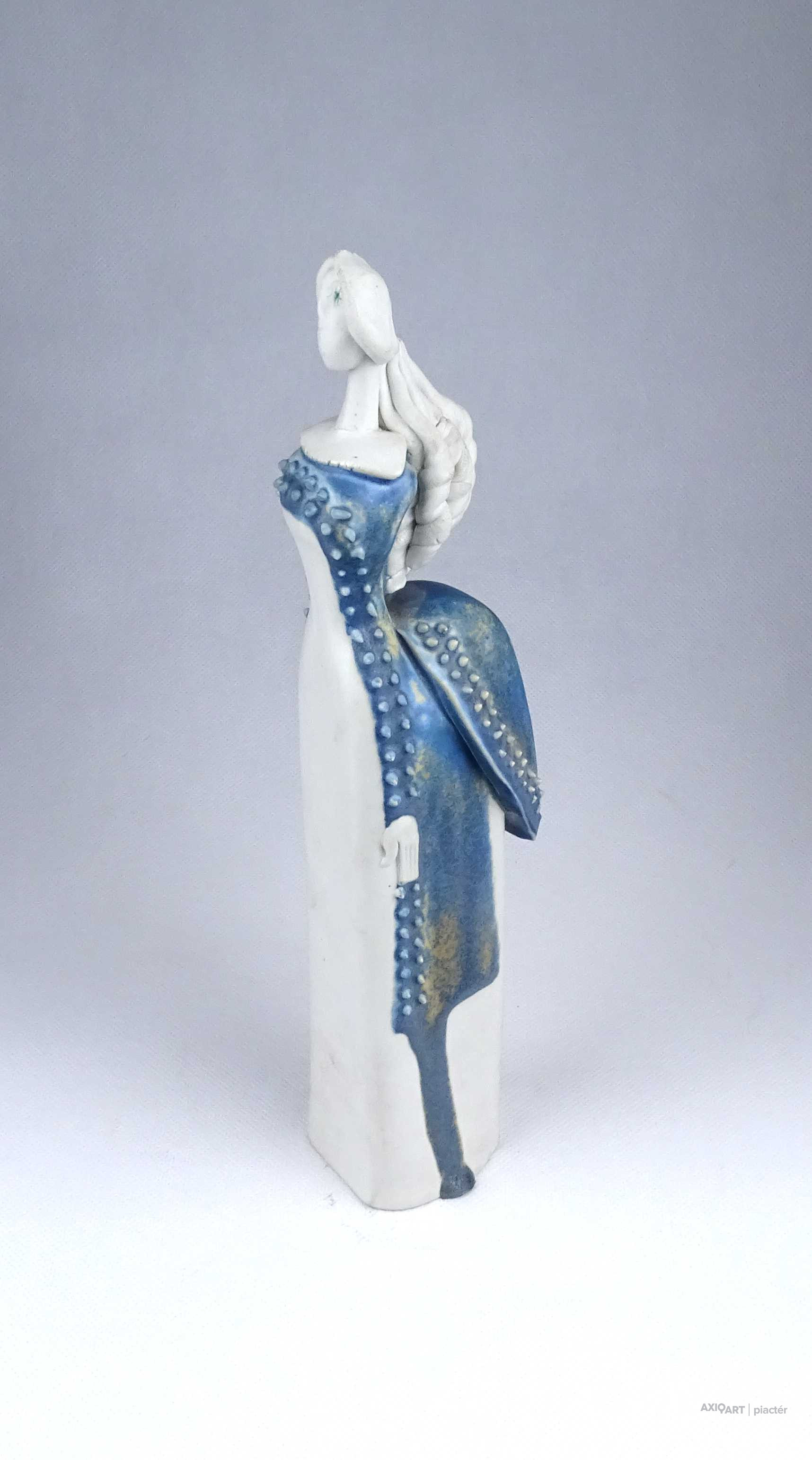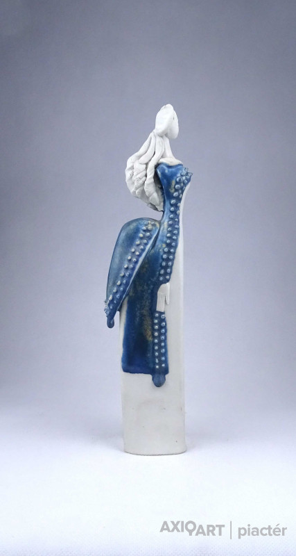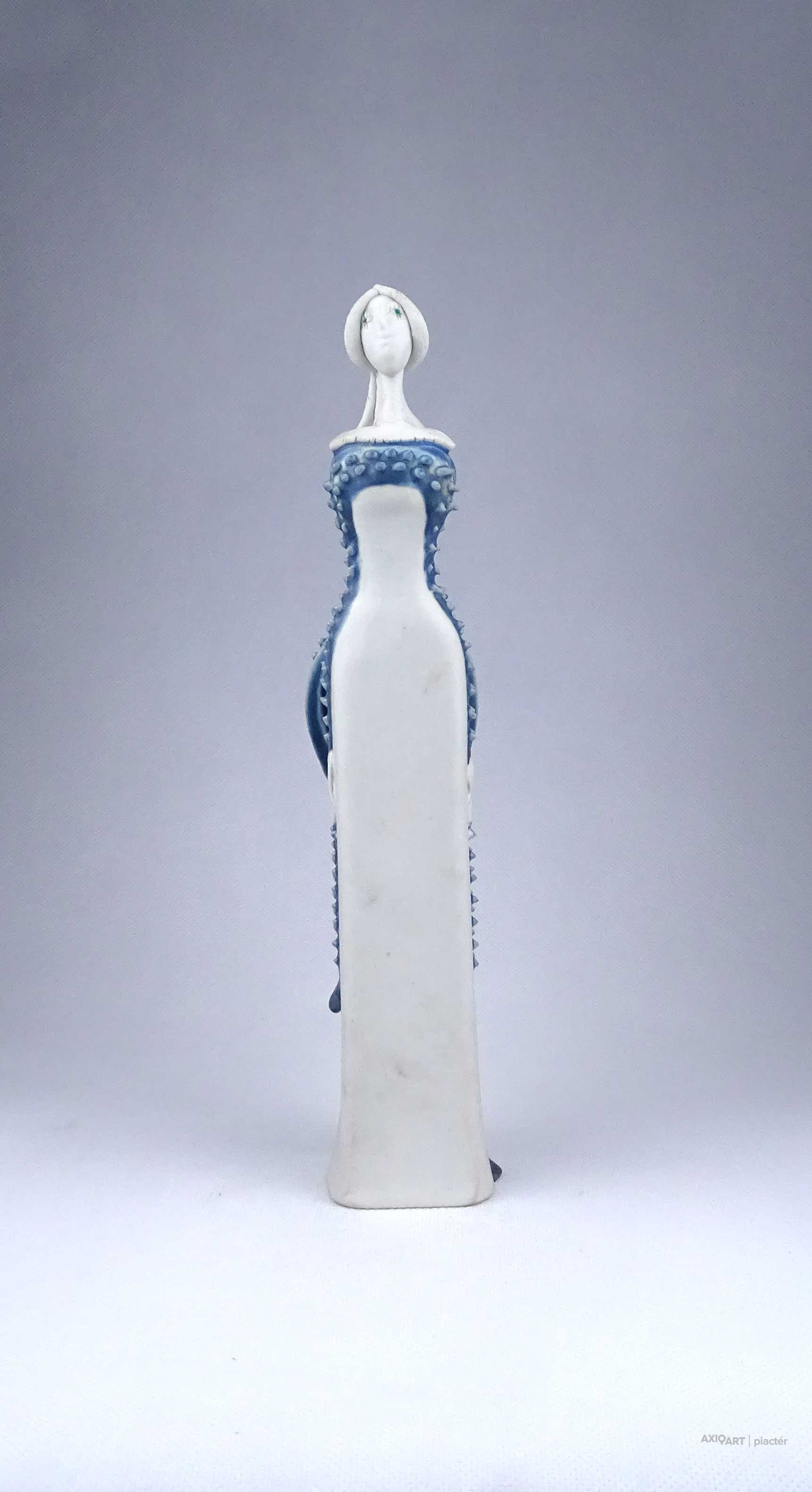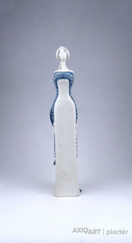 Sarkantyu Judit : Kék ruhás hölgy porcelán szobor 28.6 cm