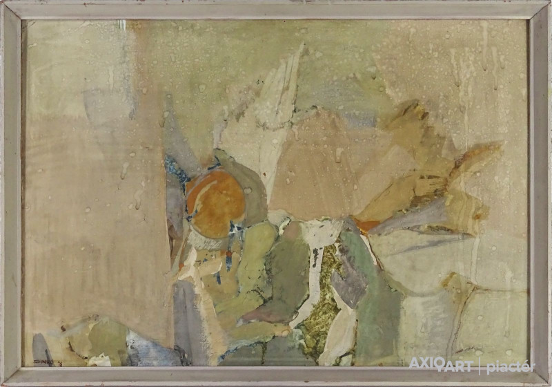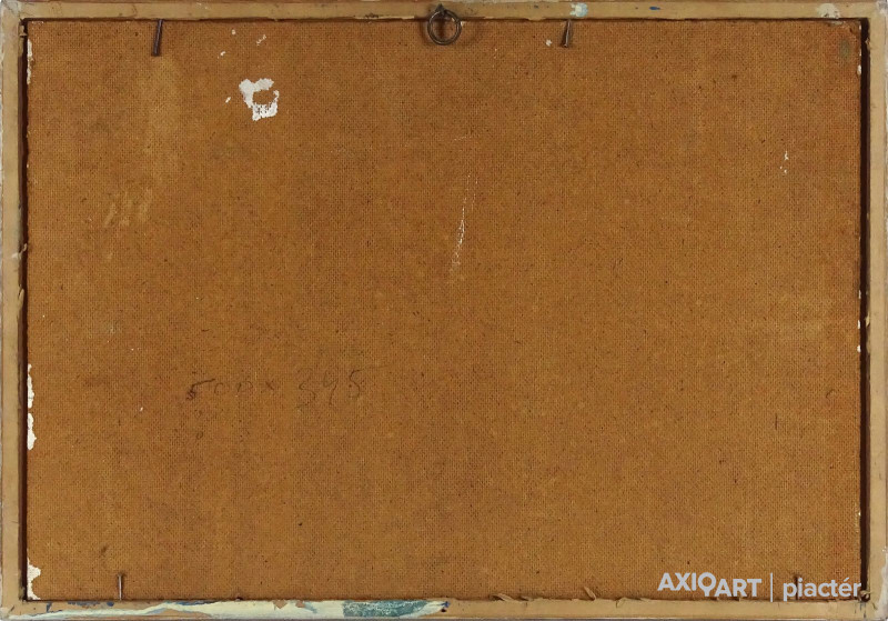 [FK0037/Z018] A kép mérete: 50 x 70 cm keret nélkül. Készült: Olaj, Vászon A kép Paizs László (Szentpéterúr, 1935) alkotása. Jelezve Jobbra lent "P. L." A festmény jó állapotban van. Keret: Ép A festmény hátoldalán a Képcsarnokvállalat címkéje található. Magyar festők és grafikusok életrajzi lexikona I-II. Festő. Tanulmányait a budapesti Iparművészeti Főiskolán végezte 1959-ben. Z. Gács György, Rákosy Zoltán és Szentiványi Lajos növendéke volt. A '60-as évek első felében hagyományosabb felfogású olajképeket festett, mozaikokat, freskókat, utóbb a pop-art körébe tartozó, a francia Arman munkáival rokon műveket alkotott. 1961 óta kiállító művész. Egyéni (Fényes Adolf Terem, Csók Galéria, Műcsarnok, Magyar Nemzeti Galéria, Halászbástya, Bástya Galéria, Vigadó Galéria, Budapest Galéria, Győr, Szombathely, Szeged, Zalaegerszeg, Duisburg, Aix-en-Provence, stb). és vegyes (Ernst Múzeum, Műcsarnok, Óbuda Galéria, Magyar Nemzeti Galéria, Csók Galéria, Vigadó Galéria, Székesfehérvár, Kaposvár, Pécs, Hódmezővásárhely, Firenze, Milano, Padova, Nápoly, Velence, Düsseldorf, Aachen, Genf, stb) tárlatokon vett részt. 1980-ban Munkácsy-díjjal jutalmazták, 1988-ban Érdemes Művész kitüntető elismerésben részesült. Munkáit őrzi a Magyar Nemzeti Galéria, a Fővárosi Képtár, a szombathelyi képtár, a pécsi Janus P. Múzeum, a székesfehérvári István Király Múzeum és a dunaszerdahelyi Kortárs Magyar Galéria. (H.B.: Műv, 1972/4, K.Gy.: Műv. 1977/2, K.G.: Műv. 1978/10, M.L.: Műv, 1983/5, R.G.: Műv, 1987/9, Sz.Gy.: Új Műv. 1995/4, MK) Magyar festők és grafikusok életrajzi lexikona I-II. Műgyűjtők és kereskedők kézikönyve Festő. Tanulmányait a bp.-i Iparművészeti Főiskolán végezte. Mozaikokat ferskókat, utóbb a pop-art körébe tartozó, a francia Arman műveivel rokon műveket alkotott. Mozaikok: a Szegedi Megyei Tanács, a Pécsi Óvoda, a Gödöllői Agrártudományi Egyetem. Freskók: Budapest - Csatárka úti Gyermekotthon. 1971-ben a Fényes Adolf Teremben volt kiállítása, 1983-ban pedig a szegedi Móra Ferenc Múzeumban nagyszabású tárlatokon mutatta be munkáit. 1988-ban érdemes művész kitüntető elismerésben részesült. (MK) Magyar festők és grafikusok adattára Az Iparművészeti Főiskolán végzett 1959-ben. Mozaikokat (Szeged, Megyei Tanács; Pécs, Óvoda; Gödöllő, Agrártudományi Egyetem), freskókat (Budapest, Csatárka úti Gyermekotthon), újabban a pop art körébe tartozó, a francia Arman műveivel rokon műveket alkotott. 1971-ben a Fényes Adolf Teremben nyílt kiállítása. 1983 februárjában a szegedi Móra Ferenc Múzeumban megrendezett nagyszabású tárlaton mutatta be alkotásait. 1988-ban érdemes művész kitüntető elismerésben részesült. - MK Művészeti lexikon I-IV. (Szentpéterur, 1935. dec. 26.- ): festő. Az Iparművészeti Főiskolán 1959-ben végzett Rákosy Zoltán, Z. Gách György és Szentiványi Lajos növendékeként. Épületdiszítő mozaikokat, (Szeged, Megyei Tanács, 1961; Pécs, Óvoda, 1964), műanyagfreskókat (Bp., Csatárka úti Gyermekotthon, 1964) és gobelinterveket készít. Kortárs magyar művészeti lexikon I-III. Festő, szobrász, grafikus. 1959: MIF, mesterei: Z. Gács György, Rákosy Zoltán, Szentiványi Lajos. 1980: Munkácsy-díj; 1988: érdemes művész. Főiskolás éveinek második felében, majd azt követően számos murális munka kivitelezésében vett részt, Fónyi Géza, Konecsni György, Z. Gács György, Rákosi Zoltán és Domanovszky Endre mellett dolgozva. A 60-as évek első felének hagyományosabb fölfogású olajképeket festett. 1964-ben a Velencei B.-n megismerkedett az amerikai pavilonban a pop art Európában akkor még újnak számító törekvésével, és részben ez inspirálta, hogy 1967-ben textil, fém, bőr anyagú "varrottas" képeket küldjön az FKS éves tárlatára; a megnyitó előtt többek között az ő munkáit is eltávolították a falról. A 70-es években pop art-os objekteket (A trónörököspár politikai gyilkosság áldozata lett, 1970, plexiüveg, újság, szarvasbogarak), majd konstruktív, átlátszó plexiüveg plasztikákat készített belső fénytörő határfelületekkel. A 80-as években készültek az anyagában színezett, konstruktív, nagyméretű poliészter szobrai, majd színes poliészter táblaképeket alkotott, mesterségesen roncsolt felületekkel, mintha régészeti leletek vagy atomtámadás utáni festmény-szurrogátumok lennének. Ekkor kezdett organikus plaszikájú bronzszobrokat is mintázni. A 90-es években, a táblaképek és szobrok mellett nagyméretű, egyedi grafikákat készített, formavilágában némileg a roncsolt táblaképekből kiindulva, de szinte kizárólag az emberi alakból elvonatkoztatott torzókat megjelenítve. Ek: 1966: Művészklub, Győr; 1971: Fényes A. T.; 1972: Bercsényi 28-30 G.; 1973: BME B-épület; 1976: Csók G.; 1977: G. Hildebrandt, Duisburg (NSZK); 1979: Bástya G., Halászbástya; Helyőrségi Műv. H., Nagyatád; József A. Műv. Közp., Szeged; Göcsej M., Zalaegerszeg; 1982: Bezzegh G., Küsnacht (CH); 1983: Móra F. M., Szeged; 1987: Műcsarnok (kat.); MNG; 1988: Pandora G., Badacsonytomaj; 1989: Parktheatter, Iserlohn (NSZK); Qualitas G.; Hevesi S. Színház, Zalaegerszeg; 1990: Vasarely Fondation (Ferdinánd Judittal, Fóth Ernővel), Aix-en-Provence (FR); 1994: Vigadó G.; 1997: Pest Center G.; 1998: Budapest G. (kat.); 1999: Pest Center G. (kat); G. Arcis, Sárvár; MMA, Bp.; 2001: SZK, Szhely; Ernst M. (kat.) Vcsk: 1961, 1964, 1966: FKS, Ernst M.; 1962: 9. Magyar Képzőműv. kiállítás, Műcsarnok; 1967: Mai magyar festészet, Új-Delhi; 1969: Vas megyei művészek, Savaria M., Szhely; V. Orsz. Grafikai B., Miskolc; 1971: Új művek, Műcsarnok; 1972: Fiatal művészek Budapestről. Likovni Salon, Újvidék (YU); 1972, 1973: Balatonboglár