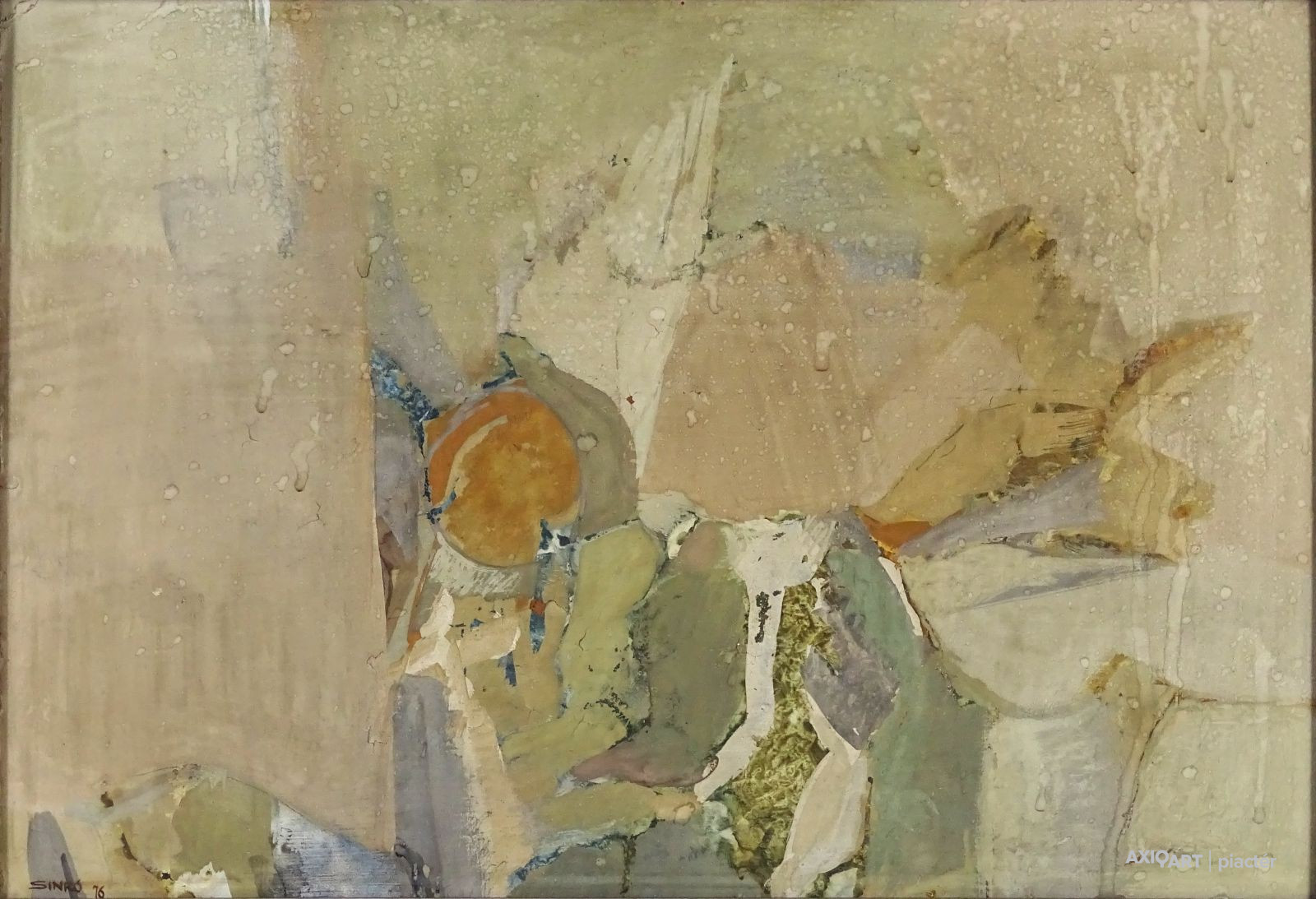 [1I372/027] Olaj farost vegyes technika, régi keretben, falra akasztási lehetőséggel. A kép felületén felpörgések találhatók, lásd fotó. Jelezve balra lent: SINKÓ 76 Magasság: 37 cm Szélesség: 53 cm Súly: 0.785 kg