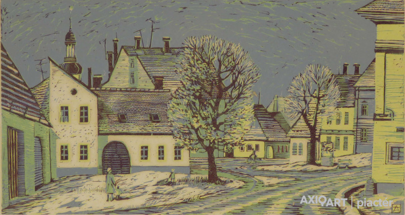 [FKC975/Bp302/114] A kép mérete: 24 x 43 cm keret nélkül. Készült: Színes linómetszet, Papír A kép Csavlek András (Budapest, 1942) alkotása. Jelezve lent "Sopron télen Csavlek 973 (ceruzával)" A festmény jó állapotban van. Keret: Ép Magyar festők és grafikusok életrajzi lexikona I-II. Festő. 1968-ban a budapesti Képzőművészeti Főiskolán végezte tanulmányait. Mestere Kádár György volt. A Stúdió tagjaként jelentkezett fővárosi és vidéki bemutatókon, a Szegedi Nyári Tárlatokon, a Balatoni Nyári Tárlatokon, a Dunántúli Tárlatokon és a DunapArt Művészeti Társaság kiállításain. A Stúdió pályázatainak és kiállításainak többszörös díjnyertese. 1976-ban az egri Akvarell Biennálén díjazták munkáit. 1978-ban Munkácsy-díjat kapott. Cs. lírai hangvételű alkotásain sajátos, vizionárius szemlélettel idézi a természeti jelenségek és tájak hangulatát. Egy-egy festményén kevés színt használ, az alaphangot a párás szürkék, kékek adják meg, a kompozíció fogódzópontjain pedig egy-egy élénk, meleg színfolt erősíti a képszerkezetet. Műveit a Magyar Nemzeti Galéria gyűjteménye őrzi. (MÉ, KF, Pogány Gábor adatközlése nyomán) Magyar festők és grafikusok adattára 1968-ban végzett a Képzőművészeti Főiskolán, majd a Stúdió tagjaként jelentkezett a fővárosi és vidéki tárlatokon. A Stúdió pályázatainak és kiállításainak többszörös díjnyertese, 1976-bn az Egri Akvarell-biennálén díjazták munkáit. - Lírai hangvételű képein sajátos, vizionárius szemlélettel idézi meg a természeti jelenségek és tájak hangulatát. - 1978-ban Munkácsy-díjat kapott. - Irod.: P. Sz. T.: Művész életrajzok. Bp. 1985. Magyar festők és grafikusok életrajzi lexikona I-II. Műgyűjtők és kereskedők kézikönyve Festő. A bp.-i Képzőművészeti Főiskolán végezte tanulmányait, majd a STÚDIÓ tagjaként jelentkezett fővárosi, val. vidéki tárlatokon. A Stúdió pályázatainak és kiállításainak többszörös díjnyertese. 1976-ban az Egri Akvarell Biennálén díjazták munkáit. 1978-ban Munkácsy-díjat kapott. Lírai hangvételű alkotásain sajátos, vizionárius szemlélettel idézi a természeti jelenségek és tájak hangulatát. (MÉ) Művész életrajzok kortárs magyar képzőművészek 1968-ban kapott festődiplomát Kádár György növendékeként, azóta gyakori szereplője a művészeti életnek. Egyéni kiállítása 1979-ben a Csók Galériában, 1981-ben Salgótarjánban, 1983-ban Szegeden volt. Egyes művei eljutottak Párizsba, Londonba, Rómába stb. 1978-ban Olaszországban, 1977-ben, 1979-ben és 1981-ben Bulgáriában nyert nemzetközi díjakat. 1978-ban Munkácsy-díjjal tüntették ki. - Lírai hangvételű képein sajátos, vizionárius szemlélettel idézi meg a természeti jelenségek és a tájak hangulatát. Stílusa a dekoratív nonfiguráció felé hajlik, de legjobb munkáiban nem lépi túl a realizmus határait.