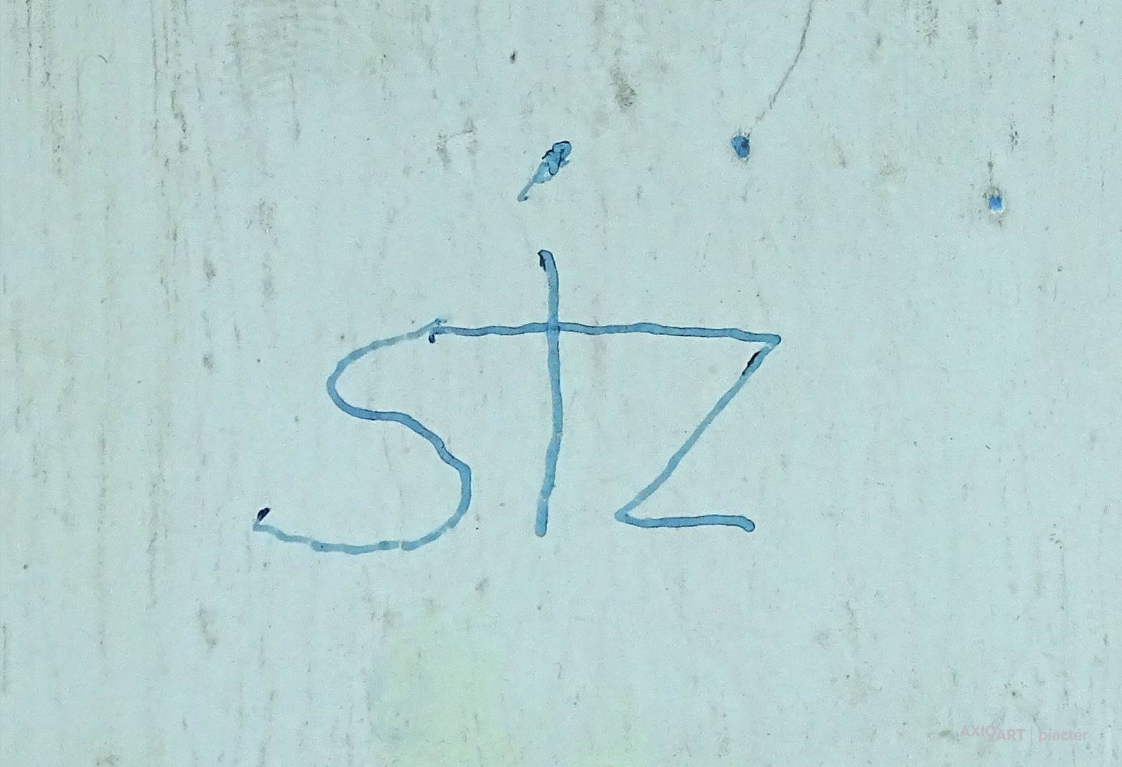 [1L267/022] Olaj farost festmény zöld színű keretben. Akasztási lehetőséggel rendelkezik. Jelezve jobbra lent: STZ Hátoldalán feliratok: STZ (82) "SZABADESÉS" .... 1984. XII. 20. Magasság: 67.5 cm Szélesség: 58 cm Súly: 1.62 kg