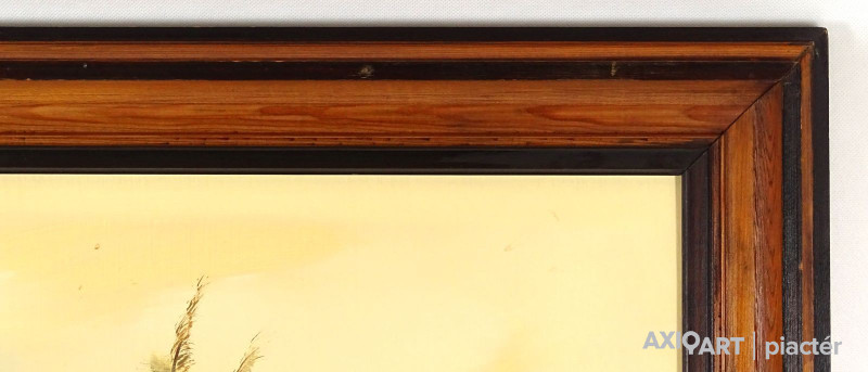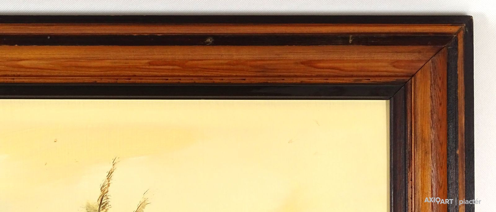 [FK3264/FL-4] A kép mérete: 31,5 x 70,5 cm keret nélkül. Készült: Olaj, tempera, Farostlemez A kép Kurucz D. István (Hódmezővásárhely, 1914, Budapest, 1996) alkotása. Jelezve Jobbra lent "Kurucz 977" A festmény jó állapotban van. Keret: Ép A festmény hátoldalán a Képcsarnokvállalat raglapja látható. Magyar festők és grafikusok életrajzi lexikona I-II. Festő, grafikus. Vásárhelyről, ahol Darvasy István festőművész figyelt fel tehetségére, került Szőnyi István magániskolájába. A fővárosi Képzőművészeti Főiskolának, ahol Rudnay Gyula, Réti István, Benkhard Ágost, Szőnyi István voltak a tanítómesterei 1940-ig volt a tanítványa. A monumentális festészetet Nagy Sándor tanította. Tanulmányúton járt több kelet- és nyugat-európai államban, Mongóliában, Japánban, Algériában. 1940-ben Hódmezővásárhelyen telepedett le, 1943-1947 között bekapcsolódott szülővárosa művészeti és közéletébe. A Vásárhely Népe c. lap munkatársa volt. 1949-59 között Szőnyi tanársegédjeként freskótechnikát tanított a főiskolán. 1951-52-ben megszervezte a Honvédségi Képzőművészeti Stúdiót, majd kinevezték a Honvéd Képzőművészeti Iskola igazgatójának. A vásárhelyi iskola reprezentáns egyéniségeként jelentős szerepe volt a Vásárhelyi Őszi Tárlatok elindításában. Megszervezete és vezette a Mednyánszky Társaságot, s haláláig művészeti vezetője volt a Hajdúböszörményi Nemzetközi Művésztelepnek. Évekig elnöke volt a Hortobágyi Alkotótábornak. Az alföldi parasztok életét megörökítő képei a falképek összefoglaló stílusában a népi realizmus és a dekoratív sommázás szellemében készültek. Számos falképet festett (Kossuth Akadémia, hódmezővásárhelyi iskola, stb.). 1941-től számos kisebb-nagyobb egyéni kiállítása volt, bemutatkozott több hazai és külhoni városban. 1941-től minden jelentősebb országos rendezvény és a magyar művészek külföldi bemutatóinak résztvevője. Rendszeresen szerepelt a Vásárhelyi Őszi Tárlatokon, a Hatvani Tájkép és Portrébiennálékon, a Szegedi Nyári Tárlatokon. Képei bemutatásra kerültek a vásárhelyi iskola jubileumi rendezvényein. 1962-ben több alkotásával szerepelt a Velencei Biennálén. Díjak: SZOT-díj, Munkácsy-díj, Érdemes és Kiváló Művész kitüntetés, Tornyai-plakett, római ösztöndíj, a Munka Érdemrend arany fokozata, Káplár Miklós-díj és emlékplakett, Kossuth-díj. Művei megtalálhatók minden jelentősebb hazai, több olasz és japán közgyűjteményben. (ML, D.J.: Műv. 1985/5, Tasnádi Attila adatközlése nyomán, L.L.: Műv. 1983/3) Magyar festők és grafikusok életrajzi lexikona I-II. Műgyűjtők és kereskedők kézikönyve Festő, grafikus. Vásárhelyről, ahol Darvasy István festőművész figyelt fel tehetségére, került Szőnyi István magániskolájába. A fővárosi Képzőművészeti Főiskolának, ahol Rudnay Gyula, Réti István, Benkhard Ágost, Szőnyi István voltak a tanítómesterei 1941-ig volt a növendéke. A monumentális festészetet Nagy Sándor tanította. Egy ideig tanársegédként működött Szőnyi mellett. Több ízben járt Itáliában tanulmányúton. Évekig művészeti vezetője volt a Hajdúböszörményi Nemzetközi Művésztelepnek. Az alföldi parasztok életét megörökítő képei a falképek összefoglaló stílusában a népi realizmus és a dekoratív sommázás szellemében készülnek. A II. világháború alatt szerepet vállalt a Szocialista Képzőművészek Csoportjának akcióiban. 1949-1960 k. a Képzőművészeti Főiskola falképtanszékének tanára volt. Több falképet festett (Kossuth Akadémia, hódmezővásárhelyi iskola, stb.). 1962-ben több alkotásával szerepelt a Velencei Biennálén, SZOT-díjas, Munkácsy-díjas, érdemes és kiváló művész kitüntető elismerésében részesült. (ML, D.J.: Műv.-1985/5, L.L: Műv.-1983/3) Magyar festők és grafikusok adattára Tanulmányait a Képzőművészeti Főiskolán végezte, ahol Rudnay Gyula és Réti István voltak a mesterei. 1941-1943-ban ösztöndíjas Rómában. 1943-1947 között Hódmezővásárhelyen dolgozik, egyidejűleg a Vásárhelyi Hétfő c. hetilap szerkesztője. 1949-1960 közötti években a budapesti Képzőművészeti Főiskola freskó tanszékének tanára. Az 1940-es évek eleje óta kiállító művész. 1962-ben a Velencei Biennálén állították ki műveit. 1970-ben Csók István Galériában volt kiállítása. A Vásárhelyi Őszi Tárlatok és a Szegedi Nyári Tárlatok rendszeres kiállító művésze. Az alföldi festészet egyéni hangú továbbfejlesztője. Táblaképeket, freskókat és kerámia falképeket alkot. Munkácsy-díjas, érdemes és kiváló művész kitüntető elismerésében részesült. A SZOT a legelső képzőművészek közt, 1962-ben tüntette ki díjával. A 70. születésnapját ünneplő művész 1984 decemberében életmű kiállítást rendezett műveiből a hódmezővásárhelyi Tornyai János Múzeumban. 1986-ban a budapesti Hollósy Galériában nyílt kiállítása. - Irod.: Szij Rezső: Kurucz Dezső István festőművész. Bp. 1967.; Kulcsár Ödön: SZOT-díjasok. Bp., 1981.; Lóska Lajos: Mindig freskót szerettem volna festeni. Beszélgetés Kurucz Dezső Istvánnal. Művészet, 1984. 3. Művészeti lexikon I-IV. Festő, Munkácsy-díjas. A Képzőművészeti Főiskolán Rudnay Gyula, Réti István, Benkhard Ágost, Szőnyi István növendéke volt 1934-40 között. Több ízben járt külföldi tanulmányúton. Az alföldi parasztok életét megörökítő képei a falképek összefoglaló stílusában a népi realizmus és a dekoratív sommázás szellemében készülnek. 1949-60 között a Képzőművészeti Főiskola falképtanszékének tanára volt. Több falképet festett (Kossuth Akadémia; Hódmezővásárhely, iskola, pápai pártház, 1965). Legutóbb 195