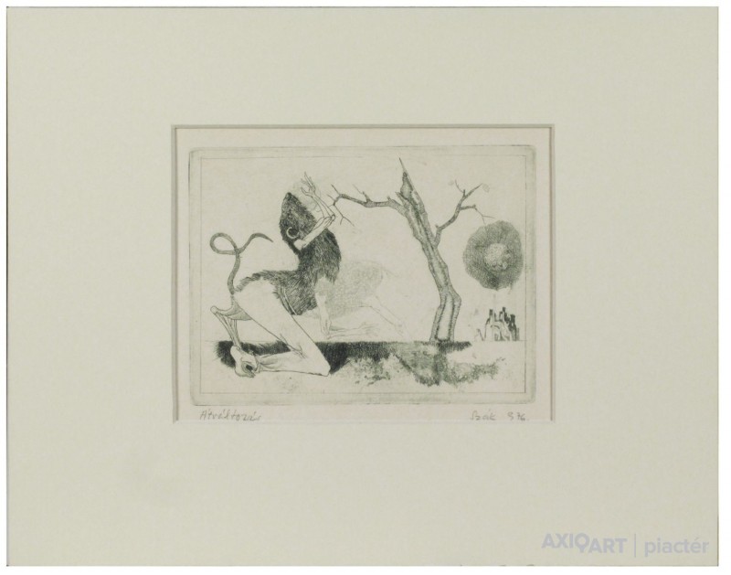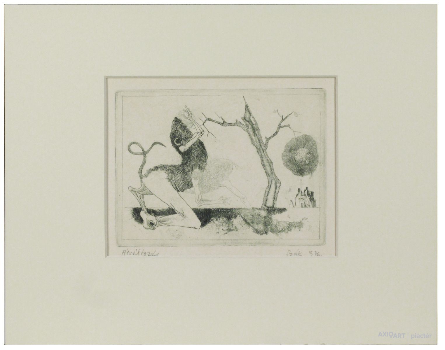 [FKB309/Bp72/506] A kép mérete: 11 x 14,7 cm keret nélkül. Készült: Rézkarc, Papír A kép Szák jelzéssel magyar művész 1976 alkotása. Jelezve lent "Átváltozás; Szák 976 (ceruzával)" A festmény jó állapotban van. Keret: Paszpartúban