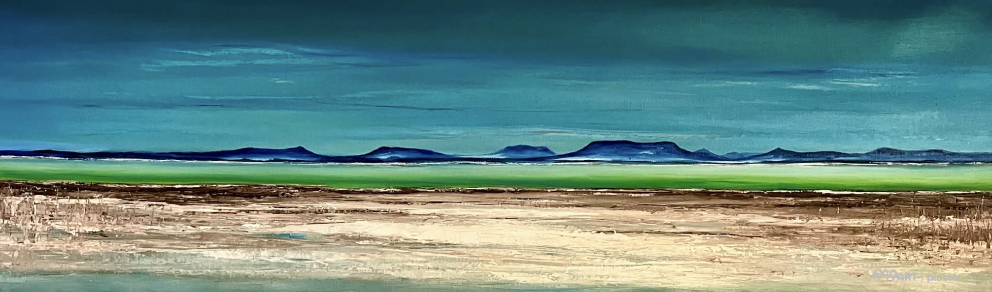 Szalai Krisztián: Balatonfenyves. Méret: 30x90cm Technika: vakrámára feszített vászonra olajfestékkel. Egyedi méretre gyártott minőségi vakrámára melynek a magassága 4cm . A festmények oldala is festett! Szalai Krisztián SZKart-Festészet Szalai Krisztián kortárs festőművész, aki hosszú évek óta következetesen építi művészi pályáját. Alkotásai számos kiállításon és rangos rendezvényen szerepeltek, impozáns kiállítóterekben és gyűjteményekben, Magyarországon és külföldön egyaránt. Festményeiben a Balaton vizuális és érzelmi világa jelenik meg kortárs szemlélettel: nem konkrét tájképként, hanem hangulatként, ahol a fény, a tér és a színek kiegyensúlyozott rendszert alkotnak. Munkái letisztultak, időtállóak, és túlmutatnak az aktuális irányzatokon. Szalai Krisztián művei gyűjtői érdeklődésre is számot tartanak, és stabil, hosszú távú értéket képviselnek. Egy alkotás megvásárlása nem csupán esztétikai döntés, hanem tudatos befektetés egy elismert kortárs művész munkájába. #SZKart #kortras #modern #balatoni #festeszet