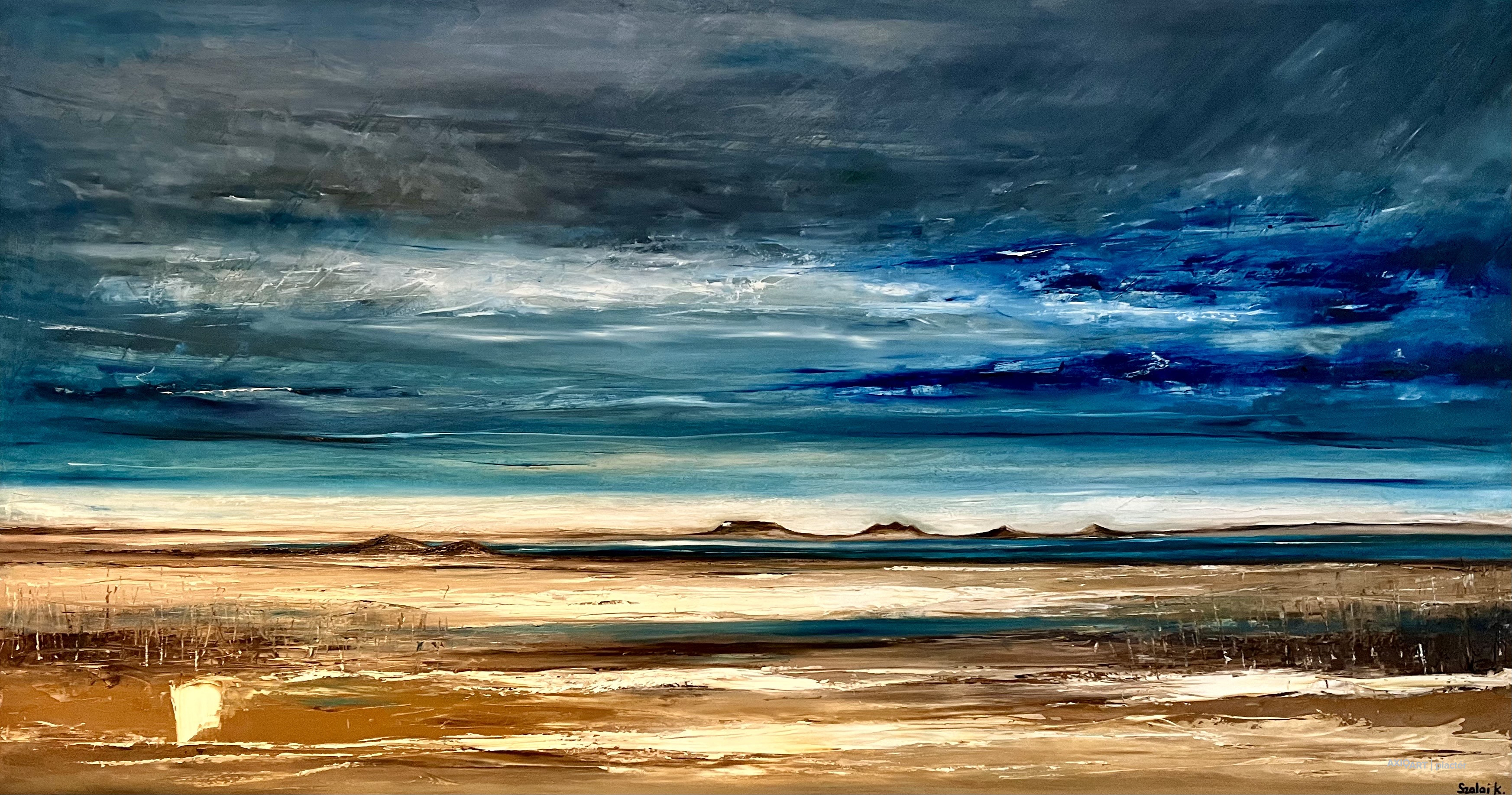Szalai Krisztián: Balatonlelle-Kishegy. Méret: 80x150cm Technika: vakrámára feszített vászonra olajfestékkel. Egyedi méretre gyártott minőségi vakrámára melynek a magassága 4cm . A festmények oldala is festett! Szalai Krisztián SZKart Szalai Krisztián kortárs festőművész, aki hosszú évek óta következetesen építi művészi pályáját. Alkotásai számos kiállításon és rangos rendezvényen szerepeltek, impozáns kiállítóterekben és gyűjteményekben, Magyarországon és külföldön egyaránt. Festményeiben a Balaton vizuális és érzelmi világa jelenik meg kortárs szemlélettel: nem konkrét tájképként, hanem hangulatként, ahol a fény, a tér és a színek kiegyensúlyozott rendszert alkotnak. Munkái letisztultak, időtállóak, és túlmutatnak az aktuális irányzatokon. Szalai Krisztián művei gyűjtői érdeklődésre is számot tartanak, és stabil, hosszú távú értéket képviselnek. Egy alkotás megvásárlása nem csupán esztétikai döntés, hanem tudatos befektetés egy elismert kortárs művész munkájába. #SZKart #kortras #modern #balatoni #festeszet