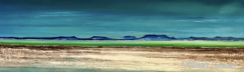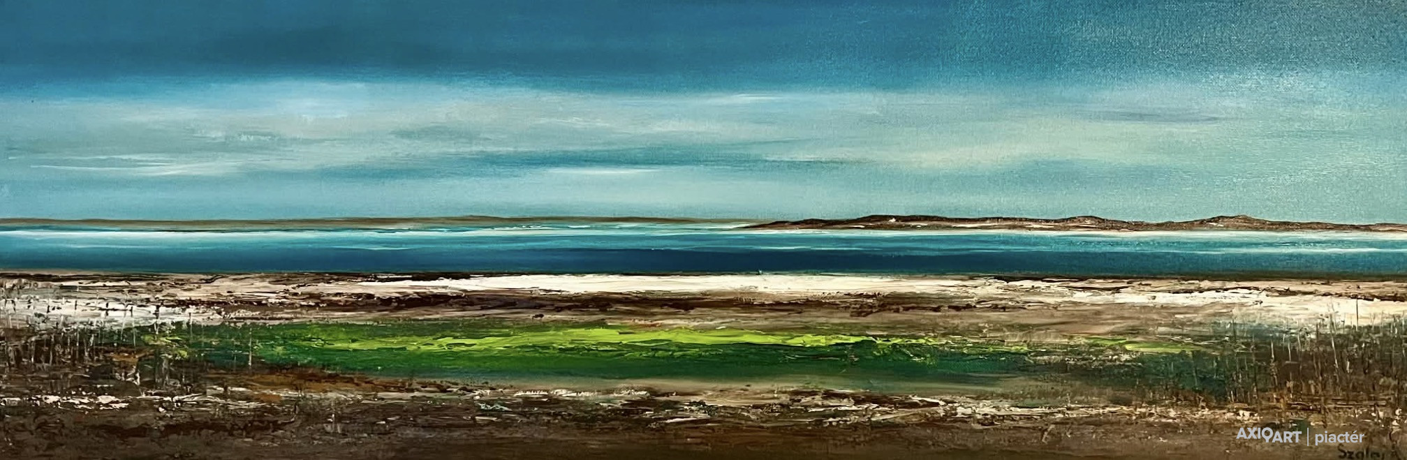 Szalai Krisztián: Tihany. Méret: 30x90cm Technika: vakrámára feszített vászonra olajfestékkel. Egyedi méretre gyártott minőségi vakrámára melynek a magassága 4cm . A festmények oldala is festett! Szalai Krisztián SZKart-Festészet Szalai Krisztián kortárs festőművész, aki hosszú évek óta következetesen építi művészi pályáját. Alkotásai számos kiállításon és rangos rendezvényen szerepeltek, impozáns kiállítóterekben és gyűjteményekben, Magyarországon és külföldön egyaránt. Festményeiben a Balaton vizuális és érzelmi világa jelenik meg kortárs szemlélettel: nem konkrét tájképként, hanem hangulatként, ahol a fény, a tér és a színek kiegyensúlyozott rendszert alkotnak. Munkái letisztultak, időtállóak, és túlmutatnak az aktuális irányzatokon. Szalai Krisztián művei gyűjtői érdeklődésre is számot tartanak, és stabil, hosszú távú értéket képviselnek. Egy alkotás megvásárlása nem csupán esztétikai döntés, hanem tudatos befektetés egy elismert kortárs művész munkájába. #SZKart #kortras #modern #balatoni #festeszet