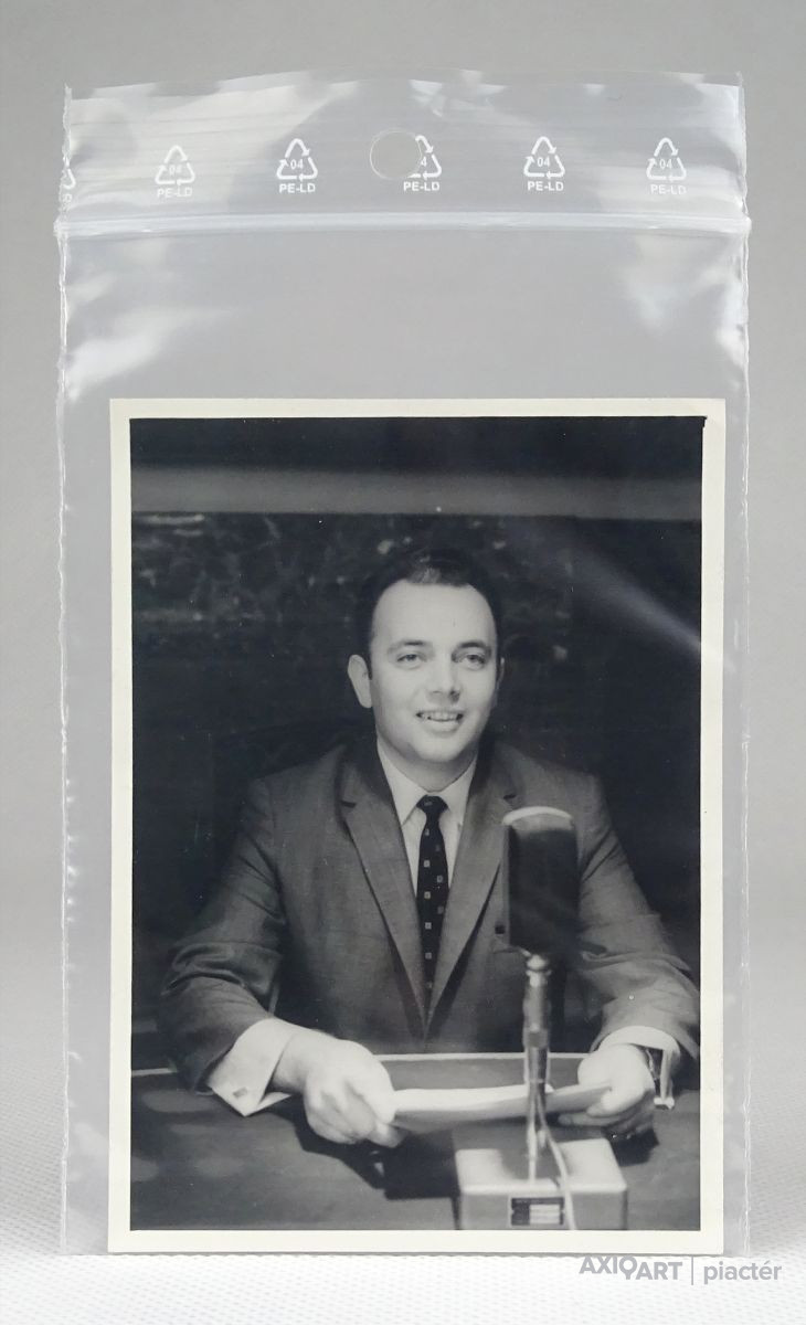 [1B323/X048/01] 25% ÁRENGEDMÉNY MINDEN TERMÉKÜNKRE Dec. 14-ig Szép állapotú fekete-fehér portré fénykép, fotográfia. Hátoldalán saját kezű felirat: 1968. 19-ES STÚDIÓ SZALAY ZOLTÁN FOTÓZTA Magasság: 10 cm Szélesség: 7 cm Súly: 0.005 kg