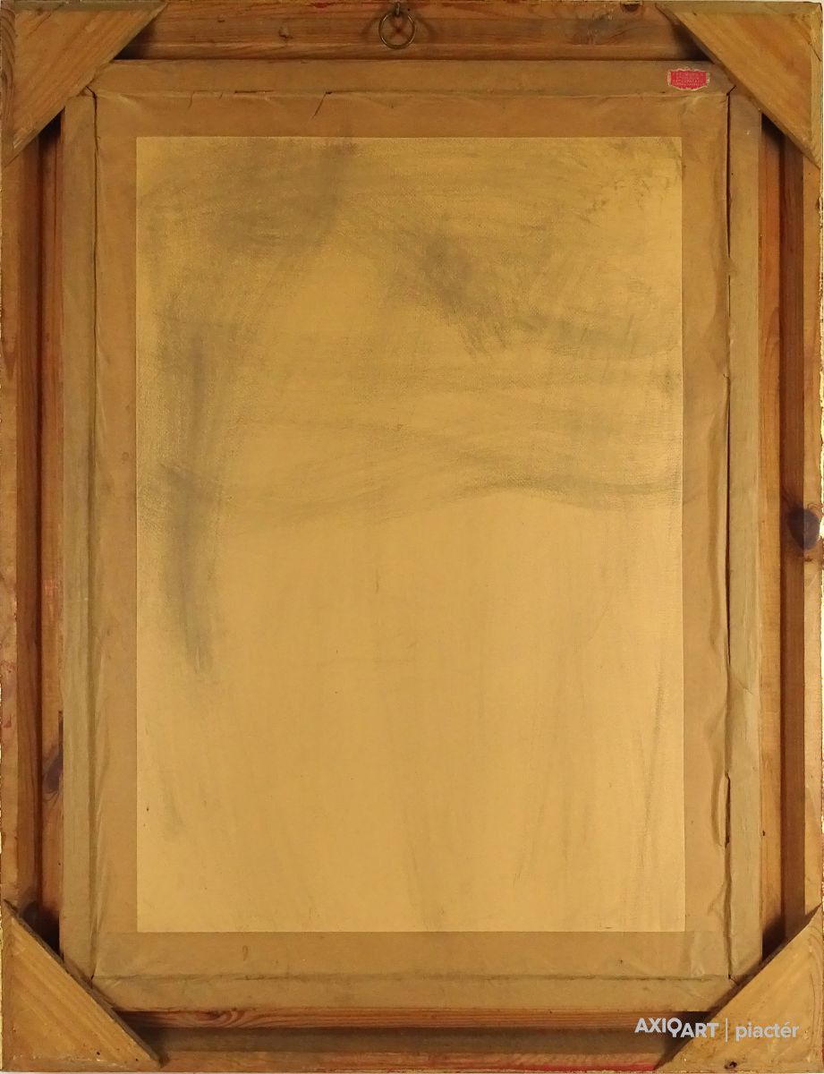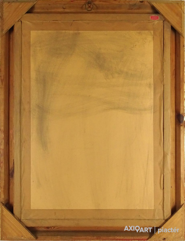 [FK0037/Z018] A kép mérete: 50 x 70 cm keret nélkül. Készült: Olaj, Vászon A kép Paizs László (Szentpéterúr, 1935) alkotása. Jelezve Jobbra lent "P. L." A festmény jó állapotban van. Keret: Ép A festmény hátoldalán a Képcsarnokvállalat címkéje található. Magyar festők és grafikusok életrajzi lexikona I-II. Festő. Tanulmányait a budapesti Iparművészeti Főiskolán végezte 1959-ben. Z. Gács György, Rákosy Zoltán és Szentiványi Lajos növendéke volt. A '60-as évek első felében hagyományosabb felfogású olajképeket festett, mozaikokat, freskókat, utóbb a pop-art körébe tartozó, a francia Arman munkáival rokon műveket alkotott. 1961 óta kiállító művész. Egyéni (Fényes Adolf Terem, Csók Galéria, Műcsarnok, Magyar Nemzeti Galéria, Halászbástya, Bástya Galéria, Vigadó Galéria, Budapest Galéria, Győr, Szombathely, Szeged, Zalaegerszeg, Duisburg, Aix-en-Provence, stb). és vegyes (Ernst Múzeum, Műcsarnok, Óbuda Galéria, Magyar Nemzeti Galéria, Csók Galéria, Vigadó Galéria, Székesfehérvár, Kaposvár, Pécs, Hódmezővásárhely, Firenze, Milano, Padova, Nápoly, Velence, Düsseldorf, Aachen, Genf, stb) tárlatokon vett részt. 1980-ban Munkácsy-díjjal jutalmazták, 1988-ban Érdemes Művész kitüntető elismerésben részesült. Munkáit őrzi a Magyar Nemzeti Galéria, a Fővárosi Képtár, a szombathelyi képtár, a pécsi Janus P. Múzeum, a székesfehérvári István Király Múzeum és a dunaszerdahelyi Kortárs Magyar Galéria. (H.B.: Műv, 1972/4, K.Gy.: Műv. 1977/2, K.G.: Műv. 1978/10, M.L.: Műv, 1983/5, R.G.: Műv, 1987/9, Sz.Gy.: Új Műv. 1995/4, MK) Magyar festők és grafikusok életrajzi lexikona I-II. Műgyűjtők és kereskedők kézikönyve Festő. Tanulmányait a bp.-i Iparművészeti Főiskolán végezte. Mozaikokat ferskókat, utóbb a pop-art körébe tartozó, a francia Arman műveivel rokon műveket alkotott. Mozaikok: a Szegedi Megyei Tanács, a Pécsi Óvoda, a Gödöllői Agrártudományi Egyetem. Freskók: Budapest - Csatárka úti Gyermekotthon. 1971-ben a Fényes Adolf Teremben volt kiállítása, 1983-ban pedig a szegedi Móra Ferenc Múzeumban nagyszabású tárlatokon mutatta be munkáit. 1988-ban érdemes művész kitüntető elismerésben részesült. (MK) Magyar festők és grafikusok adattára Az Iparművészeti Főiskolán végzett 1959-ben. Mozaikokat (Szeged, Megyei Tanács; Pécs, Óvoda; Gödöllő, Agrártudományi Egyetem), freskókat (Budapest, Csatárka úti Gyermekotthon), újabban a pop art körébe tartozó, a francia Arman műveivel rokon műveket alkotott. 1971-ben a Fényes Adolf Teremben nyílt kiállítása. 1983 februárjában a szegedi Móra Ferenc Múzeumban megrendezett nagyszabású tárlaton mutatta be alkotásait. 1988-ban érdemes művész kitüntető elismerésben részesült. - MK Művészeti lexikon I-IV. (Szentpéterur, 1935. dec. 26.- ): festő. Az Iparművészeti Főiskolán 1959-ben végzett Rákosy Zoltán, Z. Gách György és Szentiványi Lajos növendékeként. Épületdiszítő mozaikokat, (Szeged, Megyei Tanács, 1961; Pécs, Óvoda, 1964), műanyagfreskókat (Bp., Csatárka úti Gyermekotthon, 1964) és gobelinterveket készít. Kortárs magyar művészeti lexikon I-III. Festő, szobrász, grafikus. 1959: MIF, mesterei: Z. Gács György, Rákosy Zoltán, Szentiványi Lajos. 1980: Munkácsy-díj; 1988: érdemes művész. Főiskolás éveinek második felében, majd azt követően számos murális munka kivitelezésében vett részt, Fónyi Géza, Konecsni György, Z. Gács György, Rákosi Zoltán és Domanovszky Endre mellett dolgozva. A 60-as évek első felének hagyományosabb fölfogású olajképeket festett. 1964-ben a Velencei B.-n megismerkedett az amerikai pavilonban a pop art Európában akkor még újnak számító törekvésével, és részben ez inspirálta, hogy 1967-ben textil, fém, bőr anyagú "varrottas" képeket küldjön az FKS éves tárlatára; a megnyitó előtt többek között az ő munkáit is eltávolították a falról. A 70-es években pop art-os objekteket (A trónörököspár politikai gyilkosság áldozata lett, 1970, plexiüveg, újság, szarvasbogarak), majd konstruktív, átlátszó plexiüveg plasztikákat készített belső fénytörő határfelületekkel. A 80-as években készültek az anyagában színezett, konstruktív, nagyméretű poliészter szobrai, majd színes poliészter táblaképeket alkotott, mesterségesen roncsolt felületekkel, mintha régészeti leletek vagy atomtámadás utáni festmény-szurrogátumok lennének. Ekkor kezdett organikus plaszikájú bronzszobrokat is mintázni. A 90-es években, a táblaképek és szobrok mellett nagyméretű, egyedi grafikákat készített, formavilágában némileg a roncsolt táblaképekből kiindulva, de szinte kizárólag az emberi alakból elvonatkoztatott torzókat megjelenítve. Ek: 1966: Művészklub, Győr; 1971: Fényes A. T.; 1972: Bercsényi 28-30 G.; 1973: BME B-épület; 1976: Csók G.; 1977: G. Hildebrandt, Duisburg (NSZK); 1979: Bástya G., Halászbástya; Helyőrségi Műv. H., Nagyatád; József A. Műv. Közp., Szeged; Göcsej M., Zalaegerszeg; 1982: Bezzegh G., Küsnacht (CH); 1983: Móra F. M., Szeged; 1987: Műcsarnok (kat.); MNG; 1988: Pandora G., Badacsonytomaj; 1989: Parktheatter, Iserlohn (NSZK); Qualitas G.; Hevesi S. Színház, Zalaegerszeg; 1990: Vasarely Fondation (Ferdinánd Judittal, Fóth Ernővel), Aix-en-Provence (FR); 1994: Vigadó G.; 1997: Pest Center G.; 1998: Budapest G. (kat.); 1999: Pest Center G. (kat); G. Arcis, Sárvár; MMA, Bp.; 2001: SZK, Szhely; Ernst M. (kat.) Vcsk: 1961, 1964, 1966: FKS, Ernst M.; 1962: 9. Magyar Képzőműv. kiállítás, Műcsarnok; 1967: Mai magyar festészet, Új-Delhi; 1969: Vas megyei művészek, Savaria M., Szhely; V. Orsz. Grafikai B., Miskolc; 1971: Új művek, Műcsarnok; 1972: Fiatal művészek Budapestről. Likovni Salon, Újvidék (YU); 1972, 1973: Balatonboglár