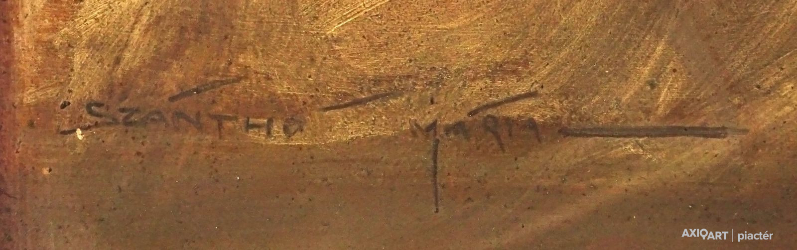 [1O309/124] Olaj vászon festmény gyönyörű aranyozott keretben. Akasztási lehetőséggel rendelkezik. Azonnal falra akasztható állapotban van. Jelzés balra lent: SZÁNTHÓ MÁRIA Hátoldalán keretezői címke: FREIMANN M. SPECIÁLIS KÉPKERETEZŐ SZEGED KÁRÁSZ U. 10. Magasság: 88 cm Szélesség: 68 cm Súly: 5.8 kg SZÁNTHÓ MÁRIA 1897 - 1998   Festő, a naturalizmus jeles képviselője. Kukán Géza tanítványa. Számos kiállítása volt, valamint 1936-ban gyűjteményes kiállítása nyílt Budapesten. Forrás: kieselbach.hu