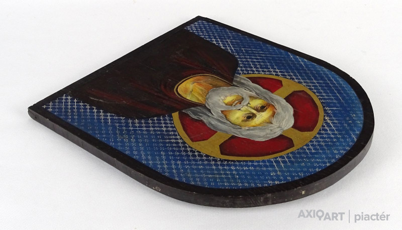 [1P311/136] Boltíves fa táblára festett, akasztási lehetőséggel rendelkező ikon. Rajta Szent Szerafim ősz hajú portréja látható. Magasság: 29 cm Szélesség: 24.5 cm Súly: 0.42 kg Szarovi Szent Szerafim    Ugrás a navigációhozUgrás a kereséshez Szarovi Szent Szerafim sztarec Születése 1759. július 19. Kurszk Halála 1833. január 2. Szarov Tisztelete Tisztelik Orosz ortodox egyház Szentté avatása 1903. július 19., Szarov Szentté avatta: Szent Szinódus Sírhely Nyizsnyij Novgorod-i terület Ünnepnapja január 2. Ortodox kereszténység Szarovi Szent Szerafim/Szerafin, oroszosan Szerafim Szarovszkij (oroszul: Серафим Саровский), (1759. július 19. – 1833. január 2.) minden idők egyik leghíresebb orosz sztarece.  Élete Kurszkban született jómódú kereskedőcsaládból. Hároméves korában elveszítette édesapját, így mélyen vallásos édesanyja nevelte. 18 éves korában egy kijevi sztarec a szarovi monostort ajánlotta neki, ami körül az erdőségben remeteségek is meghúzódtak. Szerafim 1779-ben kezdte meg újoncévét. Asztalosmunkára osztották be, s ebben a mesterségben igen nagy jártasságra tett szert. Ezekben az években ismerte meg a lelki élet nagy mestereinek írásait, köztük Szent Pakhomiosz Reguláját, Szent Makariosz homíliáit. A Szentírás mindennapi kenyerévé vált. Ekkor kezdte gyakorolni a Jézus-imát. Titokzatos betegség másfél évre ágyhoz szegezte, váratlan gyógyulását a Szent Szűz, Péter és János apostol közbenjárásnak tulajdonította. 1786. augusztus 13-án tette le a monasztikus fogadalmakat, a Prohor helyett ekkor kapta a Szerafim nevet. Tambov püspöke 1793-ban pappá szentelte. Szerafim ezt követően azonnal kérte, hogy remeteségbe vonulhasson. Remete kunyhójába csak a Szentírást és Pakhomiosz Reguláját vitte magával. Keményen böjtölt, hosszan virrasztott, abból élt, amit kertjében termesztett. Vasárnaponként visszatért a monostorba, hogy részt vegyen a közös liturgián. A magányban neki is meg kellett küzdenie a szenvedélyekkel, a kísértésekkel, leszállva a teremtményi lét titokzatos mélységeibe. Káromló gondolatok kerülgették, miközben a sztiliták módjára az éjszakát egy sziklán állva töltötte, s ismételte szüntelen: "Jézus Krisztus, az élő Isten Fia, irgalmazz nekem, bűnösnek!" A világot átjáró bűn valósággal megnémította, nem talált szavakat kozmikus tapasztalatai kifejezésére. A monostor új elöljárója, nem jó szemmel nézve Szerafim növekvő népszerűségét, 1810-ben visszarendelte. Szerafim a monostorban is teljes hallgatásba burkolózott, hosszú imái alatt a Gyöngédség Anyja ikont szemlélte, ahhoz fordulva, akit "az örömök örömének" nevezett. Előtte aludte, térdelve, fejét kezére hajtva, várta a Jegyes érkezését. „ Ha az embernek semmi gondja sincs maga miatt, az Isten iránta való szeretetéből fakadóan, és a jótétemények miatt sem, tudva azt, hogy az Isten törődik vele, – az ilyen remény igaz és bölcs. Ha pedig az ember önmaga gondoskodik saját dolgaiban, és Istenhez imádsággal csak akkor fordul, amikor bajba kerül, amivel önmaga erejéből nem képes megbirkózni, elkezd reménykedni Isten segítségében, – az ilyen remény puszta és hazug. Ugyanis az igazi reménység csupán csak egyedül az Isten Országát keresi … A szív addig nem talál békére, amíg nem birtokolja az ilyen reményt. Ez a remény pedig békét hoz számára, és öröm tölti el őt. ” – Szent Szerafim 1820-tól egyre többen keresték fel Szerafim sztarecet tanácsát kérve, mert tudták róla, rendelkezik a szellemek megkülönböztetésének és a lelkek vezetésének adományával. Szerafim minden tettében az Istenanyának engedelmeskedett. 1825-ben a Szent Szűz parancsára kilépett magányából, szeretettől megindultan így köszöntötte látogatóit: "Boldogságom, Krisztus Feltámadt!!" A hozzá bekopogtatók képviselték az orosz társadalom minden rétegét a cártól a muzsikig. A feljegyzések szerint Szerafim nem csak a lélekbe látás és a tanácsadás adományával rendelkezett, hanem imájával számos csodás gyógyulást is kieszközölt. 1825-ben megfogant benne egy apácamonostor alapításának gondolata. A terv Divejovóban meg is valósult. A Jelena Vasziljevna által vezetett közösségnek Szerafim haláláig lelki vezetője maradt. 1833-ban hunyt el, teljes magányban, az Istenanya ikonja előtt térdelve. Az orosz ortodox egyház 1903-ban kanonizálta. Szerafim egyenes folytatója lett Remete Szent Antal, Szórai Szent Nilus, Palamasz Szent Gergely lelkiségi hagyományának, sztarec lett, aki úgy vezette a lelkeket Isten országa felé, hogy tudta, felelős értük. Tanításának központi tétele: a tisztuláson átment lélek megkapja a Szentlelket, aki lakást véve benne, isteni örömmel és békével árasztja el. Szerafim a Bibliai balga szüzek példájára hivatkozva állítja: bizonyára erényesek voltak, de zártak maradtak a Szentlélek előtt. A keresztény hivatás lényege a Szentlélek kegyelme felé való teljes megnyílás. Erre pedig minden embert képesség tesz a keresztség. Szerafim lelkiségi "forradalma", a sztarec-mozgalom kétségtelenül döntő szerepet játszott az orosz egyház ébredésében. Ő volt leki mestere a XIX. századi "szent Oroszországnak".    Forrás: wikipédia