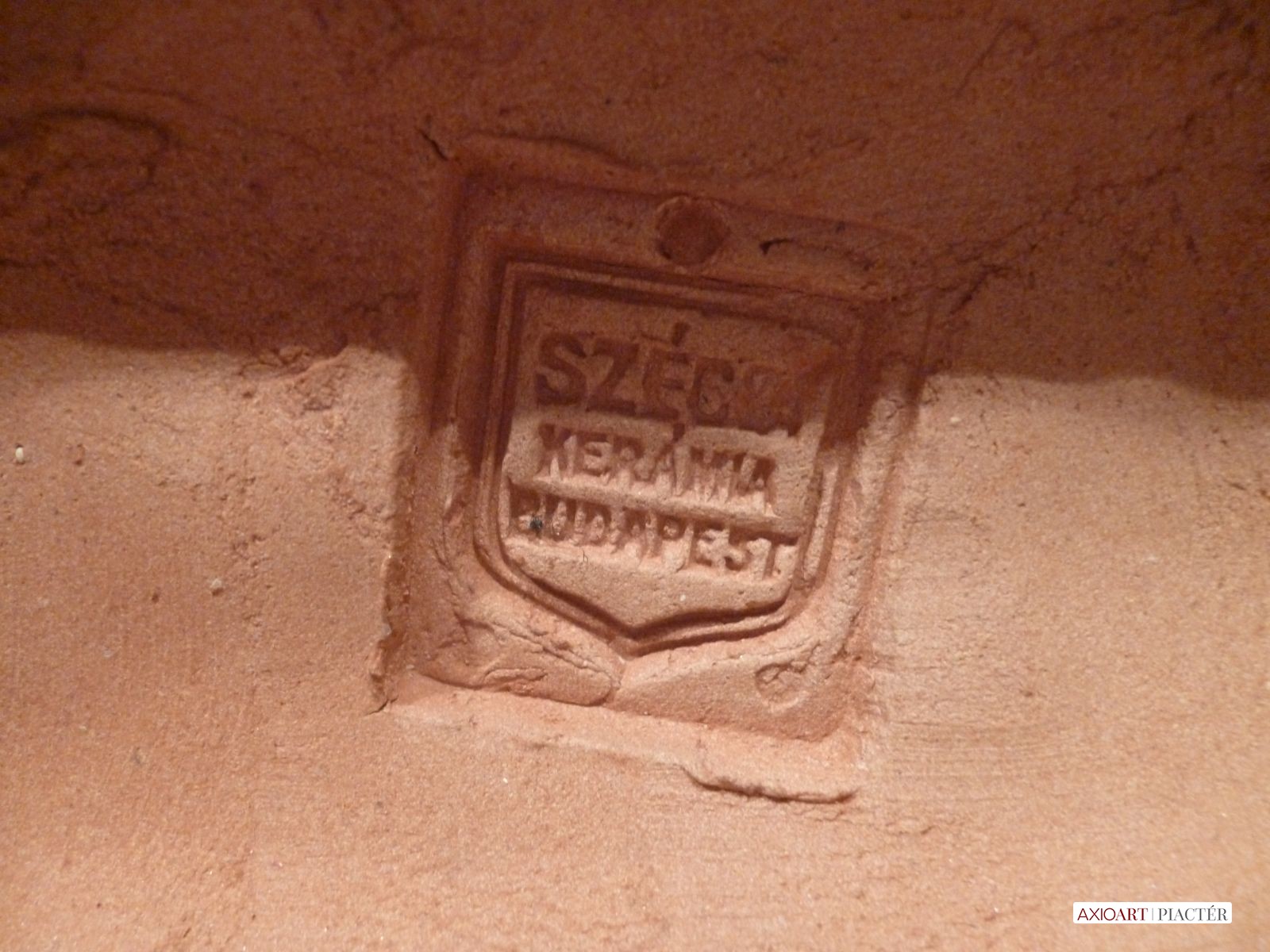 Tipikus Szécsi mázas kerámia, alján mélynyomással SZÉCSI KERÁMIA BUDAPEST jelzés.