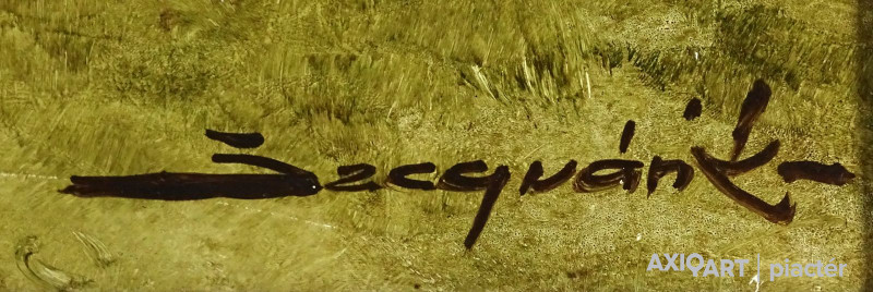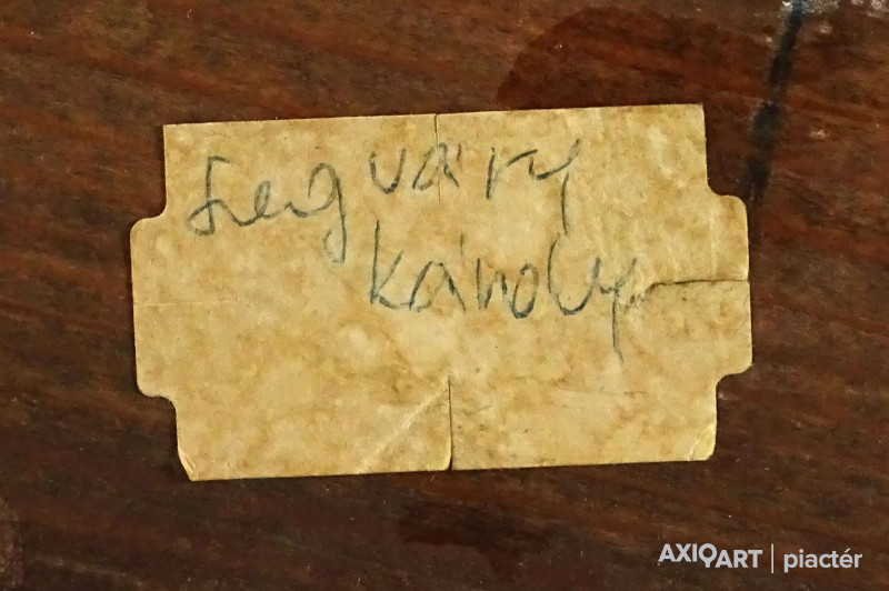 [FK3264/FL-4] A kép mérete: 31,5 x 70,5 cm keret nélkül. Készült: Olaj, tempera, Farostlemez A kép Kurucz D. István (Hódmezővásárhely, 1914, Budapest, 1996) alkotása. Jelezve Jobbra lent "Kurucz 977" A festmény jó állapotban van. Keret: Ép A festmény hátoldalán a Képcsarnokvállalat raglapja látható. Magyar festők és grafikusok életrajzi lexikona I-II. Festő, grafikus. Vásárhelyről, ahol Darvasy István festőművész figyelt fel tehetségére, került Szőnyi István magániskolájába. A fővárosi Képzőművészeti Főiskolának, ahol Rudnay Gyula, Réti István, Benkhard Ágost, Szőnyi István voltak a tanítómesterei 1940-ig volt a tanítványa. A monumentális festészetet Nagy Sándor tanította. Tanulmányúton járt több kelet- és nyugat-európai államban, Mongóliában, Japánban, Algériában. 1940-ben Hódmezővásárhelyen telepedett le, 1943-1947 között bekapcsolódott szülővárosa művészeti és közéletébe. A Vásárhely Népe c. lap munkatársa volt. 1949-59 között Szőnyi tanársegédjeként freskótechnikát tanított a főiskolán. 1951-52-ben megszervezte a Honvédségi Képzőművészeti Stúdiót, majd kinevezték a Honvéd Képzőművészeti Iskola igazgatójának. A vásárhelyi iskola reprezentáns egyéniségeként jelentős szerepe volt a Vásárhelyi Őszi Tárlatok elindításában. Megszervezete és vezette a Mednyánszky Társaságot, s haláláig művészeti vezetője volt a Hajdúböszörményi Nemzetközi Művésztelepnek. Évekig elnöke volt a Hortobágyi Alkotótábornak. Az alföldi parasztok életét megörökítő képei a falképek összefoglaló stílusában a népi realizmus és a dekoratív sommázás szellemében készültek. Számos falképet festett (Kossuth Akadémia, hódmezővásárhelyi iskola, stb.). 1941-től számos kisebb-nagyobb egyéni kiállítása volt, bemutatkozott több hazai és külhoni városban. 1941-től minden jelentősebb országos rendezvény és a magyar művészek külföldi bemutatóinak résztvevője. Rendszeresen szerepelt a Vásárhelyi Őszi Tárlatokon, a Hatvani Tájkép és Portrébiennálékon, a Szegedi Nyári Tárlatokon. Képei bemutatásra kerültek a vásárhelyi iskola jubileumi rendezvényein. 1962-ben több alkotásával szerepelt a Velencei Biennálén. Díjak: SZOT-díj, Munkácsy-díj, Érdemes és Kiváló Művész kitüntetés, Tornyai-plakett, római ösztöndíj, a Munka Érdemrend arany fokozata, Káplár Miklós-díj és emlékplakett, Kossuth-díj. Művei megtalálhatók minden jelentősebb hazai, több olasz és japán közgyűjteményben. (ML, D.J.: Műv. 1985/5, Tasnádi Attila adatközlése nyomán, L.L.: Műv. 1983/3) Magyar festők és grafikusok életrajzi lexikona I-II. Műgyűjtők és kereskedők kézikönyve Festő, grafikus. Vásárhelyről, ahol Darvasy István festőművész figyelt fel tehetségére, került Szőnyi István magániskolájába. A fővárosi Képzőművészeti Főiskolának, ahol Rudnay Gyula, Réti István, Benkhard Ágost, Szőnyi István voltak a tanítómesterei 1941-ig volt a növendéke. A monumentális festészetet Nagy Sándor tanította. Egy ideig tanársegédként működött Szőnyi mellett. Több ízben járt Itáliában tanulmányúton. Évekig művészeti vezetője volt a Hajdúböszörményi Nemzetközi Művésztelepnek. Az alföldi parasztok életét megörökítő képei a falképek összefoglaló stílusában a népi realizmus és a dekoratív sommázás szellemében készülnek. A II. világháború alatt szerepet vállalt a Szocialista Képzőművészek Csoportjának akcióiban. 1949-1960 k. a Képzőművészeti Főiskola falképtanszékének tanára volt. Több falképet festett (Kossuth Akadémia, hódmezővásárhelyi iskola, stb.). 1962-ben több alkotásával szerepelt a Velencei Biennálén, SZOT-díjas, Munkácsy-díjas, érdemes és kiváló művész kitüntető elismerésében részesült. (ML, D.J.: Műv.-1985/5, L.L: Műv.-1983/3) Magyar festők és grafikusok adattára Tanulmányait a Képzőművészeti Főiskolán végezte, ahol Rudnay Gyula és Réti István voltak a mesterei. 1941-1943-ban ösztöndíjas Rómában. 1943-1947 között Hódmezővásárhelyen dolgozik, egyidejűleg a Vásárhelyi Hétfő c. hetilap szerkesztője. 1949-1960 közötti években a budapesti Képzőművészeti Főiskola freskó tanszékének tanára. Az 1940-es évek eleje óta kiállító művész. 1962-ben a Velencei Biennálén állították ki műveit. 1970-ben Csók István Galériában volt kiállítása. A Vásárhelyi Őszi Tárlatok és a Szegedi Nyári Tárlatok rendszeres kiállító művésze. Az alföldi festészet egyéni hangú továbbfejlesztője. Táblaképeket, freskókat és kerámia falképeket alkot. Munkácsy-díjas, érdemes és kiváló művész kitüntető elismerésében részesült. A SZOT a legelső képzőművészek közt, 1962-ben tüntette ki díjával. A 70. születésnapját ünneplő művész 1984 decemberében életmű kiállítást rendezett műveiből a hódmezővásárhelyi Tornyai János Múzeumban. 1986-ban a budapesti Hollósy Galériában nyílt kiállítása. - Irod.: Szij Rezső: Kurucz Dezső István festőművész. Bp. 1967.; Kulcsár Ödön: SZOT-díjasok. Bp., 1981.; Lóska Lajos: Mindig freskót szerettem volna festeni. Beszélgetés Kurucz Dezső Istvánnal. Művészet, 1984. 3. Művészeti lexikon I-IV. Festő, Munkácsy-díjas. A Képzőművészeti Főiskolán Rudnay Gyula, Réti István, Benkhard Ágost, Szőnyi István növendéke volt 1934-40 között. Több ízben járt külföldi tanulmányúton. Az alföldi parasztok életét megörökítő képei a falképek összefoglaló stílusában a népi realizmus és a dekoratív sommázás szellemében készülnek. 1949-60 között a Képzőművészeti Főiskola falképtanszékének tanára volt. Több falképet festett (Kossuth Akadémia; Hódmezővásárhely, iskola, pápai pártház, 1965). Legutóbb 195