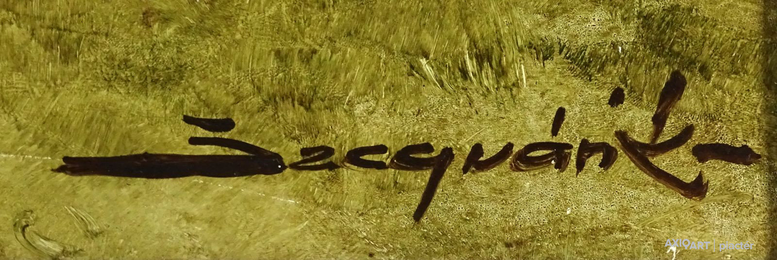 [FK3614/X178] A kép mérete: 50 x 90 cm keret nélkül. Készült: Olaj, Farost A kép Puskás Imre (Szeged, 1933) alkotása. Jelezve jobbra lent "Puskás I." A festmény jó állapotban van. Keret: Ép Hátoldalon autográf írással: 50x90 cm, olaj/farost Puskás Imre Magyar festők és grafikusok életrajzi lexikona I-II. Szeged, 1933 - Festő. A budapesti Iparművészeti Főiskolán végezte tanulmányait 1952-58. Z. Gács György, Rákosi Zoltán, Molnár Béla, Dudás Jenő tanítványa volt. Tanulmányait követően mint textiltervező tevékenykedett másfél évtizeden át. Közben szorgalmasan festette a Szeged környéki falusi, tanyasi világot. 1975 óta szerepel hazai és külhoni kiállításokon (Berlin, Frankfurt, München, New York, Tokió, Prága, Tihany, Veszprém, Miskolc, Nagykanizsa, Szeged, Nyíregyháza, Szombathely, Szolnok, Pécs stb.). Faliszőnyegeket, faliképeket, valamint kötött-anyag és női ruhanemű-terveket alkotott, igazi kifejezőeszköze azonban a festészet, mellyel a '70-es évek óta foglalkozik. Alkotásain a paraszti élet jelenik meg, a tanyasi házak, ezek udvarai, inkább széles ecsetvonásokkal, erős hangulati, érzelmi telítettséggel. (MÉ, Műv. 1971/1) Magyar festők és grafikusok adattára (Szeged, 1933 - ) Mint textiltervező az Iparművészeti Főiskolán tanult és másfél évtizeden át sikeresen dolgozott ezen a pályán. Közben festett is, mert a Szeged-környéki falusi, tanyasi világ táblaképbe kívánkozott. Festőként 1975 óta jelentkezik önálló kiállításokon s képein az alföldi paraszti élet jelenik meg, mindenekelőtt a tanyasi házak, ezek udvarai, többnyire széles ecsetvonásokkal, erős hangulati, érzelmi telítettséggel. Számos külföldi kiállításon szerepelt (Prága, Moszkva, Berlin, Frankfurt, München, New York, Tokió stb.). Egyéni kiállításai: Budapest, 1960, 1961, 1962, 1963, 1965, 1968, 1982, 1983, Tihany, Veszprém 1964, Miskolc, 1976, 1980, Nagykanizsa 1969, Szeged 1970, 1985, 1988, Szombathely 1970, Nyíregyháza 1973, Szolnok 1975, Pécs 1978, Békéscsaba, Bonyhád 1981. - Irod.: P. Sz. T.: Művész életrajzok. Bp. 1985. Magyar festők és grafikusok életrajzi lexikona I-II. Műgyűjtők és kereskedők kézikönyve Szeged, 1933 - Festő, A bp.-i Iparművészeti Főiskolán végezte tanulmányait. Később mint textiltervező dolgozott másfél évtizeden át. Közben festette a Szeged-környéki falusi, tanyasi világot, 1975 óta szerepel hazai és külföldi tárlatokon (Prága, Berlin, Frankfurt, München, New York, Tokio, Tihany, Veszprém, Miskolc, Nagykanizsa, Szeged, Szolnok, Nyíregyháza, Szombathely, Pécs, stb.). Alkotásain a paraszti élet jelenik meg, tanyasi házak, ezek udvarai, többnyire széles ecsetvonásokkal, erős hangulati, érzelmi telítettséggel. (MÉ) Művész életrajzok kortárs magyar képzőművészek Festő, Szeged, 1933 Mint textiltervező az Iparművészeti Főiskolán tanult s másfél évtizeden át sikeresen dolgozott ezen a pályán. Közben festett is, mert a Szeged-környéki falusi, tanyasi világ táblaképbe kívánkozott. Festőként 1975 óta jelentkezik önálló kiállításokon s képein az alföldi paraszti élet jelenik meg, mindenekelőtt a tanyai házak, ezek udvarai, többnyire széles ecsetvonásokkal, erős hangulati, érzelmi telítettséggel. Számos külföldi kiállításon szerepelt, (Prága, Moszkva, Berlin, Frankfurt, München, New York, Tokió stb.). - Egyéni kiállításai: Budapest, 1960, 1961, 1962, 1963, 1965, 1968, 1982, 1983, Tihany, Veszprém 1964, Miskolc 1967, 1980, Nagykanizsa 1969, Szeged, Szombathely 1970, Nyíregyháza 1973, Szolnok 1975, Pécs 1978, Békéscsaba, Bonyhád 1981. Egyéb Puskás Imre festő, textiltervező Születési hely: Szeged Születési dátum: 1933 Mesterei: Z. Gács György, Rákosi Zoltán, Molnár Béla, Dudás Jenő. 1952-58: Magyar Iparművészeti Főiskola (textiltervező szak), mesterei: Z. Gács György, Rákosi Zoltán, Molnár Béla, Dudás Jenő. Pályája első mintegy másfél évtizedében textiltervezéssel foglalkozott. Csőtűs technikával készített, ősi óceániai és kelet-európai motívumokat felhasználó faliszőnyegeket, faliképeket, valamint kötött-anyag és női ruhanemű-terveket alkotott. Igazi kifejezőeszköze azonban a festészet, amellyel a 70-es évek vége óta foglalkozik. Rendszeresen szerepelnek képei a Japánban rendezett csoportos kiállításokon. Képeinek fő témáit a Szeged környéki tanyák házacskáinak ábrázolásai, valamint a Tisza-parti táj sajátos hangulatát megragadó művei adják. Szívesen fest portékat jellegzetes paraszti karakterekről. Egyéni kiállítások 1970 • Képcsarnok, Szeged 1973 • Benczúr Terem, Nyíregyháza 1975 • Aba-Novák Terem, Szolnok 1980 • Szőnyi István Terem, Miskolc 1981 • Művelődési Központ, Bonyhád 1982 • Mednyánszky Terem, Budapest 1983 • Művelődési Ház, Tiszalúc 1984 • Gulácsy Terem, Szeged (leporelló) 1986 • Fórum Hotel Galéria, Budapest 1989 • Művelődési Ház, Veszprém 1993 • Derkovits Terem, Budapest 1997 • Művelődési Ház, Tiszalúc. Válogatott csoportos kiállítások 1959 • 4. Országos Iparművészeti Kiállítás, Műcsarnok, Budapest 1961 • Az Iparművészeti Vállalat Komplex Stúdiójának I. Textil Kiállítása, Csók István Galéria 1967 • A Kör iparművész csoport kiállítása, Szőnyi István Terem, Miskolc 1968 • Textil falikép, Ernst Múzeum, Budapest • A Kör iparművész csoport kiállítása, Ferencvárosi Pincetárlat, Budapest 1970 • I. Fal- és Tértextil Biennálé, Savaria Múzeum, Szombathely 1972 • Textil- és Ötvösbemutató, Csontváry Terem, Budapest 1976-1979 • Tokió 1982 • Kobe • Kiotó • Oita (JP) 1998 • Tokió. Irodalom KOCZOGH Á.: ~, Művészet, 1971/1. CSORBA M.: ~ festőművész kiállítása, Pesti Műsor, 1980. március 19. Gyulai Gergely 1993 • Der