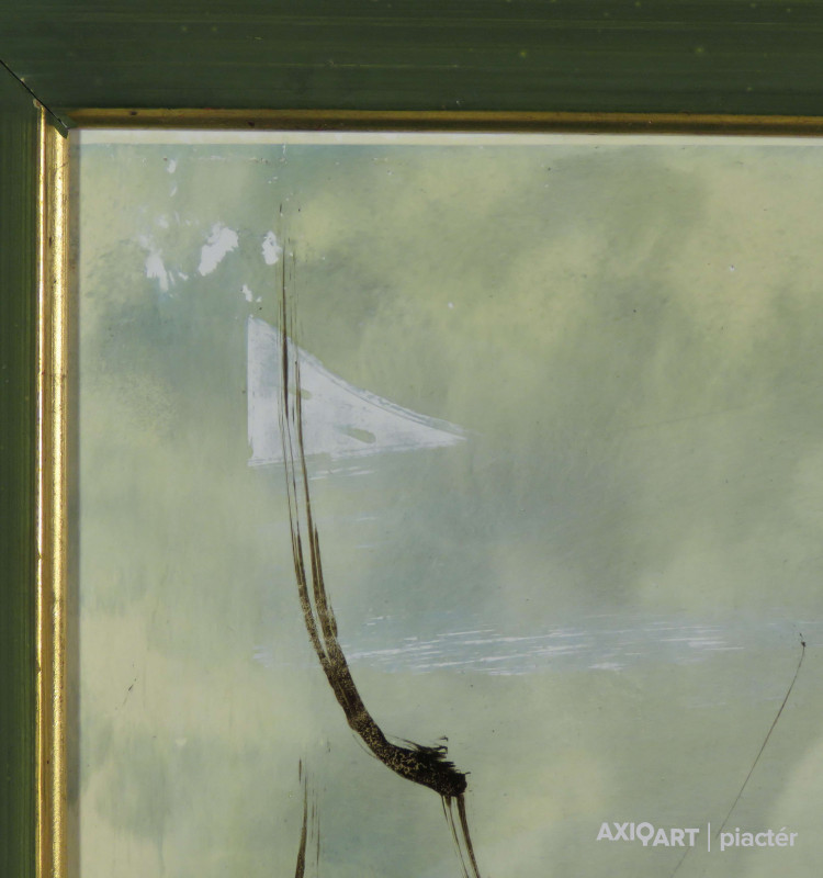 [FKD049/Bp9/42] A kép mérete: 73 x 102 cm keret nélkül. Készült: Akrill, Papír A kép Vinkler László (Szabadka, 1912, Szeged, 1980) alkotása. Jelezve jobbra lent "Vinkler László" A festmény jó állapotban van. Keret: Ép Magyar festők és grafikusok életrajzi lexikona I-II. Festő. Tanulmányait Lápossy-Hegedűs Géza irányításával kezdte. A budapesti Képzőművészeti Főiskolán Glatz Oszkár és Karlovszky Bertalan tanítványa volt. 1935-ben diplomázott. 1933-ban a főiskola jubileumi tárlatán a "Nagymamám" című alkotásával elnyerte a Balló-díjat. 1935-1936-ban római ösztöndíjas volt, és a Collegium Hungaricum-ban töltött nyolc hónapot. Szorgalmasan dolgozott, közben tanulmányokat folytatott az Accademia delle Belle Arti freskó-osztályán, Ferazzi irányítása mellett. Az itt készült "Maria Surigia" című képmását 1936-ban a Collegium Hungaricum kiállításán mutatta be, amelyet az olasz állam vásárolt meg. A "Római szobrásznő" című képe 1937-ben elnyerte a Jellinek-díjat. Az alkotás jelenleg a Magyar Nemzeti Galéria tulajdona. Számos kelet- és nyugat-európai országban járt tanulmányúton. 1931-től szerepelt hazai és külföldi bemutatókon. Egyéni kiállításai voltak Szegeden (1942, 1958, 1963, 1972), az Ernst Múzeumban (1959), Olaszországban (1961), Jugoszláviában (1968). Nagyobb anyaggal szerepelt a szegedi művészek 1967-es Magyar Nemzeti Galéria-béli kiállításán. 1932-ben Balló-díjat, 1937-ben Fényes Adolf-díjat kapott, 1972-ben Szeged város alkotói-díját, 1979-ben a Szegedi Nyári Tárlat díját nyerte el. Éveken keresztül (tizenöt év megszakítással) a szegedi Tanárképző Főiskola rajzi tanszékének vezetőjeként működött. Korábban protréfestőként volt ismeretes. Karlovszky mellett a rajz kultuszára és a csendéleti formalátásra kapott indíttatásokat, később Glatz hatott rá, így a rajzos analizálás helyett a művész a szélesebb festőiségre tért át. A naturalizmussal elvi szakítást jelentő harmadik stílusát a novocento jelképes, színesen dekoratív szellemében alakította ki. Jeles grafikus volt. Több irodalmi művet illusztrált. Monumentális feladatokkal is foglalkozott (freskók a Petőfi-telepi templomban stb.). 1957-ben a városban végzett művészi tevékenysége elismerésül a szegedi Collegium Artium Képzőművészeti tagozata vezetőjévé választotta. Műveinek jelentős részét a szegedi Móra F. Múzeum őrzi. (PZ-SzMF,D.E.: Műv. 1927/6, ML, Sz.Z.: Műv. 1973/1, Műv. 1982/10. D.F.Zs.: Műv. 1973/8.) Magyar festők és grafikusok életrajzi lexikona I-II. Műgyűjtők és kereskedők kézikönyve Festő. Tanulmányait Lápossy-Hegedűs Géza irányításával kezdte. A budapesti Képzőművészeti Főiskolán Glatz Oszkár és Karlovszky Bertalan tanítványa volt. 1931 óta kiállító művész. 1933-ban a főiskola jubileumi kiállításán a "Nagymamám" c. festményével elnyerte a Balló-díjat. 1935-36-ban római ösztöndíjas volt. Az Accademia della Bella Arti freskó-osztályán, Ferazzi mester mellett folytatott tanulmányokat. Az itt készült "Maria Surigia" c. portréját 1936-ban a Collegium Hungaricum kiállításán mutatta be, amelyet az olasz állam vásárolt meg. A "Római szobrásznő" c. képe 1937-ben elnyerte a Jellinek-díjat. A mű a MNG tulajdona. Több kelet- és nyugat-európai országban járt tanulmányúton. Egyéni kiállításai voltak Szegeden (1942, 1958, 1963, 1972), az Ernst Múzeumban (1959), Olaszországban (1961), Jugoszláviában (1968). Nagyobb anyaggal szerepelt a szegedi művészek 1967-es MNG-beli kiállításán. 1937-ben Fényes Adolf-díjat, 1972-ben elnyerte Szeged város alkotói-díját, 1979-ben a Szegedi Nyári Tárlat díját. Ezen kívül művészpedagógusi és alkotói tevékenysége elismeréseként még számos kitüntetéssel és díjjal jutalmazták. Hosszabb ideig a szegedi Tanárképző Főiskola rajztanszékének vezetőjeként tevékenykedett. Korábban arcképfestőként volt ismeretes. Karlovszky mellett a rajz kultuszára és a csendéleti formalátásra kapott indíttatásokat, később Glatz Oszkár hatott rá és a rajzos analizálás helyett a szélesebb festőiségre tért át. A naturalizmussal elvi szakítást jelentő harmadik stílusát a novocento jelképes, színesen dekoratív szellemében alakította ki. Jeles grafikus volt. Számos irodalmi művet illusztrált. Monumentális feladatokkal is foglalkozott. (freskók a Petőfi-telepi templomban, stb). (PZ-SzMF,ML,Sz.Z.: Műv.-1982/10) Magyar festők és grafikusok adattára Művészeti tanulmányait Lápossy-Hegedűs Géza irányításával kezdte, majd a Képzőművészeti Főiskolán Karlovszky Bertalan és Glatz Oszkár növendékeként fejezte be 1935-ben. 1931 óta kiállító művész. 1933-ban a főiskola jubileumi kiállításán a Nagymamám c. festményével elnyerte a Balló-díjat. A diploma megszerzését követően 1935-1936-ban római ösztöndíjas. Az itt készült Maria Surigia c. portréját az olasz állam megvásárolta. A Római szobrásznő c. képe 1937-ben elnyerte a Jellinek-díjat, s amelyet ma az MNG őriz. Számos kelet- és nyugat-európai országban megfordult tanulmányúton. Egyéni kiállításai voltak Szegeden (1942, 1958, 1963, 1968, 1972), az Ernst Múzeumban (1959) és Dunaújvárosban (1977), illetve külföldön Olaszországban (1961) és Jugoszláviában (1968). Nagyobb anyaggal szerepelt a szegedi művészek 1967-ben MNG-beli bemutatóján. 1972-ben elnyerte Szeged város alkotói díját és 1979-ben a Szegedi Nyári Tárlat díját. Hosszabb időt töltött a Szegedi Tanárképző Főiskola rajztanszékének élén. Emlékkiállítását 1982-ben a szegedi Móra Ferenc Képtárban és a MNG-ban rendezték meg. Karlovszky mellett a rajz kultuszára és a csöndéleti formalátásra kapott indíttatásokat, később Glatz hatott rá és a rajzos anal