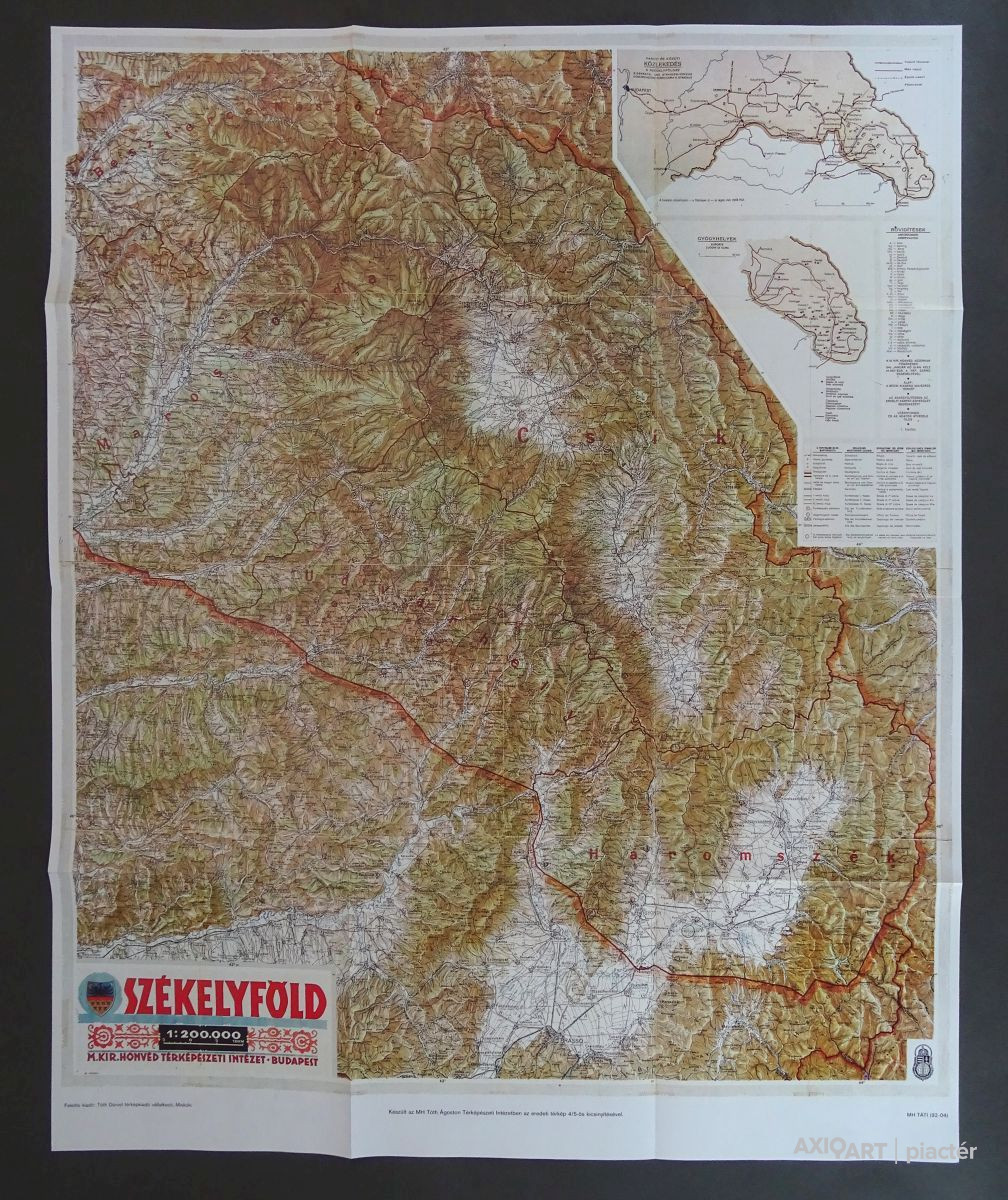 [1R072/143] Szép állapotú hajtogatott térkép reprint. Feliratok: SZÉKELYFÖLD TÉRKÉPE MAGYAR KIRÁLYI HONVÉD TÉRKÉPÉSZETI INTÉZET 1:200.000 KÉSZÜLT AZ MH TÓTH ÁGOSTON TÉRKÉPÉSZETI INTÉZETBEN AZ EREDETI TÉRKÉP 4/5-ÖS KICSINYÍTÉSÉVEL. Szélesség: 67 cm Hosszúság: 83 cm Súly: 0.065 kg
