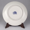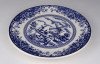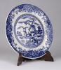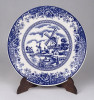 Jelzett japán fajansz tányér, dísztányér. Kék-fehér szélmalmos tájkép díszítéssel.