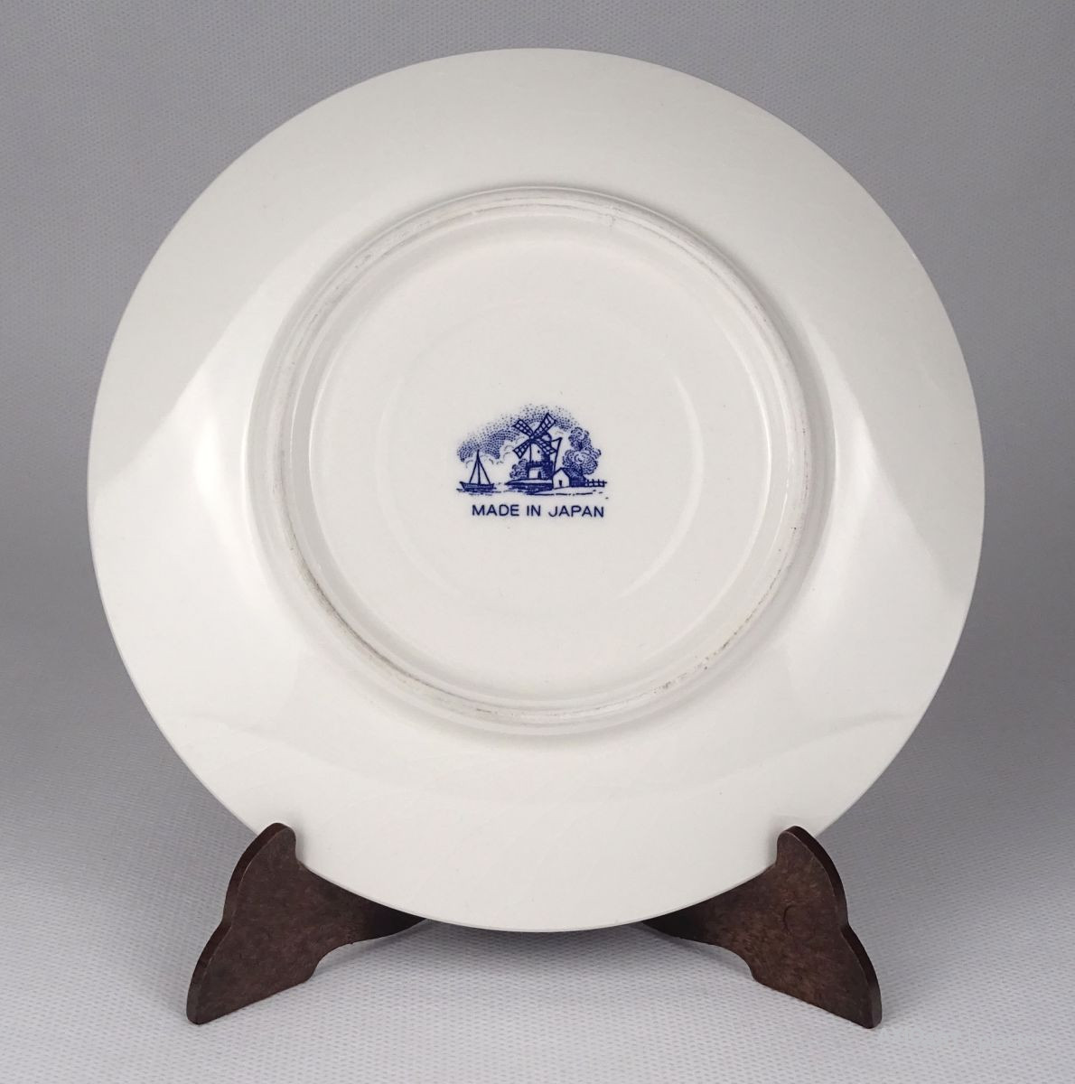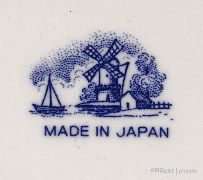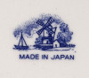 [1R177/X118] 25% ÁRENGEDMÉNY MINDEN TERMÉKÜNKRE Dec. 14-ig Jelzett japán fajansz tányér, dísztányér. Kék-fehér szélmalmos tájkép díszítéssel. Alján jelzés: MADE IN JAPAN Szélesség: 15.5 cm Súly: 0.16 kg