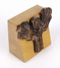Szép állapotú bronz kisplasztika fa talapzaton.