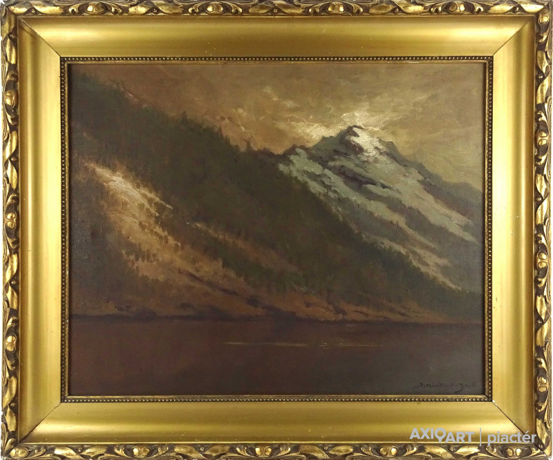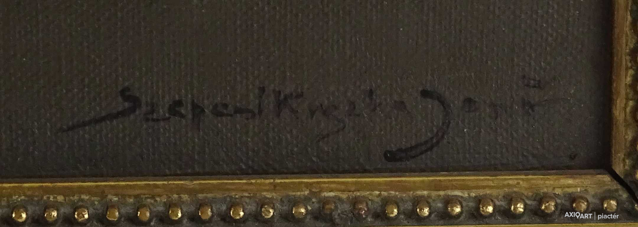 [1Y109/Z031] Olaj vászon festmény, szép állapotú aranyozott keretben. Azonnal falra akasztható, szép állapotban van. Jelzés jobbra lent: SZEPESI KUSZKA JENŐ Magasság: 54.5 cm Szélesség: 65 cm Súly: 2.635 kg Szepesi Kuszka Jenő Igló, 1885 - 1948 Festő. A budapesti Iparművészeti Iskolában tanult. Később Mednyánszky László volt mestere, képein erős Mednyánszky-hatás látható. Európa több országában járt tanulmányúton. Sokat dolgozott a Felvidéken, a Tátrában. 1906-tól kiállító művész, Budapesten a Műcsarnokban állított ki. Több vidéki városban is bemutatta alkotásait. Forrás: kieselbach.hu