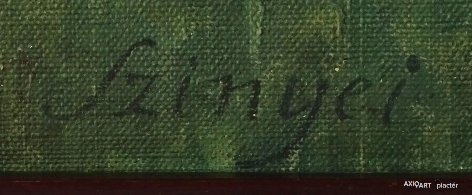[1Y029/Z018] Olaj farost festmény, üveglap mögött, hibátlan képcsarnokos keretben. Hátoldalán Képcsarnok Vállalat papír címkéje: A művész neve: SCHÉNER MIHÁLY A kép címe: TÁJ Magasság: 66.5 cm Szélesség: 86 cm Súly: 6.54 kg Schéner Mihály festő, grafikus, szobrász, keramikus, bábtervező Medgyesegyháza, 1923-01-9 Elhalálozott: Budapest, 2009. május 11. Honlap: http://www.kormendigaleria.hu/kiadvany.html 1942-1947: Magyar Képzőművészeti Főiskola, tanára: Rudnay Gyula. 1978: Munkácsy-díj; 1984: érdemes művész; 1989: kiváló művész; 1995: Kossuth-díj. 1992-től a Magyar Művészeti Akadémia, 1993-tól a Széchenyi Irodalmi és Művészeti Akadémia tagja. 1956-ig tanított. 1982: Nagyatádi Faszobrász Alkotótelep, 1985: Nemzetközi Acélszobrász Alkotótelep, Dunaújváros. A stílusában felismerhető, mégis sokféle műtárgyat létrehozó ~ gazdag, állandóan alakuló életműve a folyton változó világban helyét kereső, az alkotói szabadságot megvalósító XX. századi képzőművész példázata lehetne. Magát expresszív-szürrealista alkotónak nevezi. Egyaránt dolgozik festékkel, textillel, fával, fémmel. Rajzol, szerkeszt, farag, épít, gyúr, varr és ragaszt, felhasználja a mézesbábok öntőformáit. Festő, rajzoló, textilszobor- és bábkészítő, fazekas, asztalos, esztergályos. Háromlépcsős folyamatban gondolkozik: rajzban tervez, majd fest, szobrot készít, “formába önt”, mindig a végső plasztikai megoldást keresi. Ami állandó és mégis játékosan változékony megjelenésű Schéner művészetében, az a gyermekkori emlékek által meghatározott népi mesterségek iránti tiszteletet kifejező motívumkincs, a tárgyi folklór formakészlete, amely már-már kézjegyként ismétlődik munkáin. Mitologikussá nőtt képzelete új lényeket teremt, pl: a Pigulát, amely disznótestű, emberfejű teremtmény. Schéner festményein a szürrealista motívumokat konstruktív szerkezetbe rendezi, a geometriát és az organikus természeti motívumokat egyaránt beépíti műveibe. A népi, népművészeti formakincsből merített lovas huszárok, betyárok, szegénylegények cifra szűr mentéje, piros csákója, fekete csizmája, az önálló életet élő zsinórdíszek és mézeskalács bábok, a kiskocsik a gyermekkori vásárok, búcsúk színes forgatagába vezet. A primér motívumokat aztán felváltják a vastagon felhordott felületbe karcolt jelek, vonalhálózatok, amelyek a játszó gyermek homokba rajzolt ábráit, a pásztorember fába vésett üzeneteit, az ősember barlang falába rótt mágikus jeleneteit idézik meg. A művész pillanatnyi érdeklődésének megfelelően a színek búvópatakként tűnnek el és jelennek meg ismét. A 60-as években leginkább a formákkal való játék érdekelte, a festmények felülete egyre gazdagodott: a táblaképek felületén applikációk jelentek meg, vagy lemállasztott rétegek hagyták maguk után hiányukat, motívumok nélküli ősformák, archetipikus képzetek bukkantak fel művészetében. A véletlenszerűnek látszó rétegekkel való játék azonban tudatos komponálás eredménye, amely később nyilvánvaló ritmusnak és formai szerkesztettségnek adja át a helyét, mint a Törvénytáblák c. sorozaton. A különböző művészi kifejezési formák egymásra termékenyítő hatással vannak, át- meg áthatják egymást. Textilszobrai, amelyekkel új műfajt teremtett, ugyanazzal az automatikus, expresszív-szürrealista módszerrel készülnek, mint festményei. A hagyományosan a népművészetben alkalmazott anyag, a filc lehetőséget ad a népi formakincs felelevenítésére, amely azonban a művész különös szürrealista átiratában jelenik meg. A szívekkel kivarrt, zsinórdíszes Posztókotlós c. művén mézesbábok lógnak, hátán huszárok lovagolnak. Egész sor textilből készült kéz-plasztikát alkot, amelyeket az ujjakra rávarrt díszekkel öltöztet, személyesít meg. A színes-különös világból aztán ~ újra puritán képi és formai rendbe juttatja el a nézőt, majd nemsokára tépett, gyűrt, vágott, csorgatott, repedezni hagyott szenvedélyesen vonagló képi felületeket hagy hátra. Schéner készített apró gyermekjátékokat, térstruktúra-tereket, mászókákat is. A magyar népi formák mellett szürreális játékaiban gyakran alkalmaz görög mitológiai alakokat, “elkentaurosodott” lovakat, Gorgó-fejeket, sellőket, hárpiákat, Pán-ábrázolásokat. Schéner nemcsak saját művészetéről publikál, hanem művésztársairól is számos írása jelenik meg, elsősorban az Új Auróra c. folyóiratban, amelynek egy ideig főmunkatársa volt. Irodalom kiállítása, Magyar Építőművészet, 1962/4. Húsz év után, Művészet, 1965/4. BOZÓKY M.: ~, Tiszatáj, 1968/5. PERNECZKY G.: Nincs uborkaszezon, Élet és Irodalom, 1969. augusztus 8. BARÁNSZKY-JÓB L.: ~, Művészet, 1969/9. LÁSZLÓ GY.: ~ kaposvári kiállítása, Jelenkor, 1969/4. MAJOR M.: Pásztorok, betyárok, huszárok - kezek, Tükör, 1970. szeptember 15. FRANK J.: Bemutatjuk ~t, Élet és Irodalom, 1972. május 6. ról kiállítása ürügyén, Képzőművészeti Almanach, Budapest, 1972 Sötétkék kokasok, Élet és Irodalom, 1973. szeptember 9. MAJOR M.: ~ játékai, Élet és Irodalom, 1974. július 27. BARTA J.: Egy különös művész, Alföld, 1974/6. VADAS J.: Szárnykészítők, Élet és Irodalom, 1975. október 4. JUHÁSZ F.: A halál ellen játszani, Élet és Irodalom, 1975. május 17. PAP G.: Kincsek és műkincsek, Művészet, 1975/6. P. SZŰCS J.: Az utak kettéválnak, Művészet, 1978/3. Békési művészet, Művészet, 1978/7. SZAMOSI F.: ~ [kismonográfia], Budapest, 1978 VADAS J.: Játék a játékkal, Élet és Irodalom, 1979. augusztus 18. NÉMETH L.: ~ műveiről, Művészet, 1979/4. MIKLÓS P.: Mit akar ez a múzeum?, Művésze