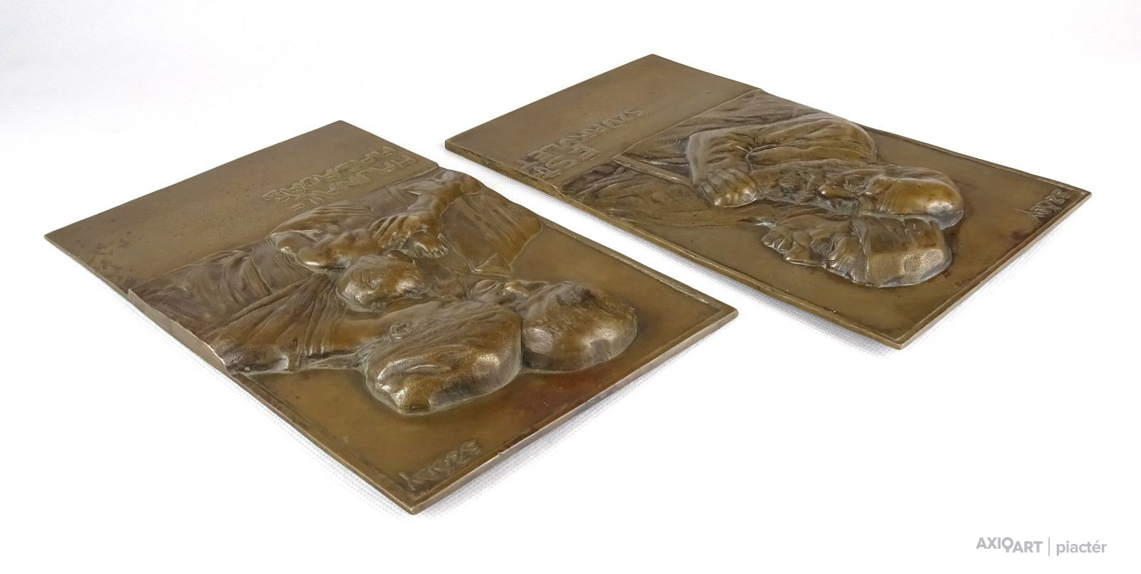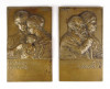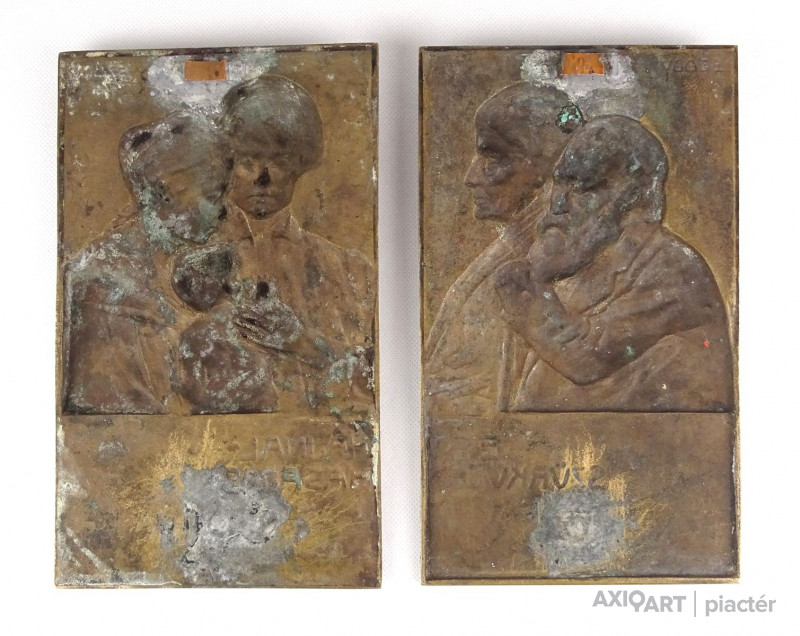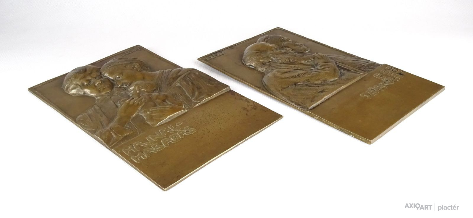 Régi, kettő darab azonos méretű, jelzett, feliratos bronz relief. Falra akasztási lehetőségekkel rendelkeznek.