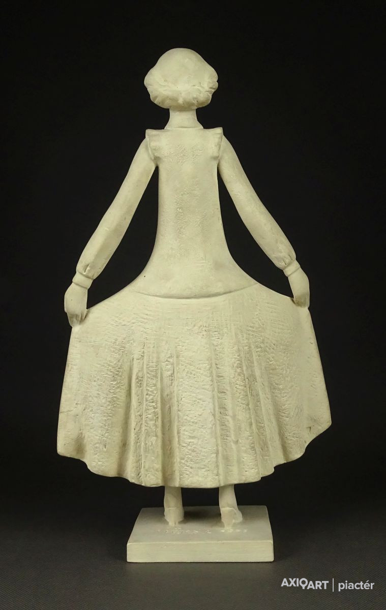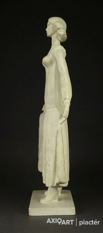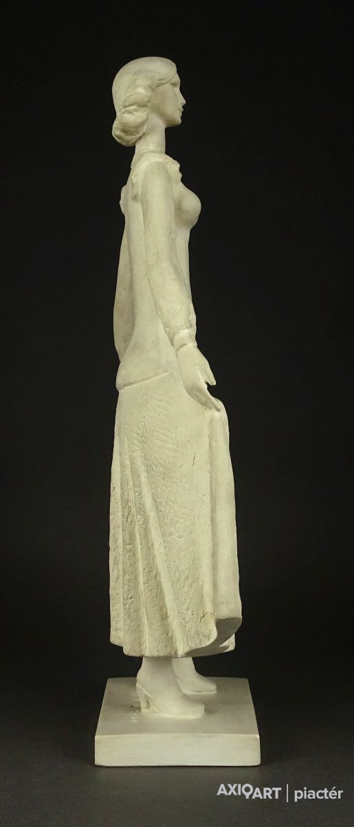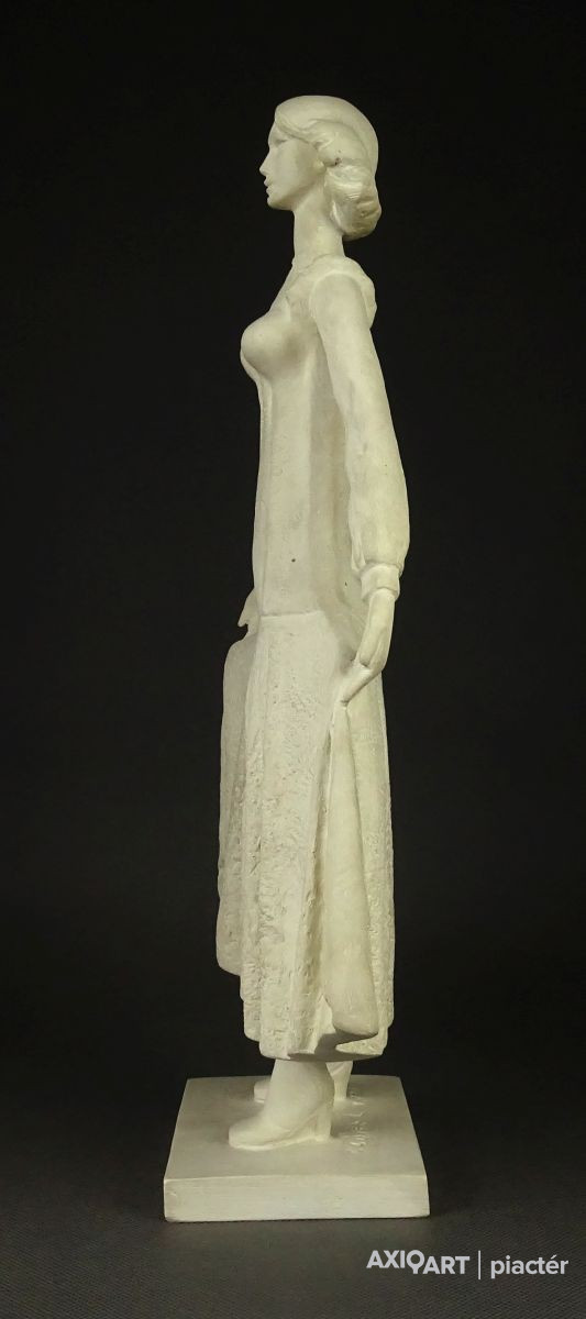 Hibátlan állapotú, talapzaton álló jelzett szobor. Fiatal lány kisplasztika.