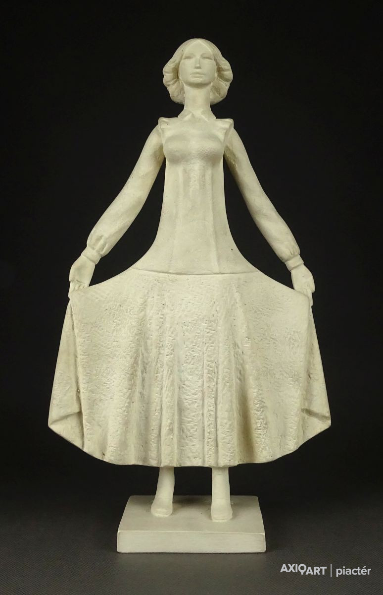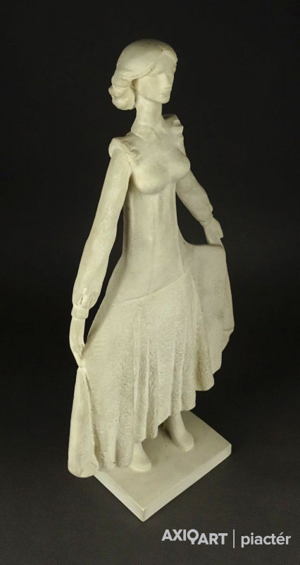 [1K576/UZ-K] Hibátlan állapotú, talapzaton álló jelzett szobor. Fiatal lány kisplasztika. Talapzaton jelzés: SZŐKE L. 1979 Alján képcsarnokos zsűricímke, rajta felirat: KÉPCSARNOK SZŐKE LAJOS ELSŐ BÁLOZÓ ZSŰRISZÁMA: KCS/SZ 14127185 Alatta mélynyomással: POLIKON Magasság: 35.5 cm Szélesség: 20 cm Súly: 1.895 kg Szőke Lajos szobrász Nagykónyi, 1912-06-21 Szerző: Szolláth György 1931-35: Iparművészeti Iskola, díszítőszobrász szak, mesterei: Ohmann Béla, Lux Elek, Fülöp Elemér. Tanulmányúton járt Ausztriában, Svájcban, Olaszországban, Franciaországban, Romániában és Bulgáriában. 1936-tól kiállító művész. Válogatott csoportos kiállítások Válogatott csoportos kiállítások 1978 • Magyar szobrászat, Műcsarnok, Budapest. Művek közgyűjteményekben Művek közgyűjteményekben Forrás: artportal.hu