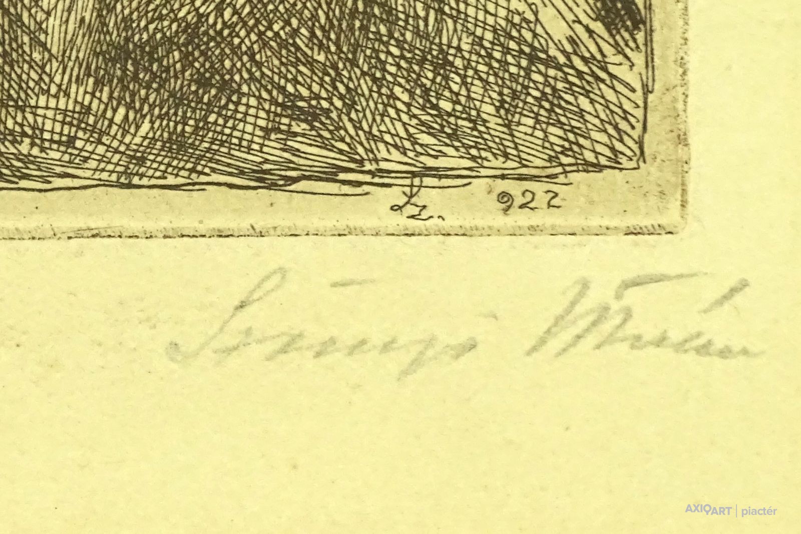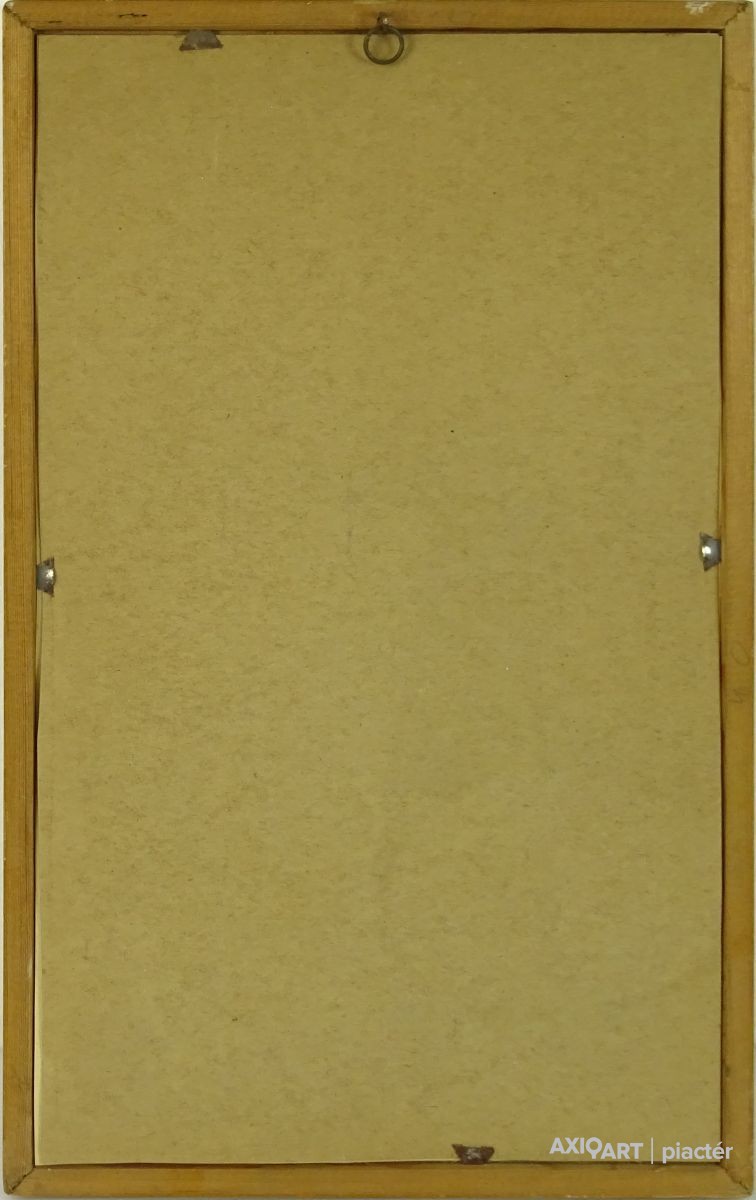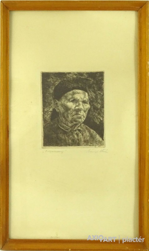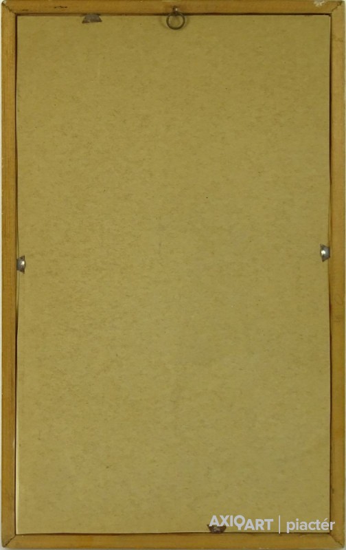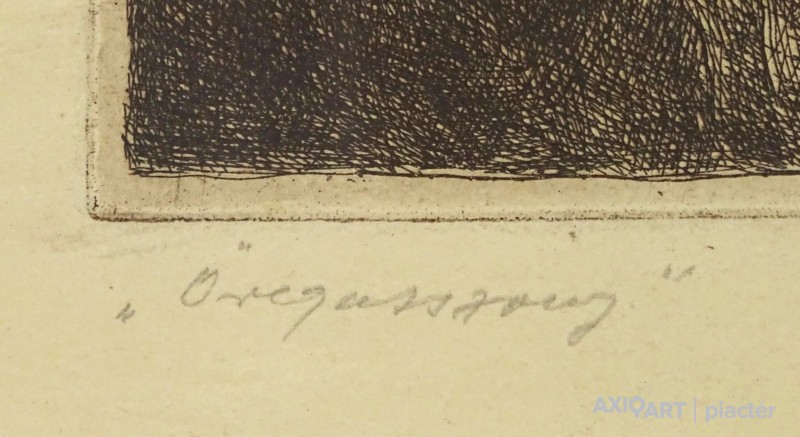 Jelzett rézkarc, keretben, üveglap mögött.