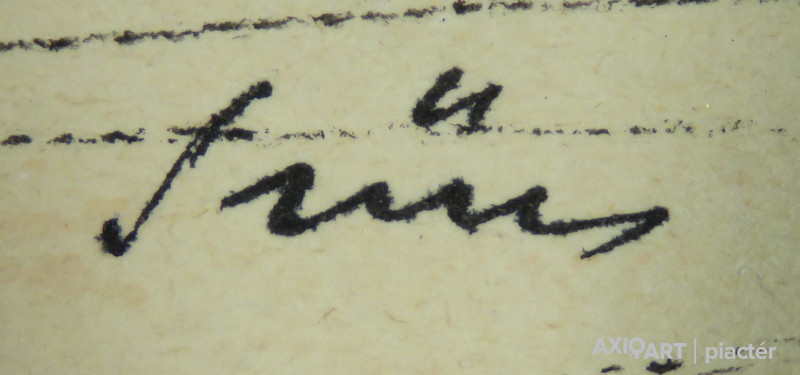 [FKC285/Bp92/43] A kép mérete: 69 x 97 cm keret nélkül. Készült: kréta, pasztell, akvarell, grafit, Papír A kép Lóránt János Demeter (Békésszentandrás, 1938) alkotása. Jelezve jobbra lent "Lóránt J. 85" A festmény jó állapotban van. Keret: Új A festmény hátoldalán autográf írással: "Loránt János Őszi hangulat vegyes, 70X100" Magyar festők és grafikusok életrajzi lexikona I-II. Festő és grafikus. 1956-59 között a szegedi Tanárképző Főiskolán Vinkler László növendékeként szerzett rajztanári oklevelet. Tanulmányúton járt több európai országban (Svájc, Olaszország, Délkelet-Franciaország, Hollandia). 1973-ban a Havannai Művészeti Akadémián tanult. 1962 óta szerepel hazai és külföldi tárlatokon. (Csók Galéria, Derkovits Terem, Műcsarnok, Debrecen, Miskolc, Eger, Békéscsaba, Pécs, Sopron, Győr, Hódmezővásárhely, Kaposvár, Szeged, Békésszentandrás, Pozsony, Besztercebánya, Kassel, Berlin, Lipcse, Bécs, Bázel, Zürich, Linz, Velence, Capri, London, Sao Paulo, Havanna, Krakkó, Delhi). Több nemzetközi alkotótelep résztvevője (Krakkó, Bácska-Topolya). Tagja a Magyar Művészeti Műhelynek, a Magyar Festők Társaságának és a Magyar Vízfestők Társaságának. 1987-ig Egerben tanított a főiskolán. Mezőtúron él. Díjak: 1968-71 között Derkovits-ösztöndíj; SZOT-díj; Munkácsy-díj; Rippl-Rónai-díj; Egry-díj; Munkácsy-emlékérem; a krakkói Nemzetközi Művésztelep elismerő diplomája; a Szegedi Nyári Tárlat nívódíja; Háborúellenes kiállítás II. díja, Lublin; a Nemzetközi Fametszet Biennálé diplomája, Capri; a kassai Festészeti Biennále nagydíja; az egri Akvarell Biennále díja; a Miskolci Grafikai Biennále díja; Tornyai-plakett, Érdemes Művész. Lóránt első korszakában impresszionisztikus beszámolókat készített közvetlen környezetéről, a vízpartot benépesítő madarakról. Ezután következett a Kőrös árterében időző barna korszaka, később, 1966-ban, amikor Salgótarjánba költözött, festészetében expresszív törekvések kezdtek érvényesülni. Látszólag megelégszik a hazai táj, valamint az emberi figura minimálisra redukált formai motívumaival, puritán színeivel. A fa- és linómetszés művelője, de grafikája minden műfajt ural. Rajzai igen plasztikusak. Számos irodalmi műhöz készített illusztrációkat (Móricz, Faulkner). Több monumentális alkotás fűződik a nevéhez. Munkáit őrzi a leideni (NL) Egyetemi Klinika Gyűjteménye, a kassai Kelet-szlovákiai Múzeum, a lublini múzeum, az aacheni Ludwig Gyűjtemény, a Magyar Nemzeti Galéria, a szegedi Móra Ferenc Múzeum, stb. (L. M.: Műv. 1970/7, MÉ, Szuromi Pál, N.M.K.: Műv. 1976/5, Új Műv. 1993/1) Magyar festők és grafikusok életrajzi lexikona I-II. Műgyűjtők és kereskedők kézikönyve Festő és grafikus. A szegedi Tanárképző Főiskolán Vinkler László tanítványaként szerzett rajztanári oklevelet. Tanulmányúton járt több európai országban. 1962 óta szerepel hazai és külföldi tárlatokon (Budapest, Csók Galéria, Miskolc, Eger, Békéscsaba, Pécs, Sopron, Győr, Hódmezővásárhely, Kaposvár, Lengyelország, Csehszlovákia, Jugoszlávia, stb.). 1968-1971 között Derkovits-ösztöndíjat, 1971-ben SzOT-díjat, 1972-ben Munkácsy-díjat, 1962-ben Rippl-Rónai-díjat, 1968-ban Egry-díjat, 1971-ben Munkácsy-emlékérmet kapott. Díjat kapott a Moszkvai Biennálén és a Banska-Bystrica-i fametszet kiállitáson. 1988-ban érdemes művész kitüntető elismerésben részesült. Első korszakában impresszionisztikus beszámolókat készített közvetlen környezetéről, vízpartot benépesítő madarakról. Ezután következett a Kőrös ártérben időző barna korszaka. 1966-ban, amikor Salgótarjánba költözött, művészetében expresszív törekvések kezdtek érvényesülni. Látszólag megelégszik a hazai táj és az emberi alak minimálisra redukált formai motívumaival, puritán színeivel. A fa- és linómetszés művelője, de grafikája minden műfajt ural. Rajzai igen plasztikusak. Számos irodalmi műhöz készített illusztrációkat (Móricz, Faulkner). (L.M.: Műv.-1970/7, MÉ, N.M.K.: Műv-1976/5) Magyar festők és grafikusok adattára 1959-ben kapott rajztanári diplomát a Szegedi Tanárképző Főiskolán Vinkler László növendékeként. Tanulmányutakat tett több európai országban. 1959-1966-ig Kaposvárott, azóta Salgótarjában él. 1962 óta szerepel a hazai tárlatokon és a magyar művészet külföldi bemutatóin. Egyéni kiállítása 1962-ben Kaposvárott, 1968-ban Nagybátonyban, 1969-ben Miskolcon, 1970-ben Budapesten, 1972-ben Pécsett, Győrött, Békéscsabán, Hódmezővásárhelyen és Sopronban, 1973-ban Egerben, 1974-ben Szegeden és a budapesti Csók Galériában, 1975-ben Békésszentandráson, 1976-ban Salgótarjánban volt. Egyéni kiállítással mutatkozott be Lengyelországban, Jugoszláviában és Csehszlovákiában. 1968-1971-ben Derkovits-ösztöndíjat, 1971-ben SZOT-díjat, 1972-ben Munkácsy-díjat kapott. A Rippl-Rónai-díj (1962), az Egri József-díj (1968), a Munkácsy-emlékérem (1971) tulajdonosa, az Egri Akvarell Biennálé (1972) díjnyertese. Nemzetközi díjat kapott a Moszkvai Biennálén, a besztercebányai fametszetkiállításon, oklevelet a szocialista országok festőinek Szófiai Triennáléján (1976). 1988-ban érdemes művész kitüntető elismerésben részesült. Művészetében expresszív törekvések érvényesülnek. Látszólag megelégszik a hazai táj, valamint az emberi figura minimálisra redukált formai motívumaival, puritán színeivel. A fa- és linómetszés művelője. - Irod.: Menyhárt László: Vihar elött. Beszélgetés Lóránt Jánossal. Művészet, 1982. 9.: Szabó Ervin: Lóránt János kiállítása. Művészet, 1984. 4.: P. Sz. T.: Művész életrajzok, Bp., 1985. Művész életrajzok kortárs magyar képzőmű
