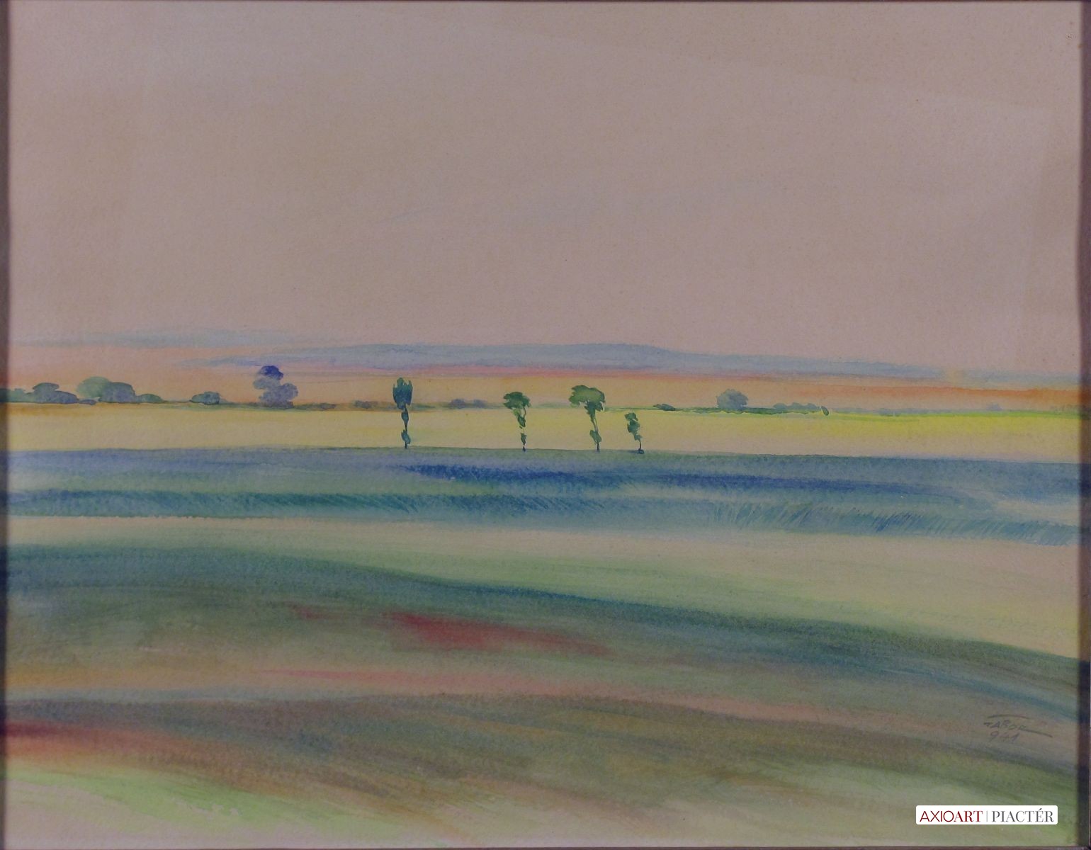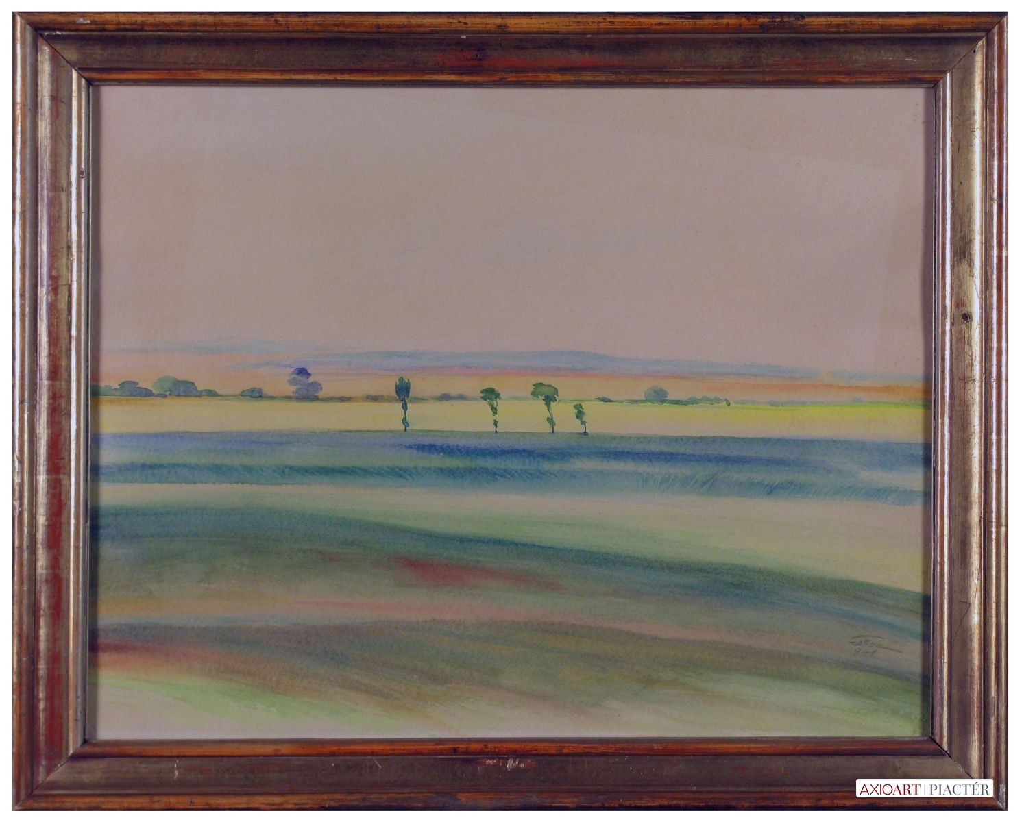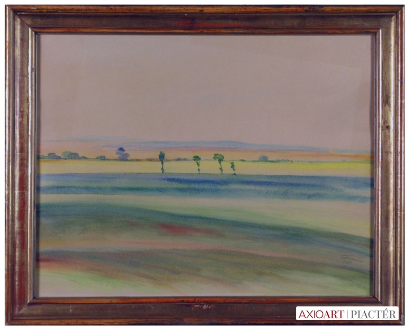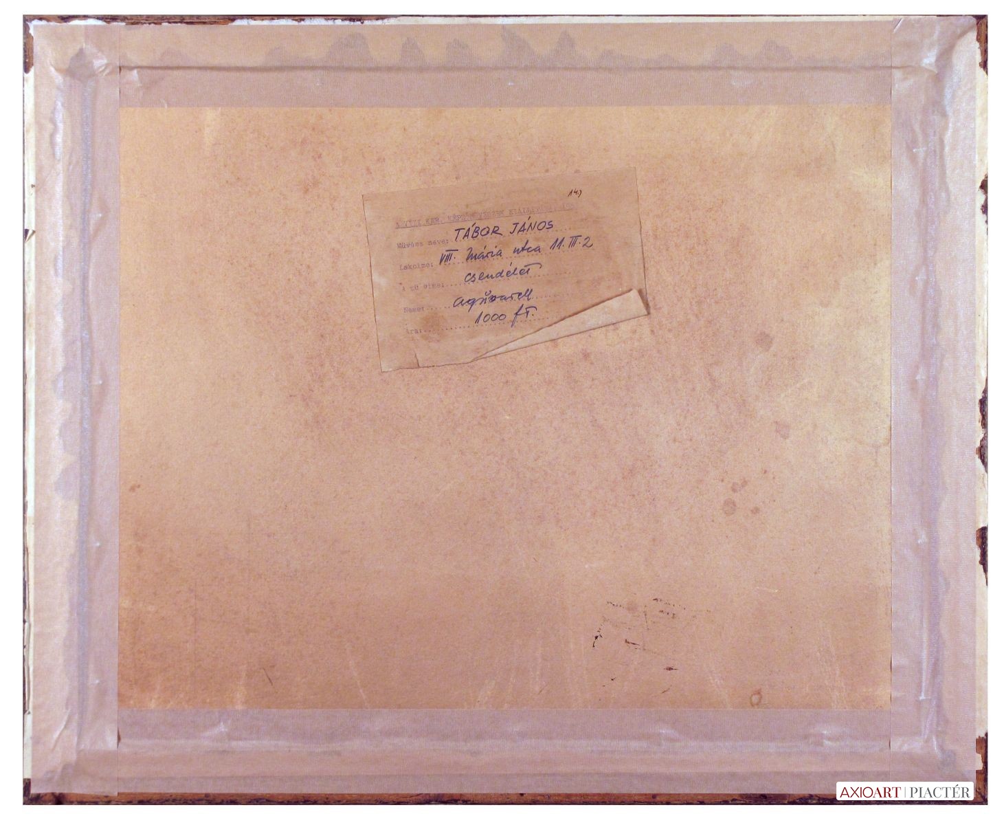 [FKA293/Bp64/16] A kép mérete: 40 x 50 cm keret nélkül. Készült: Akvarell, Papír A kép Tábor János alkotása. Jelezve jobbra lent "Tábor 941" A festmény jó állapotban van. Keret: Ép Magyar festők és grafikusok életrajzi lexikona I-II. Festő és grafikus. Budapesten végezte művészeti tanulmányait, itt is működött. 1913-tól állított ki alakos műveket, csendéleteket és grafikai műveket budapesti tárlatokon. 1924-től a Magyar Grafika című folyóirat munkatársaként dolgozott. Modern felfogású címlapokat és szedéspéldákat tervezett. Aktív tagja volt a Spirituális Művészek Szövetségének. (Éber) Magyar festők és grafikusok életrajzi lexikona I-II. Műgyűjtők és kereskedők kézikönyve Festő, grafikus. Budapesten végezte tanulmányait, itt is működött. 1913-tól állított ki figurális műveket, csendéleteket és grafikai munkákat fővárosi kiállításokon. 1924-től a Magyar Grafika c. folyóirat munkatársaként dolgozott. Modern felfogású címlapokat és szedéspéldákat tervezett. Tagja volt a Spirituális Művészek Szövetségének. (Éber) Magyar festők és grafikusok adattára Festő és grafikus Budapesten, ahol tanulmányait is végezte. 1913 óta állít ki figurális képeket, csöndéleteket és grafikai munkákat a fővárosi tárlatokon. 1924 óta évekig munkatársa a Magyar Grafika c. folyóiratnak, amelybe modern fölfogású címlapokat és szedéspéldákat tervezett. Tagja a Spirituális Művészek Szövetségének. – MTA