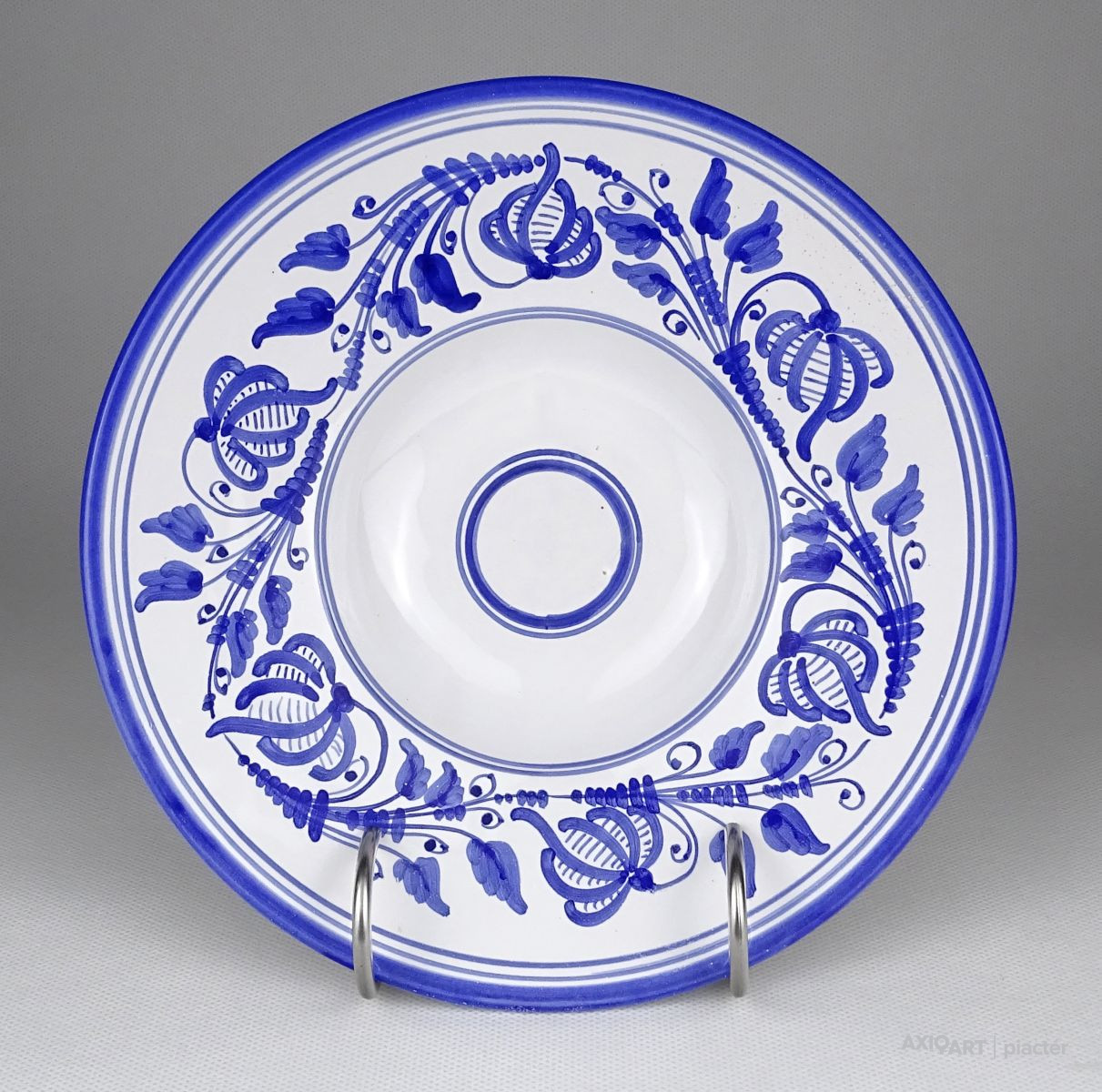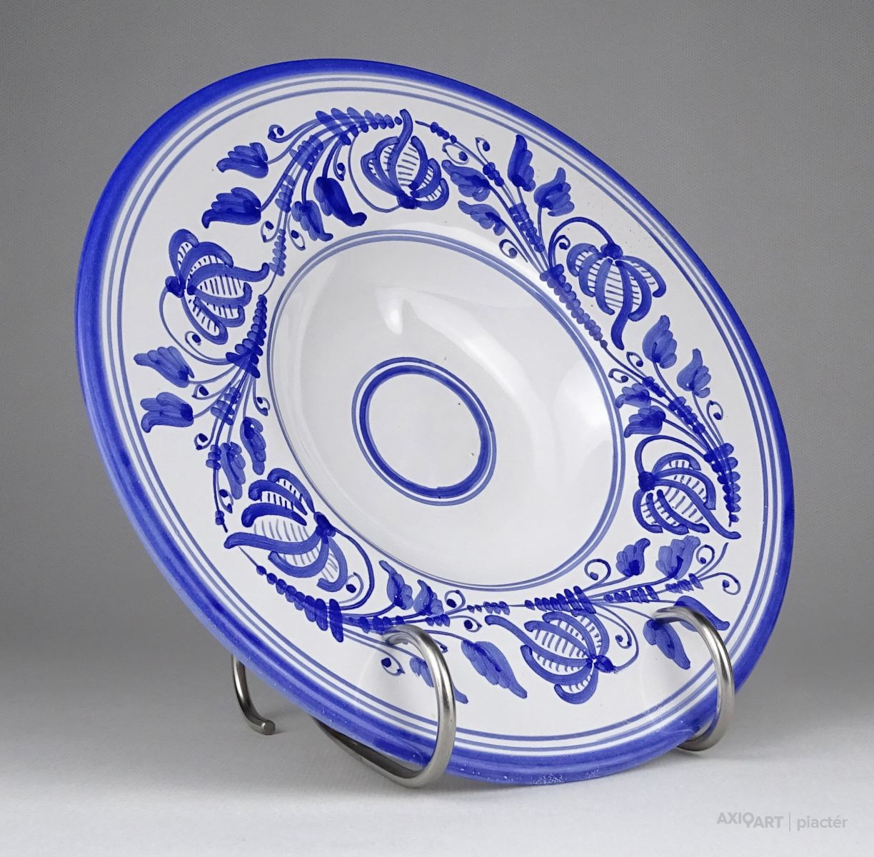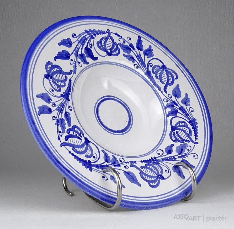Gyönyörű habán kézi festésű motívumokkal díszített népi motívumos kerámia fali tányér. Akasztási lehetőséggel rendelkezik.