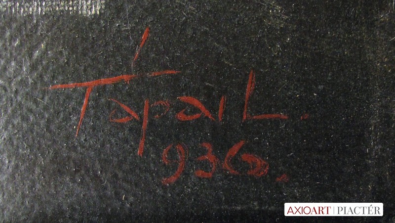 [FK3420/Z006] A kép mérete: 70 x 100 cm keret nélkül. Készült: Olaj, Karton A kép Tápay Lajos (Szeged, 1900, Szeged, 1964) alkotása. Jelezve jobbra lent "Tápai L. 936" A festmény jó állapotban van. Keret: Ép Magyar festők és grafikusok életrajzi lexikona I-II. Festő. Önképző. Egyik alapítója volt a szegedi Képzőművészeti Szakközépiskolának. Tisza-menti festőművészként tartják számon. A két világháború között népi témákat és dolgozó embereket ábrázoló munkáival szerepelt a Műcsarnokban. 1961-ben Szegeden a Képzőművészeti Kiállításon, 1963-ban a Szegedi Nyári Tárlaton mutatta be műveit. Realista felfogású erős ellentétre épített alkotásain a Tiszaparti táj szépségeit, az ott dolgozó halászok, kubikusok munkáját ábrázolta legtöbbször. 1961-ben elnyerte a Szegedi Képzőművészeti Kiállítás második díját, 1963-ban pedig a Szegedi Nyári Tárlat második díját. Több alkotása a szegedi Móra Ferenc Múzeumban található. 1974-ben emléktárlatot rendeztek műveiből a szegedi Bartók Béla Művelődési Központban. (SzZ-SzK, Gyulai Gergely adatközlése nyomán) Magyar festők és grafikusok életrajzi lexikona I-II. Műgyűjtők és kereskedők kézikönyve Festő. Tisza-menti festőművészként tartják számon. A két világháború között népi témákat és dolgozó embereket ábrázoló munkáival szerepelt a Műcsarnokban. Realista felfogású erős ellentétre épített alkotásain a Tiszaparti táj szépségeit, az ott dolgozó halászok, kubikusok munkáját ábrázolta legtöbbször. Több alkotása a szegedi Móra Ferenc Múzeumban található. (SzZ-SzK) Magyar festők és grafikusok adattára Realista felfogású erős ellentétre épített alkotásain a Tiszaparti táj szépségeit, az ott dolgozó halászok, kubikusok munkáját ábrázolta legtöbbször. Tipikus Tisza-menti festőként szerepelt a Műcsarnokban. A két világháború közötti évtizedekben következetesen népi témákat, dolgozó embereket örökített meg. Tiszai halászok (1963) c. olajfestményét - más képeivel együtt - a szegedi Móra Ferenc Múzeum őrzi. Emlékkiállítást 1974-ben rendeztek képeiből. - Irod.: Szelesi Zoltán: Szeged Képzőművészete. Szeged, 1975 Kortárs magyar művészeti lexikon I-III. 1961-ben elnyerte a Szegedi Képzőművészeti Kiállítás II. díját. 1963-ben a Szegedi Nyári Tárlat II.díját kapta. Egyik alapítója volt a szegedi Képzőműv. Szakközépisk.-nak. A Tisza-parti táj realista szellemű festője. Kompozícióin - a Tisza-part szépségei mellett - mély átérzéssel ábrázolta az ott dolgozó halászok, kubikusok munkáját is. Festett népi témájú jeleneteket is. Későbbi művein főként gyári munkásokat ábrázolt. Ek: 1974: Bartók B. Műv. Közp., Szeged (emlékkiállítás). Vcsk: 1961: Képzőművészeti Kiállítás, Szeged; 1963: Nyári Tárlat, Móra F. M., Szeged; 1966: 20. századi magyar festészet és szobrászat, MNG. Mk: Móra F. M., Szeged. Irod.: Tandi L.: Tápay Lajos emlékére, Délmagyarország, 1974. dec. 17. (Gy. G.)