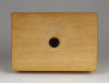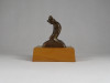 [1S570/X003] Vastag fa talapzaton kis méretű bronz szobor. Térdelő kalapos férfi. Magasság: 11.5 cm Szélesség: 7.3 cm Hosszúság: 10.5 cm Súly: 0.525 kg