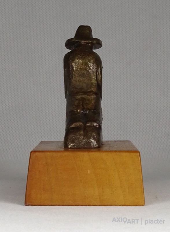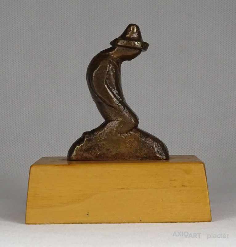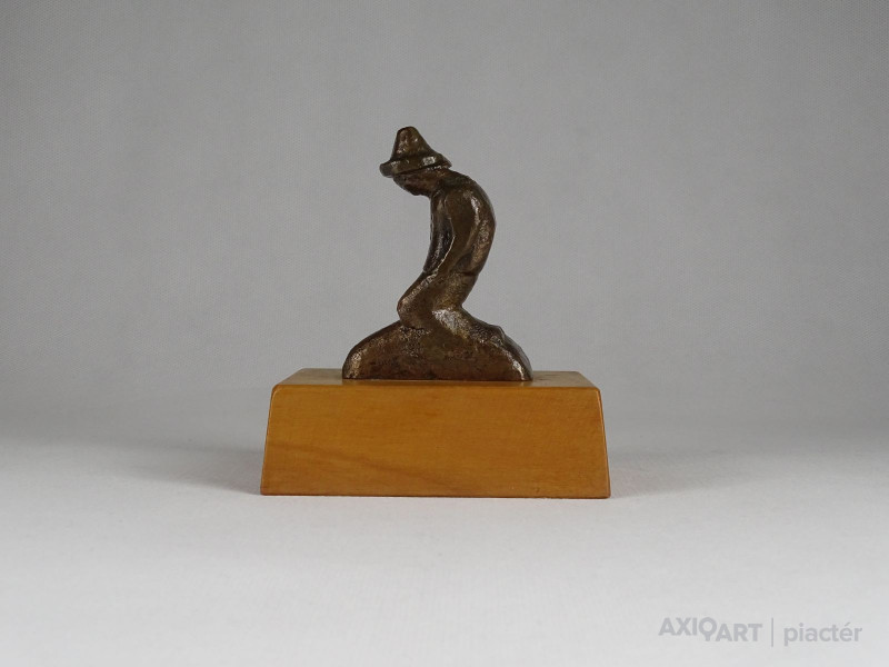 Térdelő kalapos férfi bronz kisplasztika