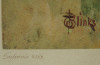 [FKD019/Bp58/38] A kép mérete: 22 x 34 cm keret nélkül. Készült: Rézkarc, Papír A kép Remsey Jenő György (Nagykőrös, 1885, Gödöllő, 1960) alkotása. Jelezve jobbra lent "Remsey (ceruzával)" A festmény jó állapotban van. Keret: Ép Magyar festők és grafikusok életrajzi lexikona I-II. Festő. 1905-1909 között Budapesten az Iparrajziskolában tanult, majd a gödöllői művésztelep tagja lett, ahol 1914-ig dolgozott. 1909-ben a KÉVE tagjai sorába választotta, s rendezésükben számos tárlaton vett részt. 1913-ban a nagybányai szabadiskolában képezte magát, majd a KÉVE tagjaként ösztöndíjjal Párizsba is elkerült, de tanulmányutakat tett Bécsbe és két ízben Münchenben is. 1924-ben egyik alapítója és elnöke volt a Spirituális Művészek Szövetségének, majd létrehozta annak lapját, a Fáklyát. 1937-41 között a Nemzeti Figyelő munkatársaként dolgozott, 1952-ben tagja lett a Szinyei Alkotóközösségnek, 1960-ban pedig a Rézkarcoló Művészek Alkotóközösségének. 1909-ben vett részt először a KÉVE tárlatán, 1920-ban újra. 1923-ban a Helikonban, 1924-ben és 1944-ben a Nemzeti Szalonban, 1935-ben és 1964-ben az Ernst Múzeumban, 1947-ben pedig a Szalmássy Galériában volt kiállítása. 1957-64 között több tárlatot is rendeztek műveiből Párizsban, de a KÉVE által alkotásai elkerültek berlini, düsseldorfi, bécsi, genfi, nürnbergi, lipcsei seregszemlékre is. Remsey hosszú pályájának kezdete a szecesszió stílusirányzatához kapcsolódott. Részt vett a szecesszió eszmeiségének elkötelezett gödöllői művésztelep munkájában, s egészen haláláig Gödöllőn élt. Így nem csoda, ha mindvégig ápolta a művésztelep emlékét, mely saját pályáján is az első döntő jelentőségű inspirációt és művészetközösséget jelentette. Akárcsak Körösfői és Nagy Sándor, ő is szimbolikus sugallatú műveket alkotott, amelyekre a lapidáris formaalkotás, a stilizáció, a vonalkontúrok hangsúlyos szerepe, a homogén színsíkok alkalmazása volt jellemző. Gobelintervezéssel is foglalkozott. Díjak: Benczúr-díj; Hors Conours-oklevél, Bécs; Gödöllő város díszpolgára. Több műve a Magyar Nemzeti Galéria tulajdonát gazdagítja (Énekeskoldusok, Ködfoszlás a Dunán, Az irgalmas szamaritánius, Szent család, Önarckép). A budapesti Lónyai utcai református gimnázium számára 1942-ben egy freskót alkotott (A magyar reformáció szellemtörténete). (Éber, RI-NM, MMFRA, ML) Magyar festők és grafikusok életrajzi lexikona I-II. Műgyűjtők és kereskedők kézikönyve Festő. Budapesten tanult, majd a gödöllői művésztelep tagja volt. 1909-ben koll. kiállítása volt a KÉVE tárlat keretében. 1913-ban a nagybányai festőiskolában dolgozott. A KÉVE tagjaként ösztöndíjjal Párizsba is elkerült, de tanulmányutakat tett Bécsben, és Münchenben is. 1920-ban ismételten állított ki műveket a KÉVE tárlatán. 1923-ban a Helikonban, 1924-ben a Nemzeti Szalonban volt kiállítása. A Spirituális Művészek Szövetségének tagja volt. Alkotásait stilizálja s főleg dekoratív hatásokra törekszik. Több műve az MNG tulajdonában van. (Éber, RI-NM) Magyar festők és grafikusok adattára Művészi képzettségét az a kapcsolat segítette kibontakozni, amelyet Gulácsy Lajossal, Erdei Viktorral és Fülep Lajossal teremtett. A KÉVE tagja lett és ösztöndíjjal Párizsba került. Tanulmányutakat tett Bécsben és Münchenben, majd itthon a Gödöllői Művésztelepre került. Alapító tagja volt az 1924-ben alakult Spirituális Művészek Szövetségének. 1924-ben és 1944-ben a Nemzeti Szalonban, 1935-ben és 1964-ben az Ernst Múzeumban és 1947-ben a Szalmássy Galériában vett részt csoportos kiállításokon. Eleme a kompozíció, a sokalakos, a nagy csoportokat fölölelő képek problémája, amely képszerkesztő hajlandóságát, rendező képességét foglalkoztatja és alkalmat ad arra, hogy témáit a maga sajátos módján adja elő. Ez pedig a díszítő stilizálás nyelve. Képei síkszerűek, nagy dekoratív színfoltok mozaikszerű együttesei, amelyek erőteljes kontúrhatásukkal és fényproblémáikkal gobelin terveknek vagy üvegfestményeknek hatnak. Írói munkássága is számottevő. - Irod.: Gellér Katalin - Keserű Katalin: A gödöllői kismesterek. MTA 1981. I. 441. Művészeti lexikon I-IV. Festő, költő és író. Bp.-en, Bécsben és Münchenben tanult, majd a gödöllői művésztelep tagja lett. Számos külföldi kiállításán kívül 1909-ben és 1920-ban kollektív kiállítása nyílt a KÉVE-tárlat keretében, 1923-ban a Helikon szalonjában, 1924-ben és 1944-ben a Nemzeti Szalonban, 1935-ben és 1964-ben az Ernst Múzeumban, 1947-ben a Szalmássy Galériában. 1957 és 1964 között Párizsban több kiállítást rendeztek műveiből. 1924-ben egyik alapítója s elnöke volt a Spirituális Művészek Szövetségének. Több műve (Énekeskoldusok, Ködfoszlás a Dunán, Az irgalmas szamaritánius, Szent Család, Önarckép stb.) a Nemz. Gal. tulajdona. Szecessziósan stilizált, szimbolikus ihletésű képeivel expresszív hatásokra törekedett. Művészeti lexikon I-II. Budapesten tanult, azután a gödöllői művésztelep tagja volt. 1909. és 1920. kollektív kiállítása volt a Kéve tárlat keretében. 1923. a Helikon szalónjában, 1924. a Nemzeti Szalónban. A Spirituális Művészek Szövetségének tagja. Énekes koldusok c. olajfestménye a Székesfővárosi Múzeum, Anyám arcképe, Ködfoszlás a Dunán, Az irgalmas szamaritánius, a Szent Család és Önarckép c. művei a Szépművészeti Múzeum tulajdonában vannak. Képeit stilizálja s főleg dekoratív hatásokra törekszik. Művész életrajzok kortárs magyar képzőművészek Művészeti tanulmányait Bécsben, Münchenben és a gödöllői művésztelepen végezte. 1907 óta szerepel a hazai és külföldi nyilvá