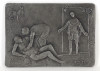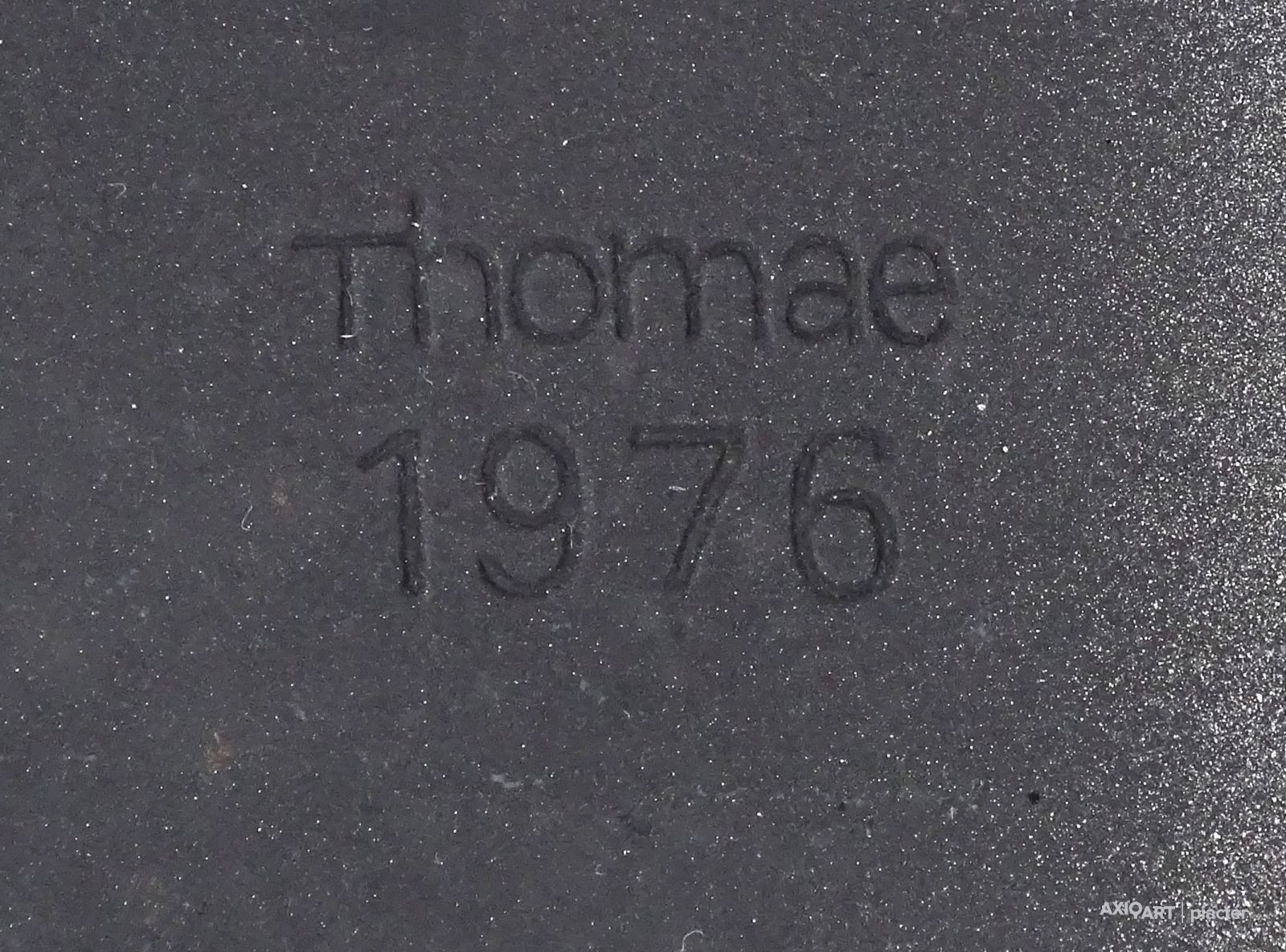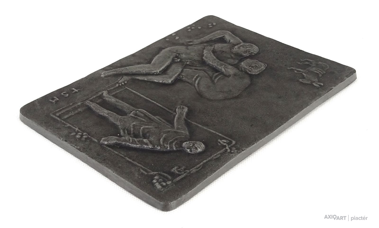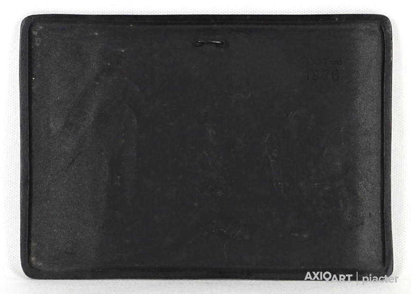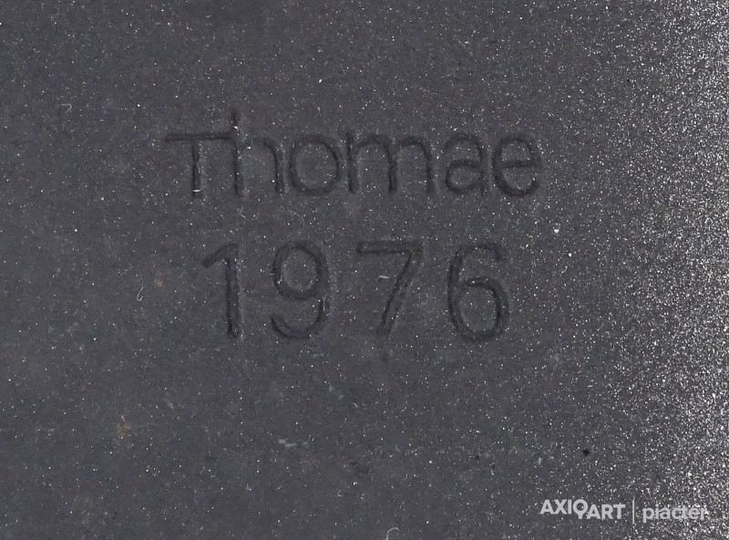 [1P478/X154] Régi jelzett öntöttvas relief. Akasztási lehetőséggel rendelkezik. Jobbra lent jelzés: TSM Hátoldalán datált jelzés, felirat: THOMAE 1976 (Buderus Thomae 1976) Magasság: 14.7 cm Szélesség: 20.8 cm Súly: 0.64 kg Toni Schneider-Manzell Ugrás a navigációhozUgrás a kereséshez Speyer katedrális , fő portál (részlet) Toni Schneider-Manzell ( 1911. február 22. , Manzell , Friedrichshafen mellett ; 1996. november 7. Rosenheim , Felső-Bajorország) német - osztrák szobrász . Életrajz  Toni Schneider, aki később születési helyének nevét is hozzáadta személyes nevéhez, a müncheni akadémiára járt, majd a svájci ticinoi Asconában dolgozott rajta . 1944-ben Ausztriába költözött, előbb a Salzburg melletti Weitwörthbe , majd 1955-ben magába Salzburgba, ahol megalkotta többek között a salzburgi székesegyház (hitkapuját), szószékét és keresztelőkútjának fedelét . Hans Conrad Fischer rendező és lánya, Nela korán elhunyt festőművész ismeretségi körébe tartozott , akikkel Salzburgban, különösen betegsége után, élénk művészeti eszmecserét folytatott. Schneider-Manzell az antik szobrok termesztéséről, a bronz érzékeny felületkezeléséről , a visszafogottság, az önvizsgálat, az álmodozás és az alázat kifejező tulajdonságairól volt ismert. Ez különösen jól látszik domborművein , kisplasztikáin és portréfejein , amelyek festői módon vázlatosak . Ugyanaz a nemes hagyománykezelés , amely a múlt tiszteletreméltó alkotásaival együtt élhet, Schneider-Manzellt a német nyelvterület vezető szakrális szobrászává predesztinálta. Legismertebb munkái közé tartoznak a székesegyház ajtói, valamint az esseni (1978–1980) és a speyeri keresztút.(1967-1971), Julius Raab emlékműve Bécsben (1967), Galen bíboros Münsterben (1978) és Graf Zeppelin ( 1985) , valamint a Trakl-kút (1957) és a "Vincentine Woman" (1986) Salzburgban . Díjak  1958: Osztrák Állami Képzőművészeti Nagydíj 1960: Felsősváb Művészeti Díj 1976: Szövetségi Érdemrend nagykeresztje 1981: Baden-Württemberg állam érdemérem  Művek (válogatás)  Szökőkútfigura OtterswangbanA "Kedves Ágoston" szobor Wasserburgban a Bodeni-tónál Portál („Hit kapuja”) és szószék a salzburgi katedrálisban Öntött bronz keresztút és domborművek a követeken a bécsi Liesing plébániatemplomban Trakl -kút a Salzburgi Egyetem központi rektorátusának és adminisztrációs épületének udvarán , Kapitelgasse 4–6, 1957 A salzburgi Nagy Fesztiválcsarnok 5 bronz kapuja (bejáratok a Hofstallgasse felől) Julius Raab emlékmű a Volksgarten Vienna-ban , 1967 a kultúrsétányon Stroblban Mozart anya-kút St. Gilgenben Szent Wolfgang kőszobra a templom bejáratánál és öntött kő dombormű a fuschi háborús emlékműnél a Glocknerstrasse-n Zeppelin emlékmű (13 méter magas) Friedrichshafenben, 1985 Szentségoszlop bronz tabernákulummal, Szent István domborművei. Leonhard (bejárat, kilincsek) a Salzburg melletti Szent Leonhard zarándoktemplomban Keresztút az augsburgi St. Thaddäus templomban A Speyer-székesegyház bronz főportálja A mannheim-neckaraui Szent Jakab-templom keresztoszlopa és húsvéti gyertyatartója , 1976/1986 Essen Minster bronzportáljai , 1978–1979 A keresztút fríze, Essen Minster 1976–1977 Falusi szökőkút, Bad Schussenried -Otterswang 1975-ben készült "DAPHNE" faszobor (magántulajdon Bécsben) "Kedves Augustin" bronzfigura 1974 (Gustl Sumser) Wasserburgban (Bodeni-tó)  Forrás: wikipédia